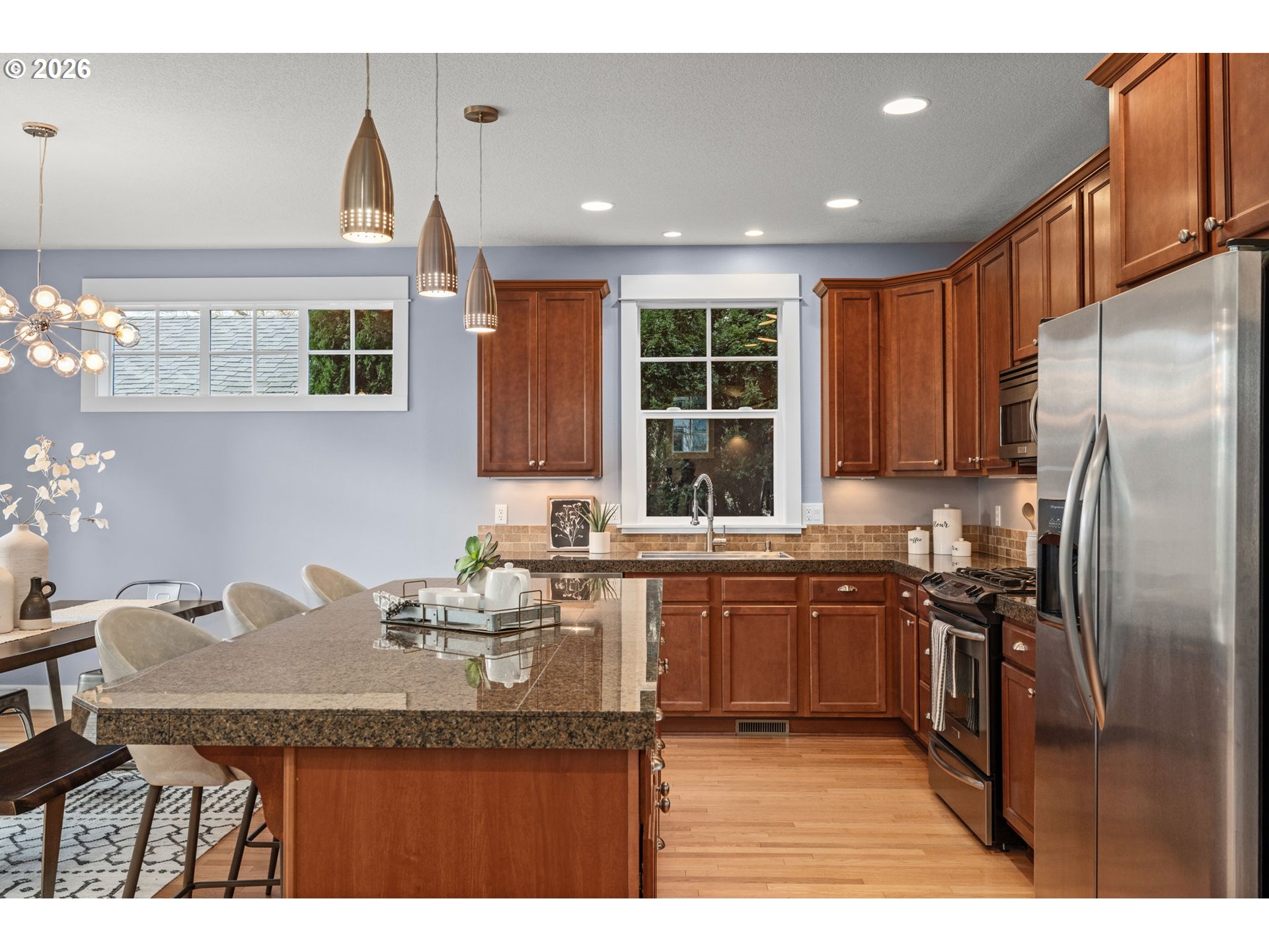 Dishwasher, Disposal, FreeStandingGasRange, FreeStandingRefrigerator, Granite, Island, Microwave, Stainless