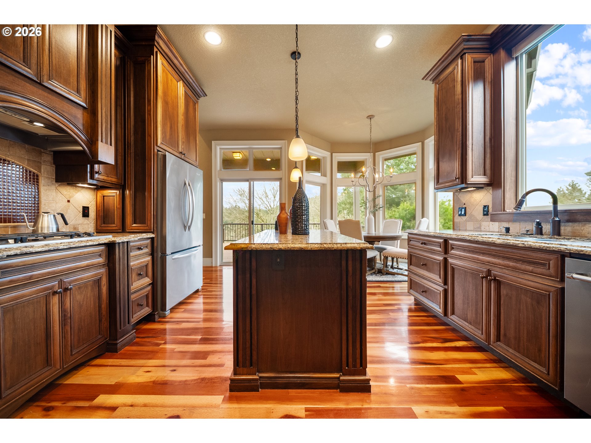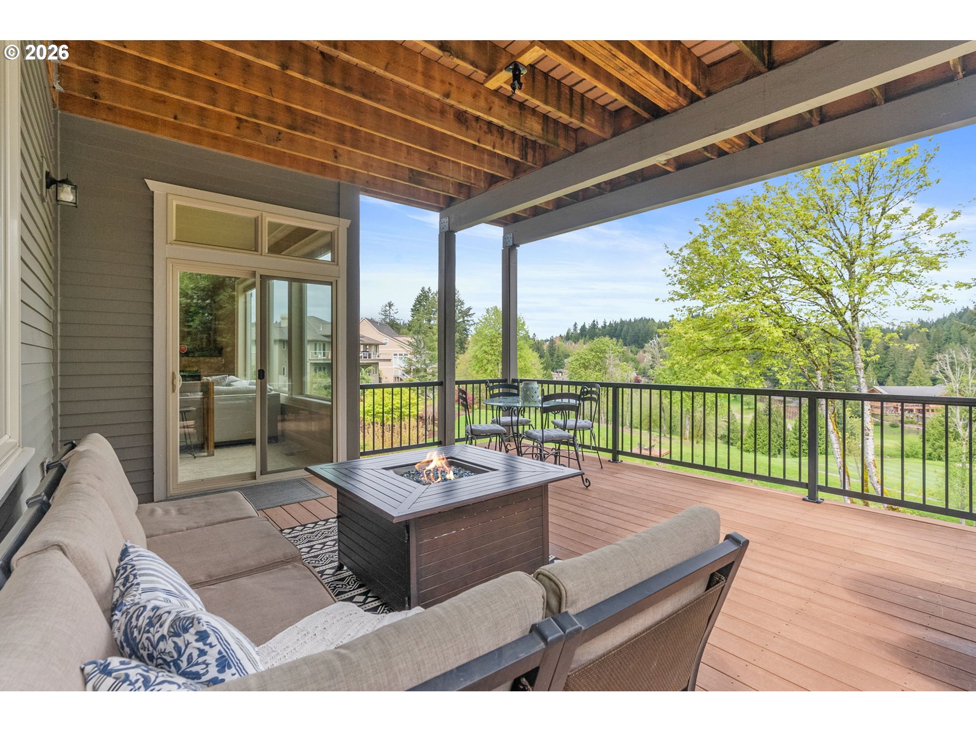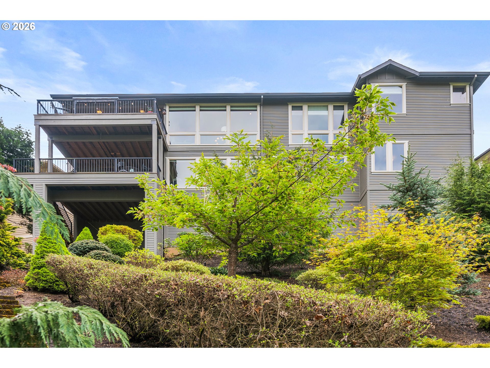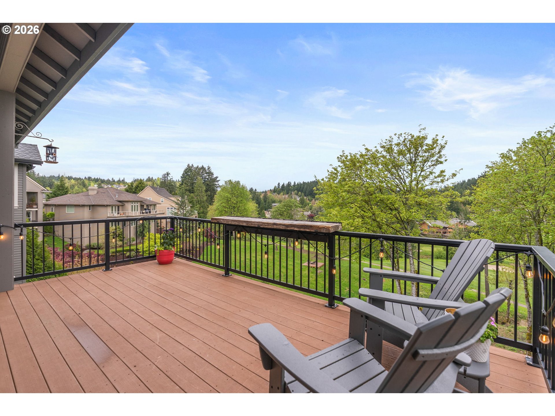 Nestled in the sought-after Persimmon Country Club neighborhood, this exceptional 4-bedroom, 3.5-bath home offers refined living with timeless craftsmanship and versatile spaces. Backing to the golf course, the property delivers a serene setting paired with beautiful architectural detail throughout. Inside, you’ll find rich walnut cabinetry, fine detailing with a stunning blend of tigerwood and hand-chipped stone flooring. Home office with walnut built-ins, floor to ceiling windows in living room offer natural light and stunning sunsets. Kitchen is equipped with butler's pantry, walk in pantry and built-in espresso maker. Designed for both everyday comfort and entertaining, the home features two expansive decks perfect for gatherings or relaxing while enjoying the peaceful surroundings. Primary suite on the main features spa-inspired bath with heated floors large shower and tub creating true retreat. Primary bedroom is complete with massive walk-in closet with dresser and built-ins. A spacious loft with vaulted ceilings upstairs provides endless possibilities for work, play, or relaxation. The daylight basement expands the home’s flexibility, featuring a large bonus room connected to 3 large bedrooms including an an ensuite ideal for dual living, guest quarters, or multi-generational needs. Garage is equipped with whole house generator hook-up, work shop area and epoxy floor. This home offers the perfect balance of elegance, function, and location in one of the area’s premier communities. Persimmon country club offers full golf membership and several tiers of membership. Premium location in Persimmon neighborhood backs to the golf course with views of Mt. Adams from the primary bedroom. Minutes from amenities in Happy Valley and downtown Gresham. Easy commute to downtown PDX and the airport.