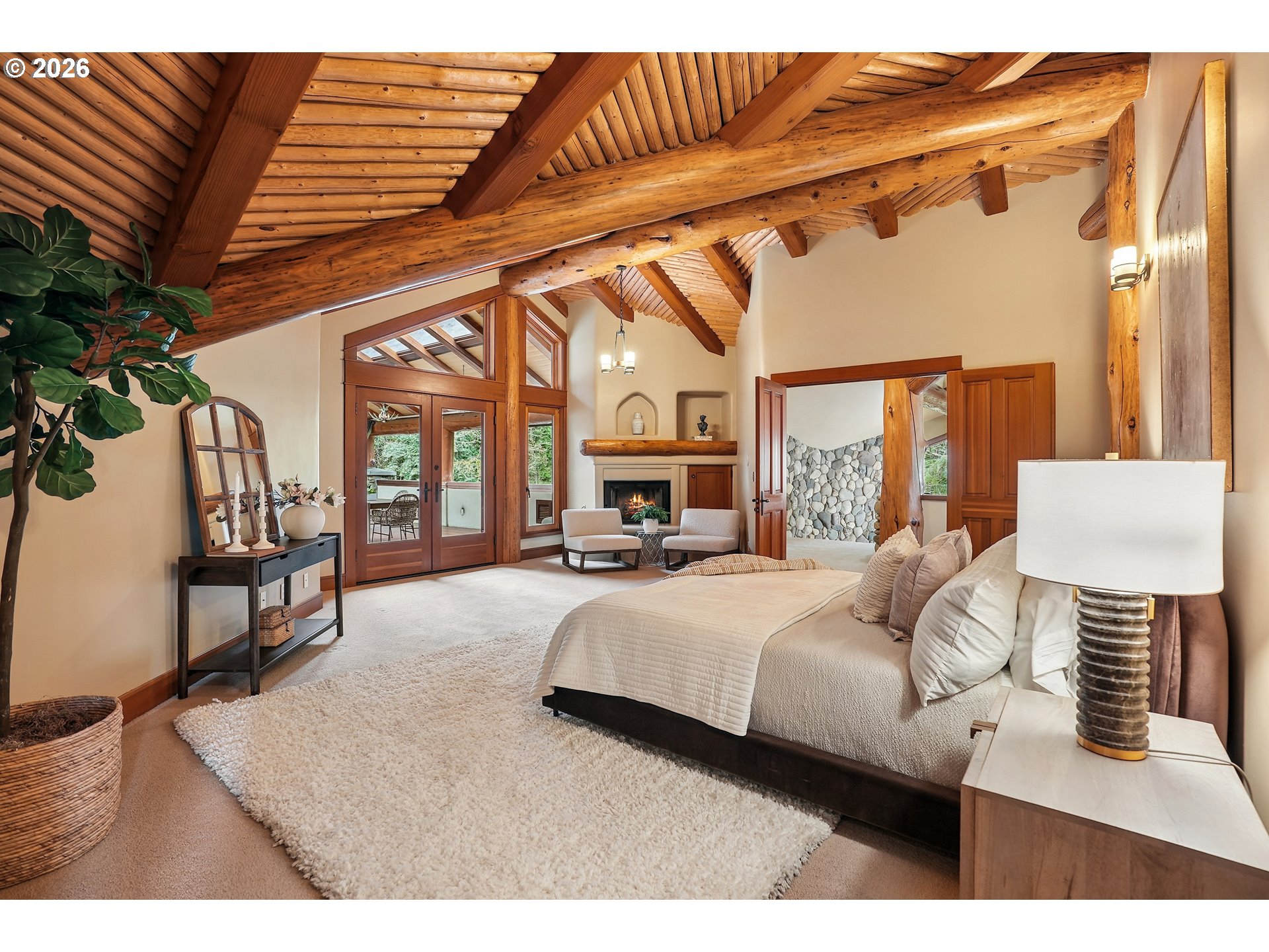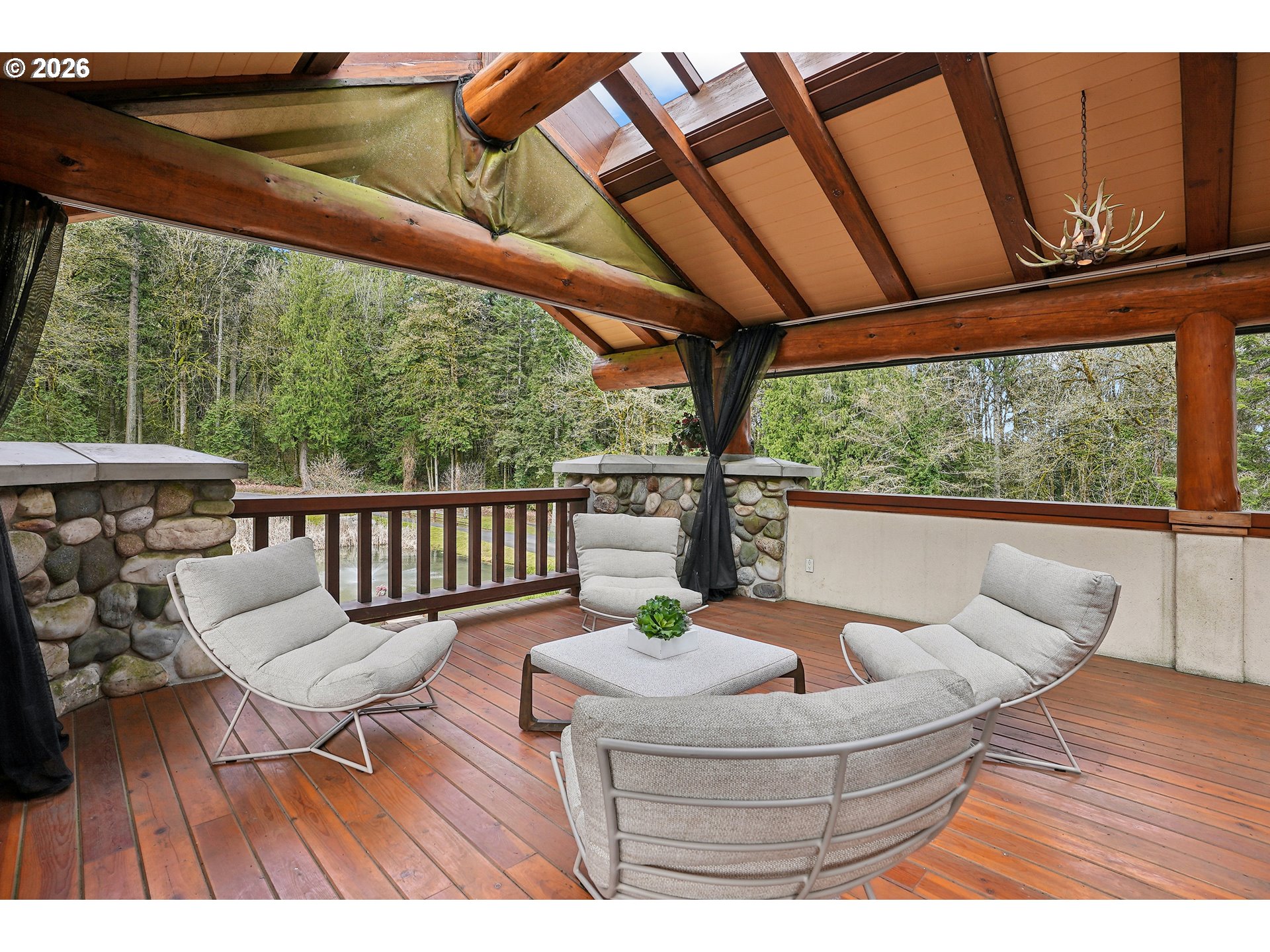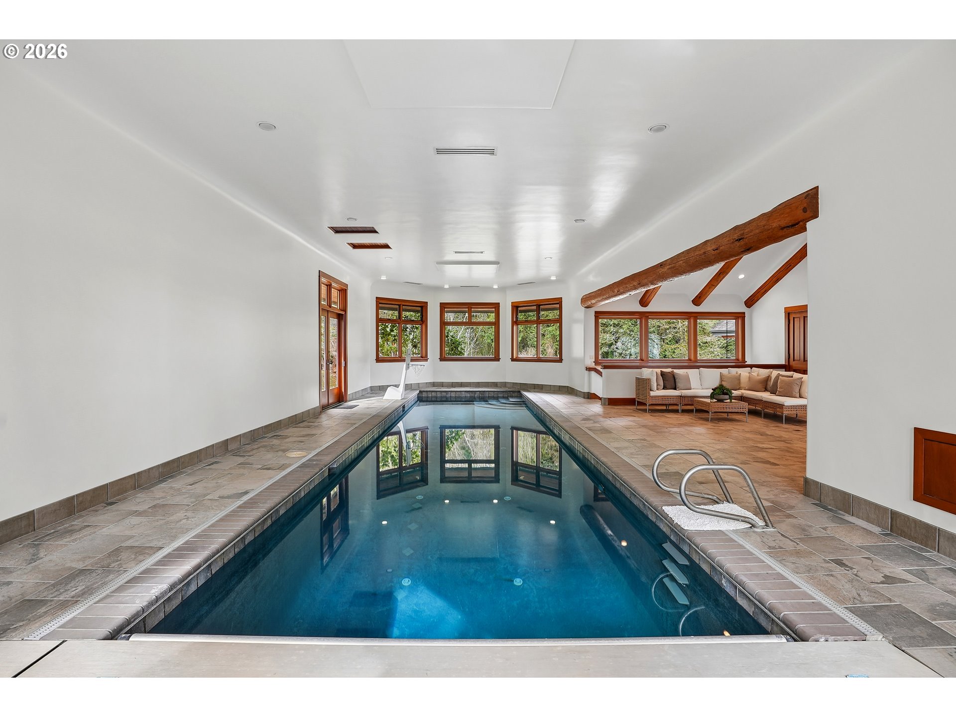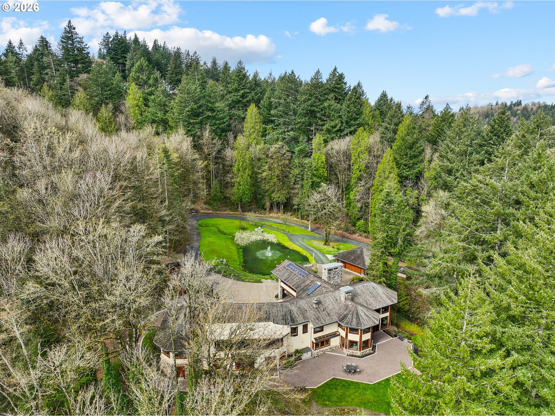 OPEN TUE 4/7 FROM 12PM TO 2PM. One-of-a-Kind luxury home celebrating the pacific NW lifestyle over looking Forest Park, Columbia river gorge, city and partial Mt. Hood and Mt St Helens views. An architectural masterpiece with circular driveway and hand chosen selected NW materials and design features. The magnificent, quietly elegant updated and renovated lodge home is ideal for the most discerning buyer in search of the full Oregon experience. Home is situated on the highest point of the 28 acres to capture the breath taking territorial views. Quiet elegance greets you the moment you step inside. Hand selected fir beams, Snake river rock stone, and warm wood floors with startling higher ceilings welcome you home. The open floor plan reveals a comfortable living room, dining room, and stunning commercial grade Chef's kitchen with all sought after cooking features. Main floor family room, home office and two additional bedrooms and baths plus laundry. Upper floor includes owners suite with vaulted ceilings features an oversize covered veranda/ deck to take in the lake & property views as well as generous size bathroom with soaking tub, larger walk in shower and generous closet space. Other features on upper floor include library/billiard room, home gym sharing space with updated indoor pool opening up to the outdoors and exterior patios. Lower level features media room for movie night. Upon arriving at the gated entry you travel up the hill pass an exceptional park and grass area with plenty of room for entertaining large gatherings only a short distance from the home. Only 8 min drive to NW alphabet district! Close to hwy 26/217 access making it easy to get to downtown, high tech corridor, Nike and all the metro area has to offer!