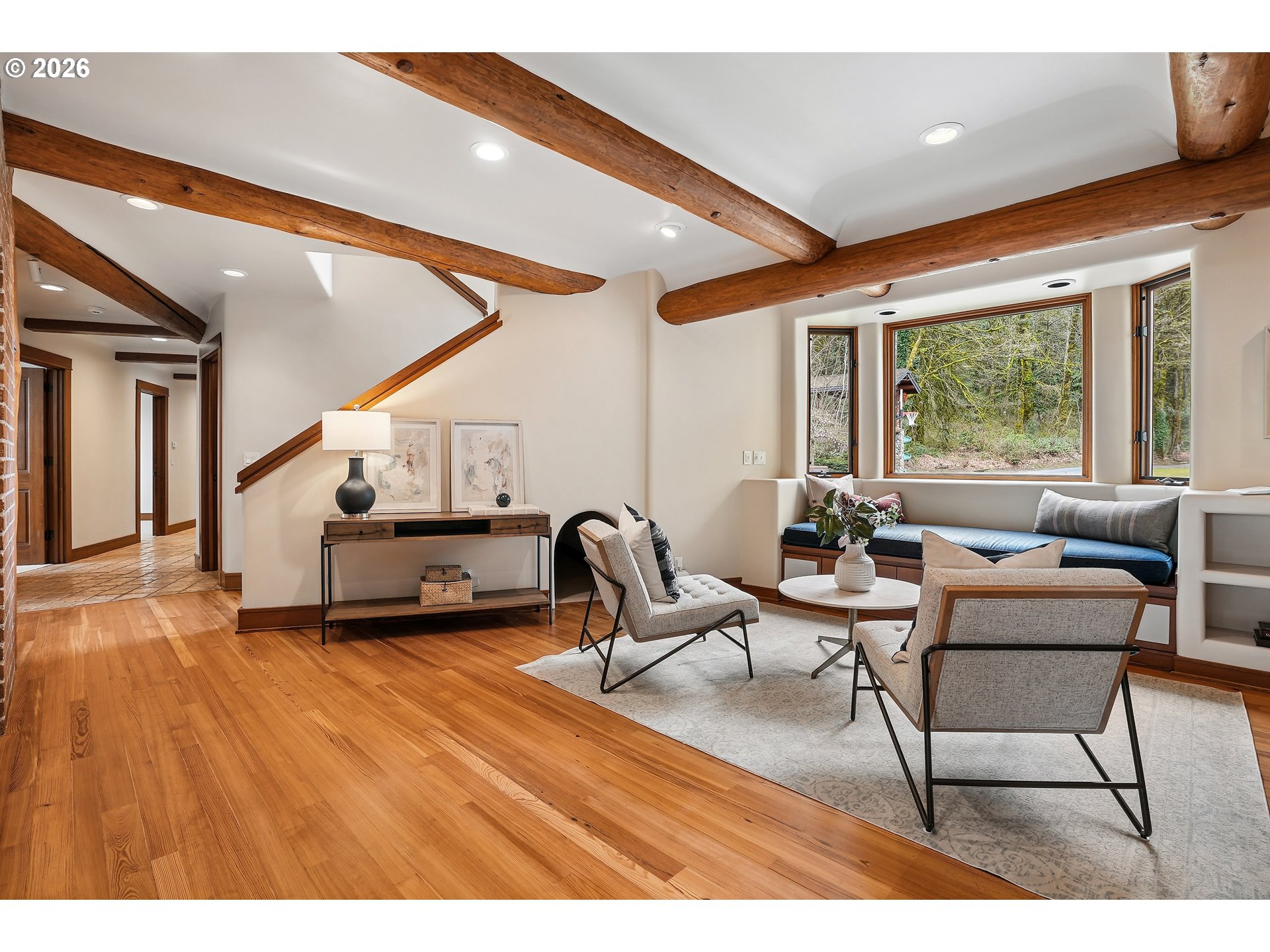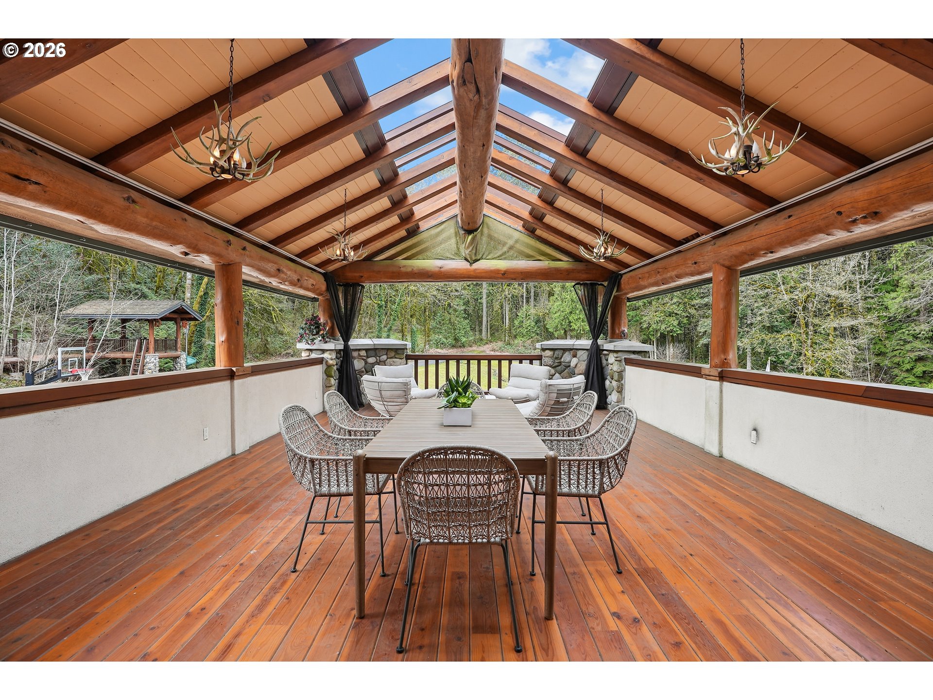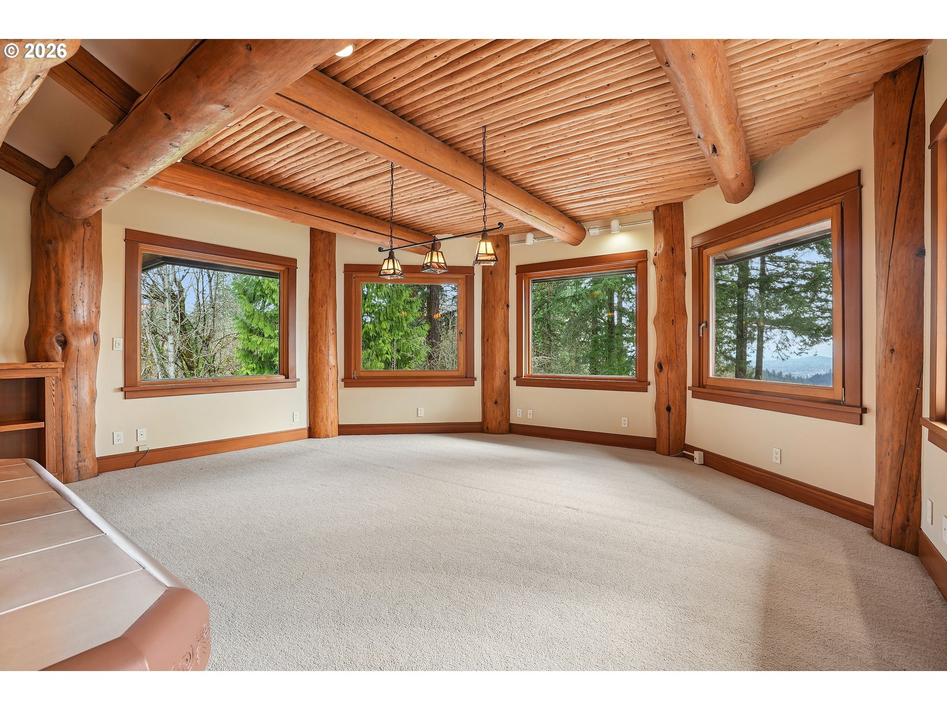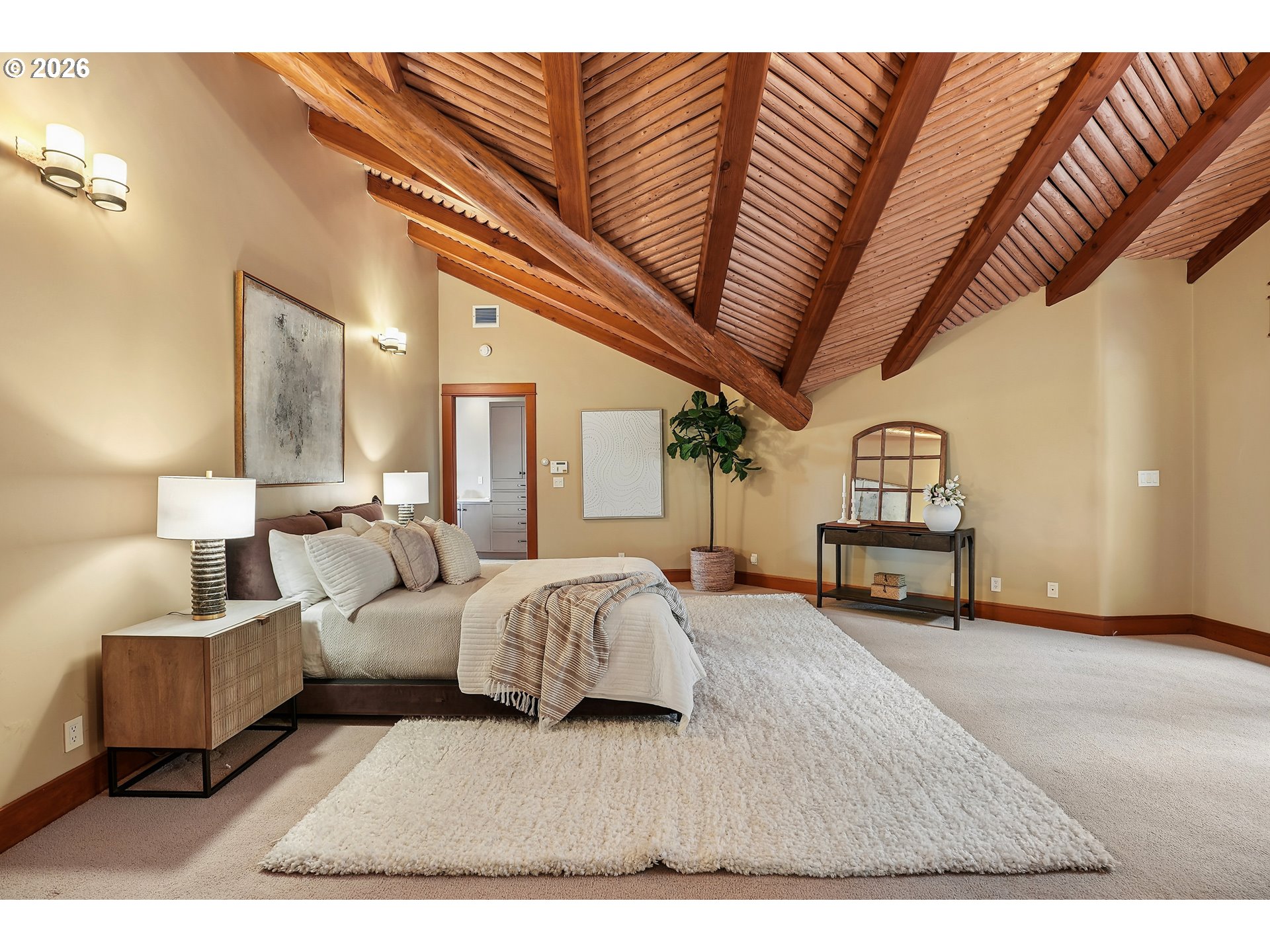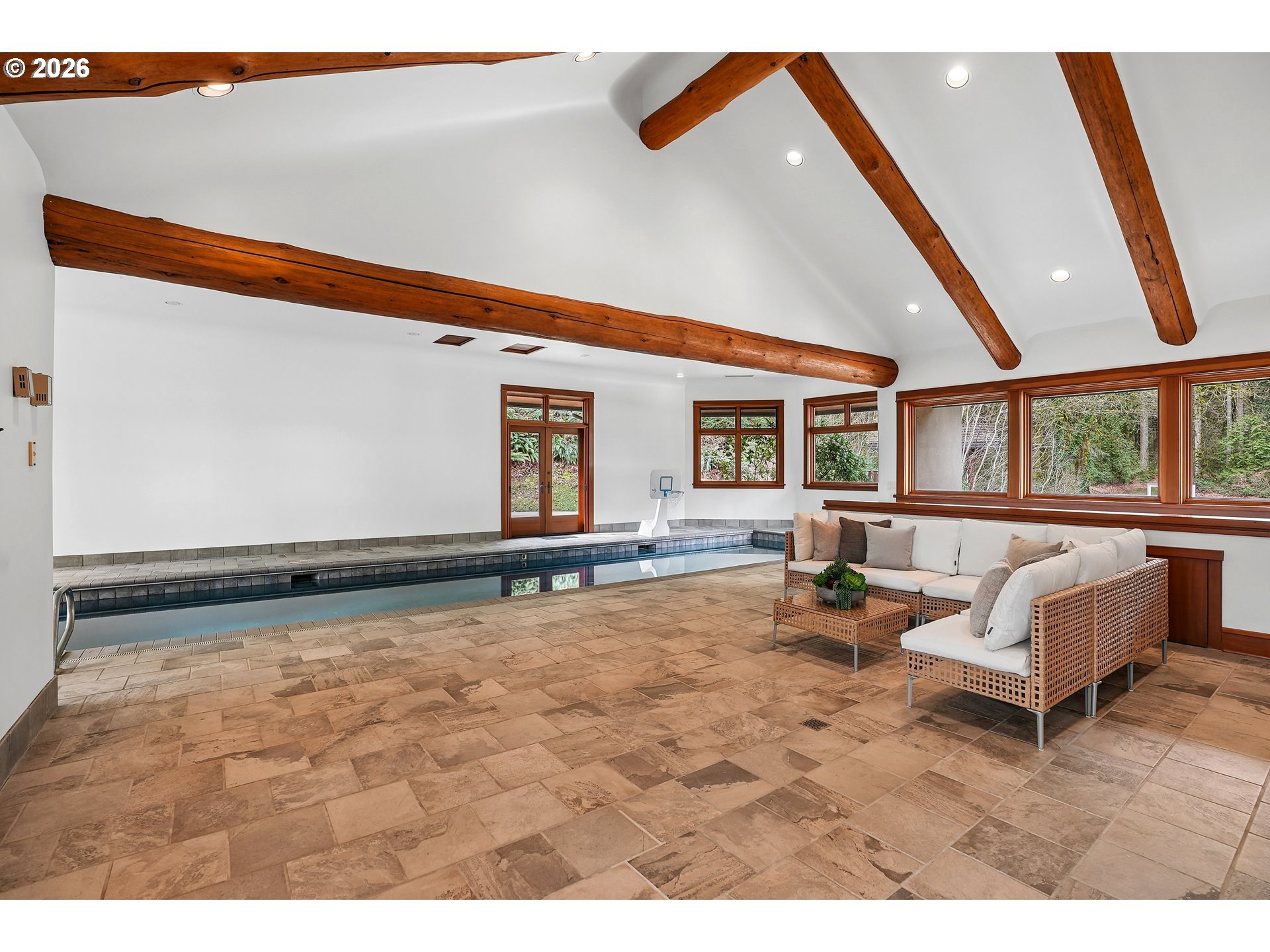 OPEN TUE 4/7 FROM 12PM TO 2PM. One-of-a-Kind luxury home celebrating the pacific NW lifestyle over looking Forest Park, Columbia river gorge, city and partial Mt. Hood and Mt St Helens views. An architectural masterpiece with circular driveway and hand chosen selected NW materials and design features. The magnificent, quietly elegant updated and renovated lodge home is ideal for the most discerning buyer in search of the full Oregon experience. Home is situated on the highest point of the 28 acres to capture the breath taking territorial views. Quiet elegance greets you the moment you step inside. Hand selected fir beams, Snake river rock stone, and warm wood floors with startling higher ceilings welcome you home. The open floor plan reveals a comfortable living room, dining room, and stunning commercial grade Chef's kitchen with all sought after cooking features. Main floor family room, home office and two additional bedrooms and baths plus laundry. Upper floor includes owners suite with vaulted ceilings features an oversize covered veranda/ deck to take in the lake & property views as well as generous size bathroom with soaking tub, larger walk in shower and generous closet space. Other features on upper floor include library/billiard room, home gym sharing space with updated indoor pool opening up to the outdoors and exterior patios. Lower level features media room for movie night. Upon arriving at the gated entry you travel up the hill pass an exceptional park and grass area with plenty of room for entertaining large gatherings only a short distance from the home. Only 8 min drive to NW alphabet district! Close to hwy 26/217 access making it easy to get to downtown, high tech corridor, Nike and all the metro area has to offer!