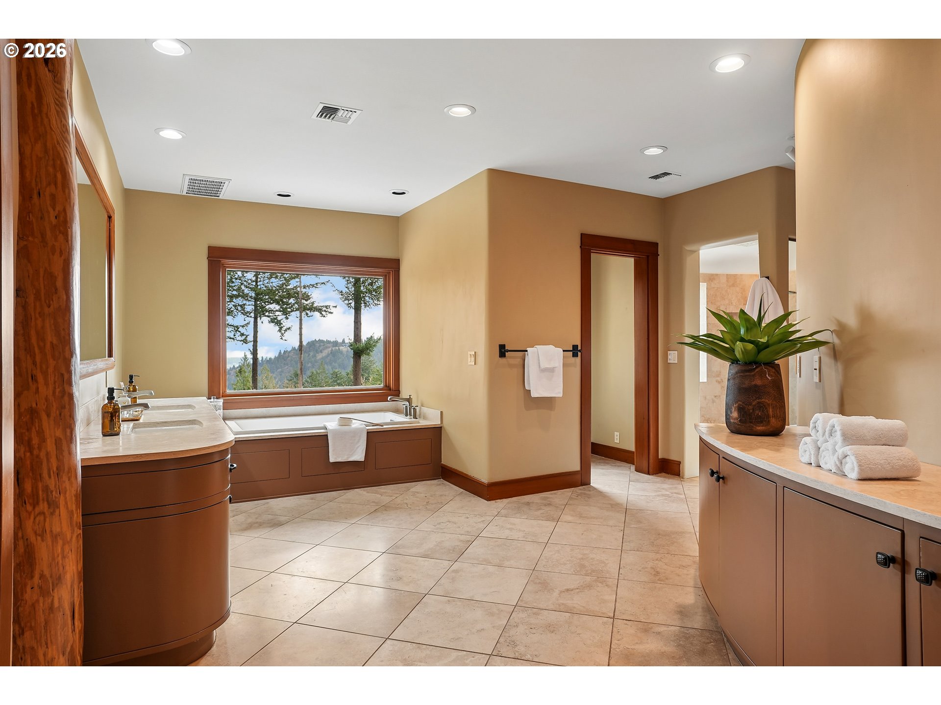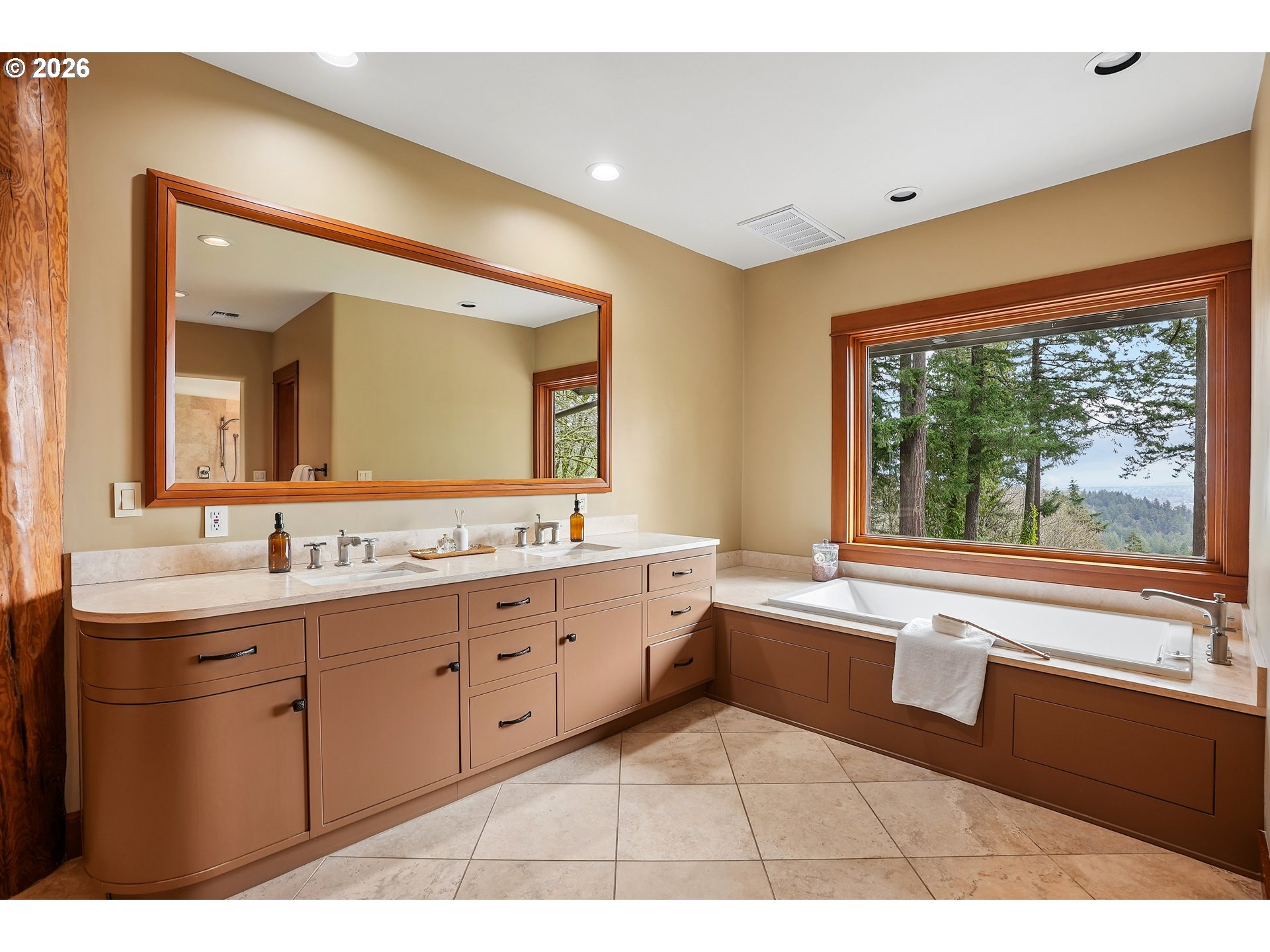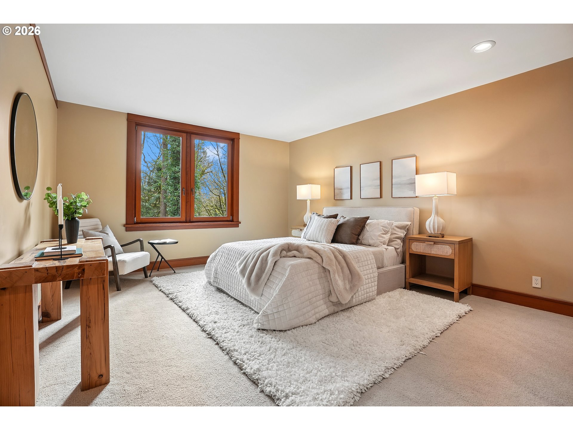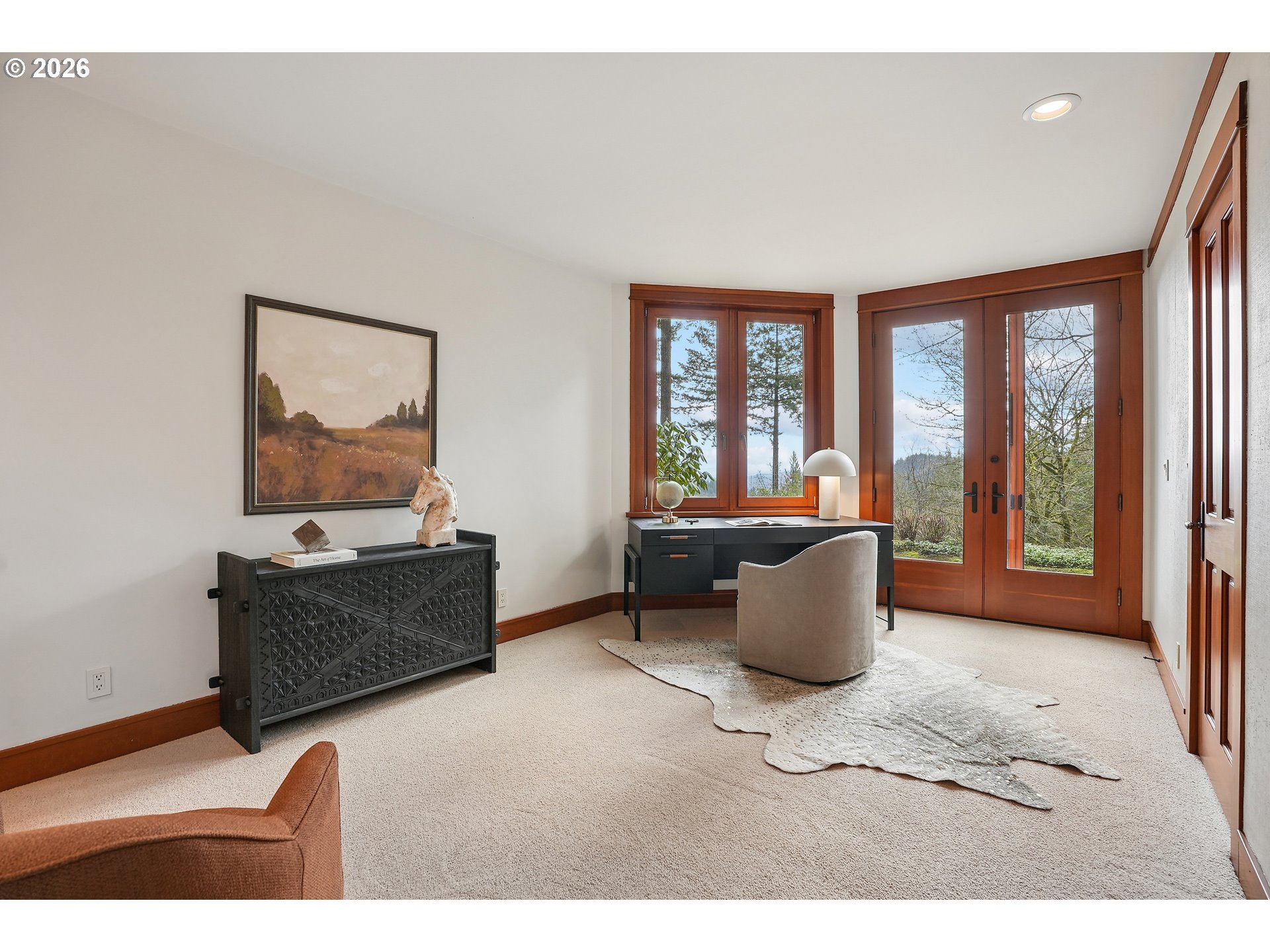 OPEN TUE 4/7 FROM 12PM TO 2PM. One-of-a-Kind luxury home celebrating the pacific NW lifestyle over looking Forest Park, Columbia river gorge, city and partial Mt. Hood and Mt St Helens views. An architectural masterpiece with circular driveway and hand chosen selected NW materials and design features. The magnificent, quietly elegant updated and renovated lodge home is ideal for the most discerning buyer in search of the full Oregon experience. Home is situated on the highest point of the 28 acres to capture the breath taking territorial views. Quiet elegance greets you the moment you step inside. Hand selected fir beams, Snake river rock stone, and warm wood floors with startling higher ceilings welcome you home. The open floor plan reveals a comfortable living room, dining room, and stunning commercial grade Chef's kitchen with all sought after cooking features. Main floor family room, home office and two additional bedrooms and baths plus laundry. Upper floor includes owners suite with vaulted ceilings features an oversize covered veranda/ deck to take in the lake & property views as well as generous size bathroom with soaking tub, larger walk in shower and generous closet space. Other features on upper floor include library/billiard room, home gym sharing space with updated indoor pool opening up to the outdoors and exterior patios. Lower level features media room for movie night. Upon arriving at the gated entry you travel up the hill pass an exceptional park and grass area with plenty of room for entertaining large gatherings only a short distance from the home. Only 8 min drive to NW alphabet district! Close to hwy 26/217 access making it easy to get to downtown, high tech corridor, Nike and all the metro area has to offer!