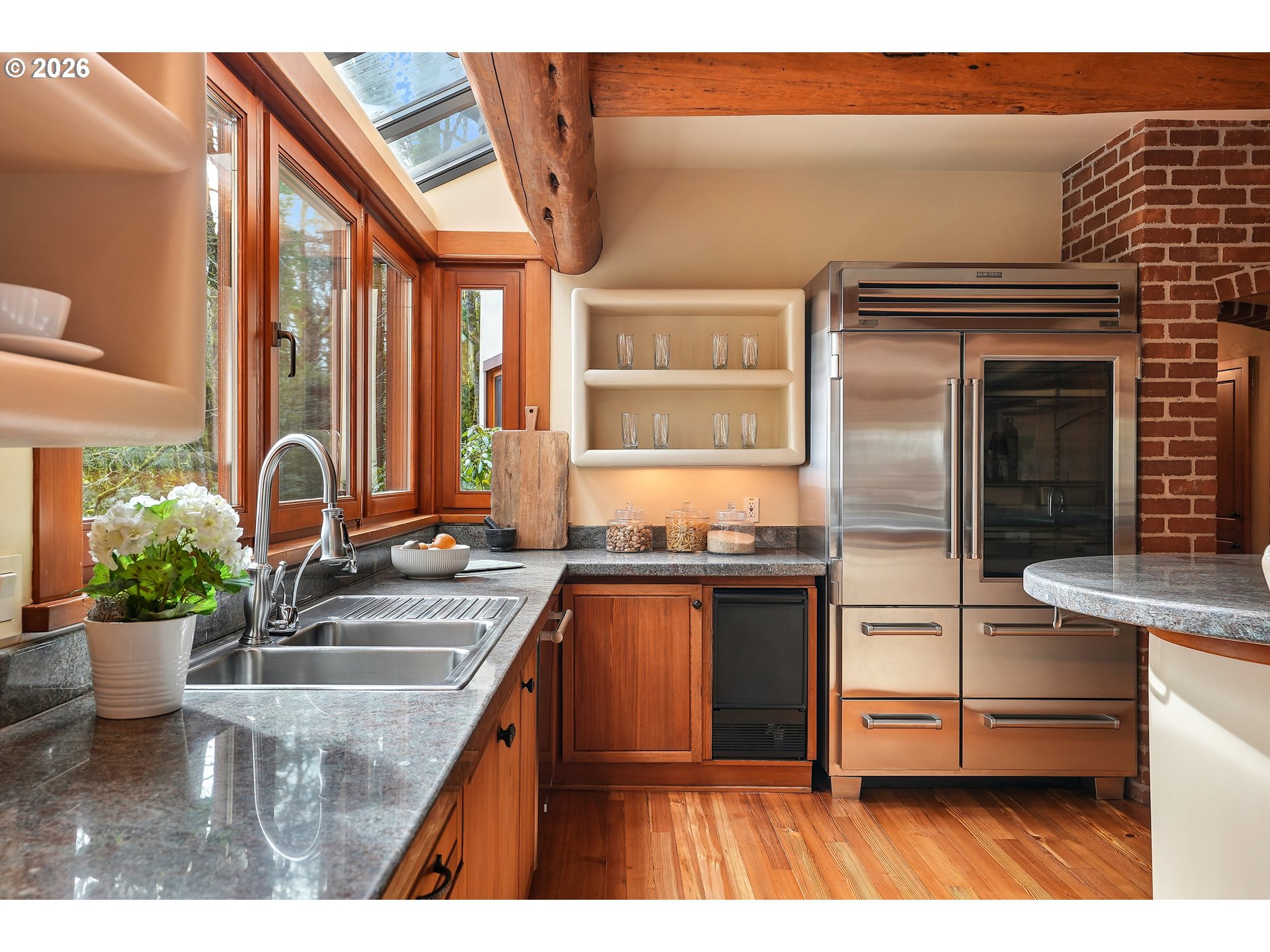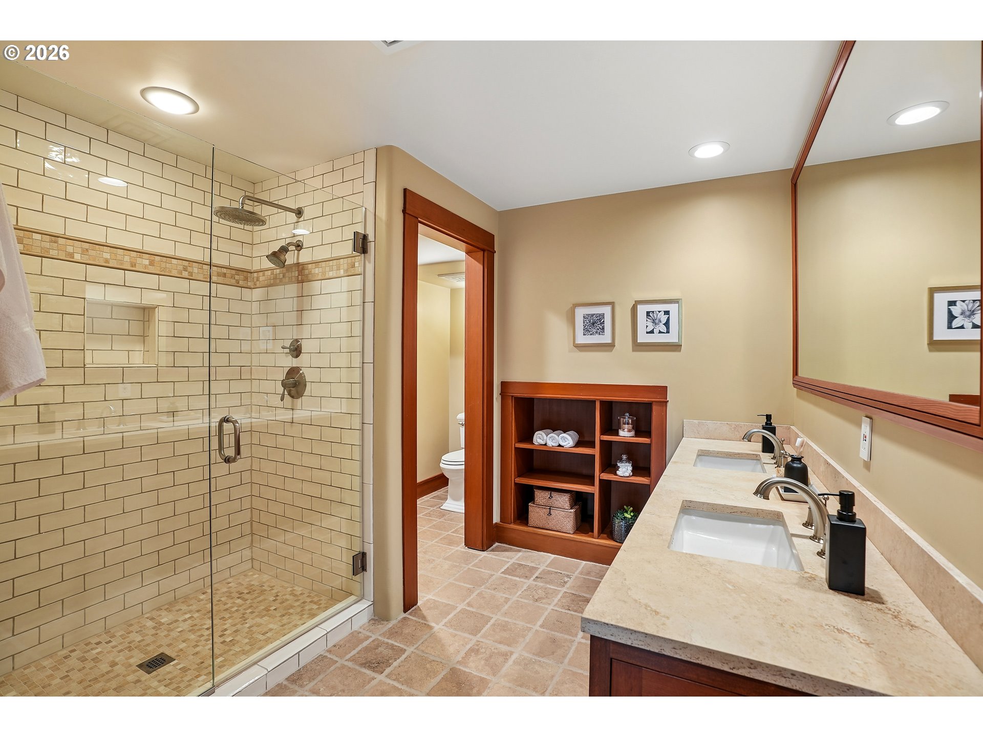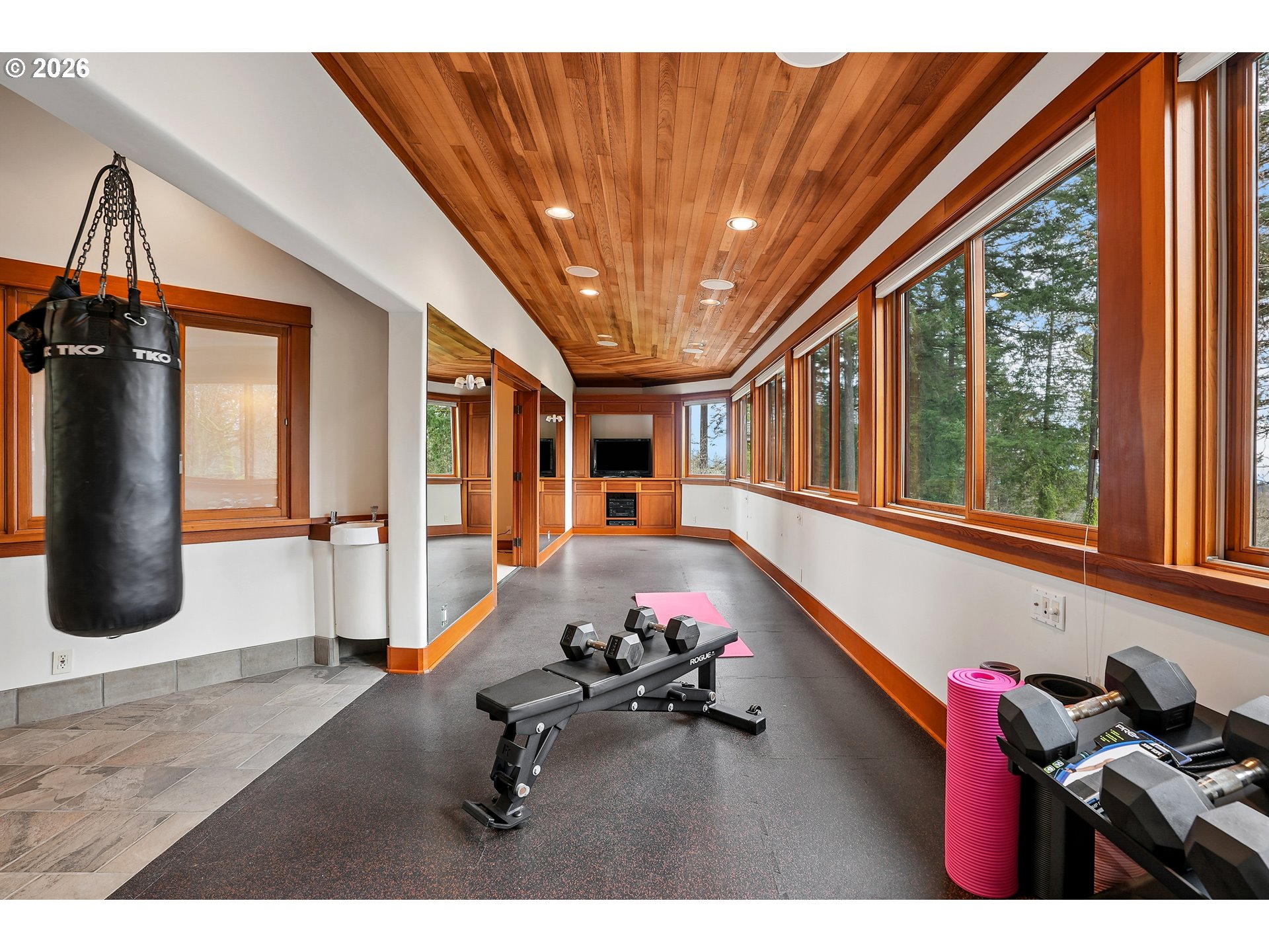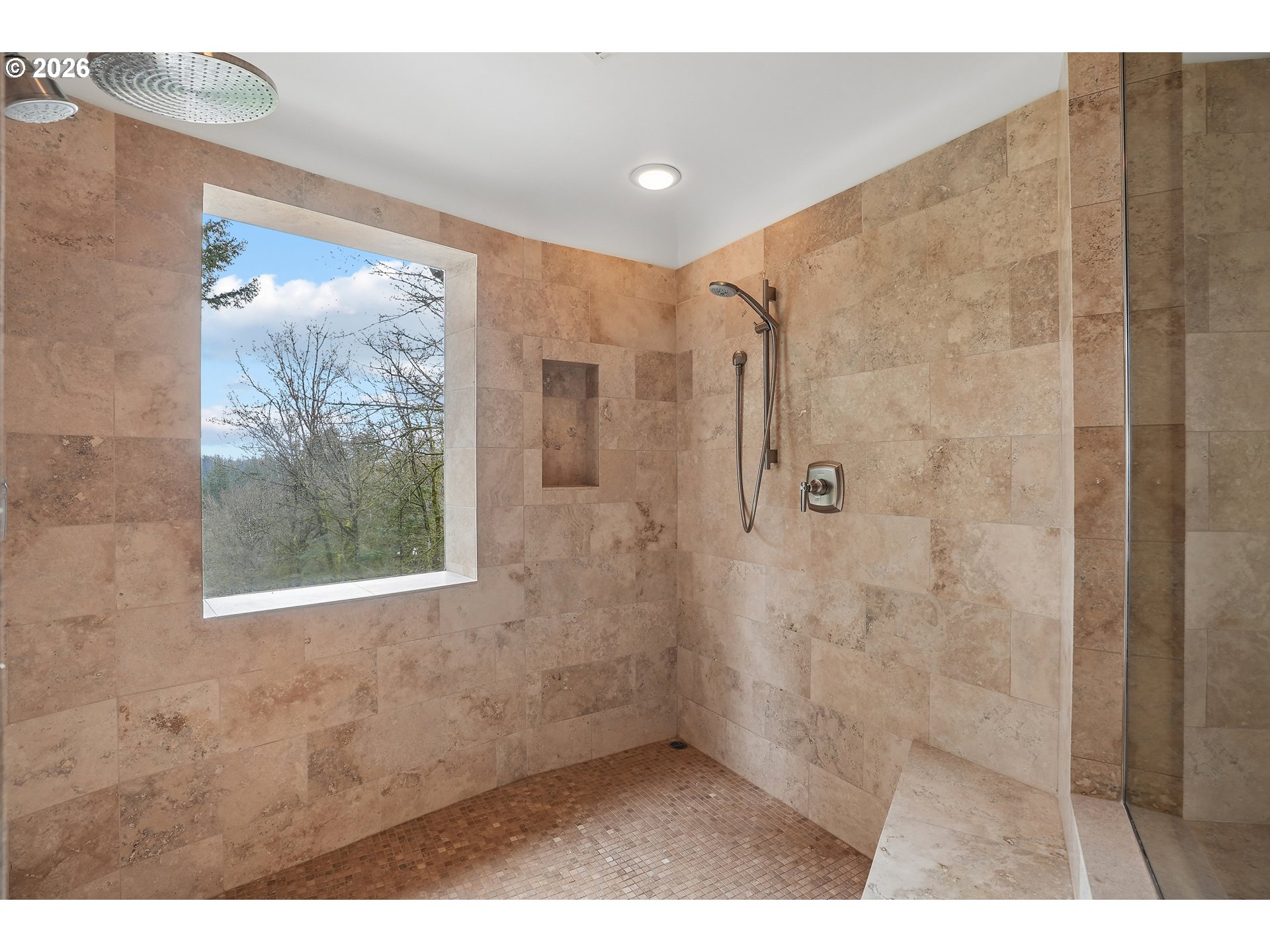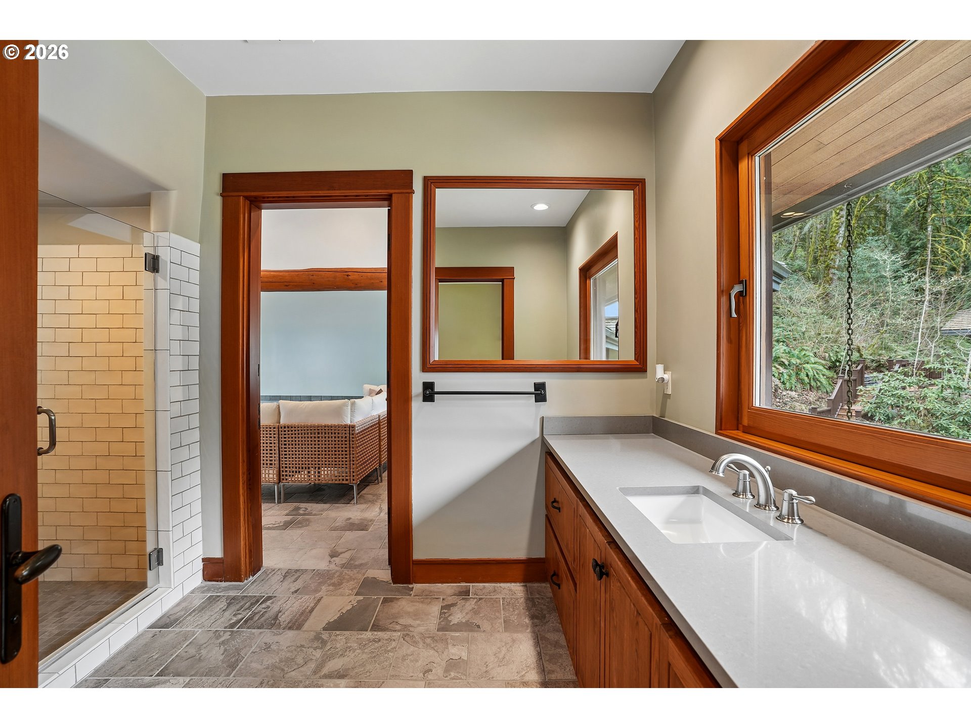 OPEN TUE 4/7 FROM 12PM TO 2PM. One-of-a-Kind luxury home celebrating the pacific NW lifestyle over looking Forest Park, Columbia river gorge, city and partial Mt. Hood and Mt St Helens views. An architectural masterpiece with circular driveway and hand chosen selected NW materials and design features. The magnificent, quietly elegant updated and renovated lodge home is ideal for the most discerning buyer in search of the full Oregon experience. Home is situated on the highest point of the 28 acres to capture the breath taking territorial views. Quiet elegance greets you the moment you step inside. Hand selected fir beams, Snake river rock stone, and warm wood floors with startling higher ceilings welcome you home. The open floor plan reveals a comfortable living room, dining room, and stunning commercial grade Chef's kitchen with all sought after cooking features. Main floor family room, home office and two additional bedrooms and baths plus laundry. Upper floor includes owners suite with vaulted ceilings features an oversize covered veranda/ deck to take in the lake & property views as well as generous size bathroom with soaking tub, larger walk in shower and generous closet space. Other features on upper floor include library/billiard room, home gym sharing space with updated indoor pool opening up to the outdoors and exterior patios. Lower level features media room for movie night. Upon arriving at the gated entry you travel up the hill pass an exceptional park and grass area with plenty of room for entertaining large gatherings only a short distance from the home. Only 8 min drive to NW alphabet district! Close to hwy 26/217 access making it easy to get to downtown, high tech corridor, Nike and all the metro area has to offer!
