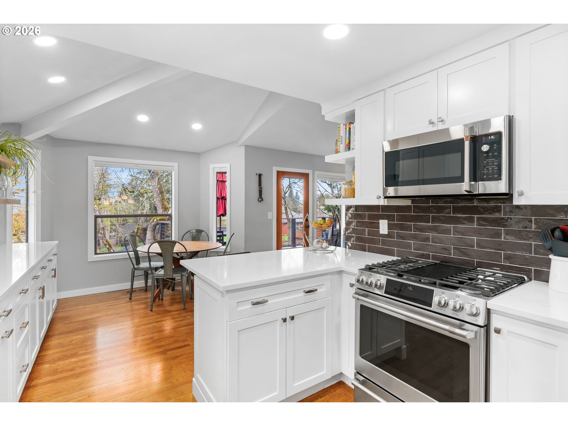 Charming single-level home tucked on one of Southwest Portland’s friendliest cul-de-sacs—Flower Place. This home offers easy, comfortable living with thoughtful updates throughout. The updated kitchen is the heart of the home, featuring a gas cooktop, quartz countertops, eating bar, and cozy nook—perfect for everyday living and gathering. Natural light fills the space, creating a warm and welcoming feel in every room. A versatile den or flex space just off the dining area adds flexibility for a home office, reading room, or home gym. Step outside to an expansive Trex deck—ideal for entertaining or simply relaxing and enjoying the peaceful setting. Located in the desirable Hayhurst neighborhood, you’re just minutes from Multnomah Village’s shops and restaurants, and only a few blocks from Gabriel Park, with its playground, pickleball courts, sand volleyball, baseball fields, and more. [Home Energy Score = 2. HES Report at https://rpt.greenbuildingregistry.com/hes/OR10038238]