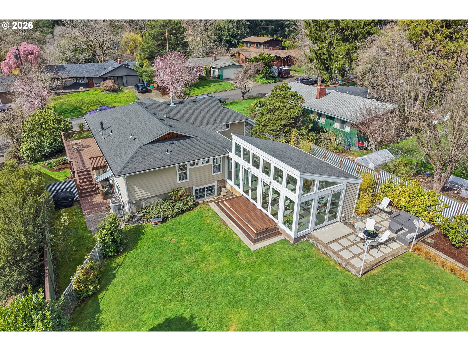 (503) 893-8874Loving where you live is easy with this rare light-filled retreat featuring a spectacular sunroom, seamless indoor-outdoor living, and an expansive landscaped yard in one of Portland’s most desirable neighborhoods, in Bridlemile. The main living area flows effortlessly between the living room, dining area, and a stunning gourmet kitchen featuring slab quartz countertops, a premium gas range, double ovens, and a large island eating bar. A cozy gas fireplace anchors the living space, while French doors open to a generous south-facing deck, perfect for entertaining and everyday indoor-outdoor living. You will also find two bedrooms and two bathrooms on the main level, highlighted by a spacious primary suite featuring a modern bath, walk-in closet, and French doors leading out to the private courtyard and sunroom. The elegant and thoughtfully designed sunroom elevates this home into a class all by itself. This space feels like a private retreat in nature, showcasing floor-to-ceiling south-facing windows, glass paned doors on multiple sides, and radiant heated floors. Here, you can enjoy year-round comfort with the option to open everything up and seamlessly extend the living space to the surrounding Ipe decking, private courtyard, and lush backyard. The updated lower level offers two oversized bedrooms, a full bath, a large family room, an office/flex space, a laundry area, and two exterior entrances providing excellent versatility for guests, multi-generational living, or work-from-home space.This home truly captures the best of Portland living blending light and bright interior spaces with peaceful outdoor spaces, using exceptional indoor-outdoor flow across a rare oversized private lot. Don't miss out on this perfectly balanced property in one of Portland’s most sought-after neighborhoods: homes with this combination of light, lot size, and indoor-outdoor living tend to go fast at this value. [Home Energy Score = 2. HES Report at https://rpt.greenbuildingregistry.com/hes/OR10243779]