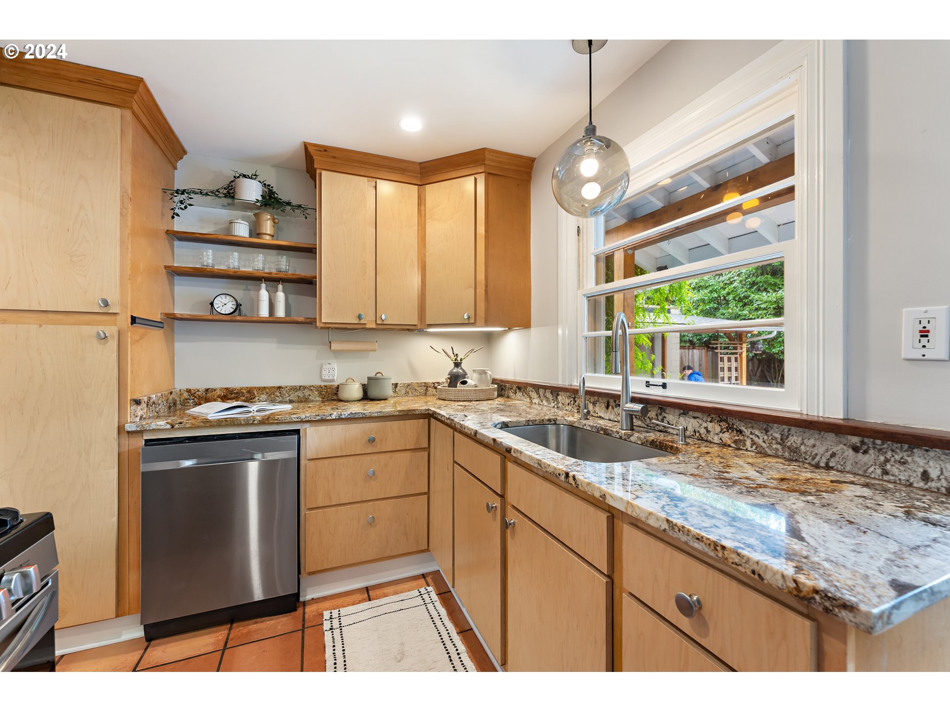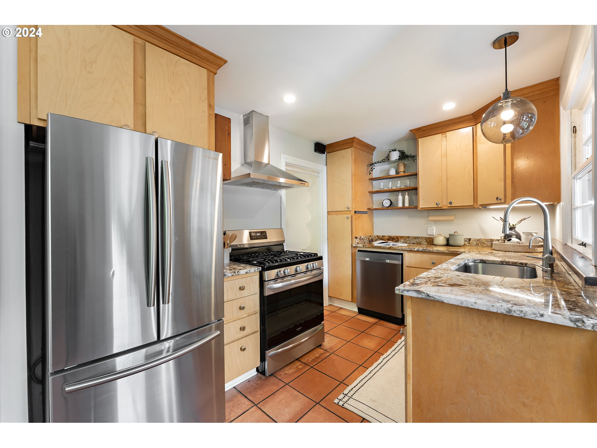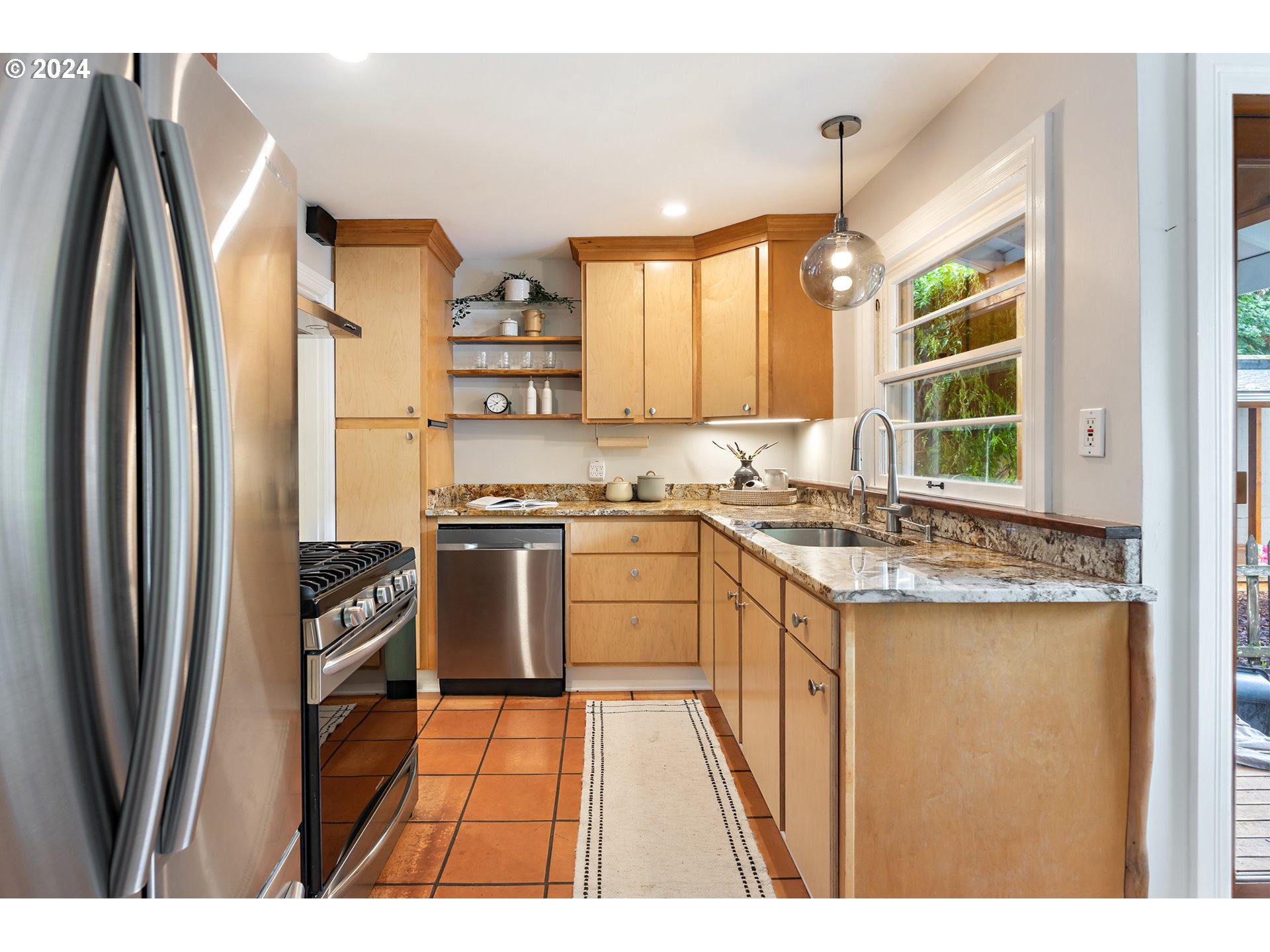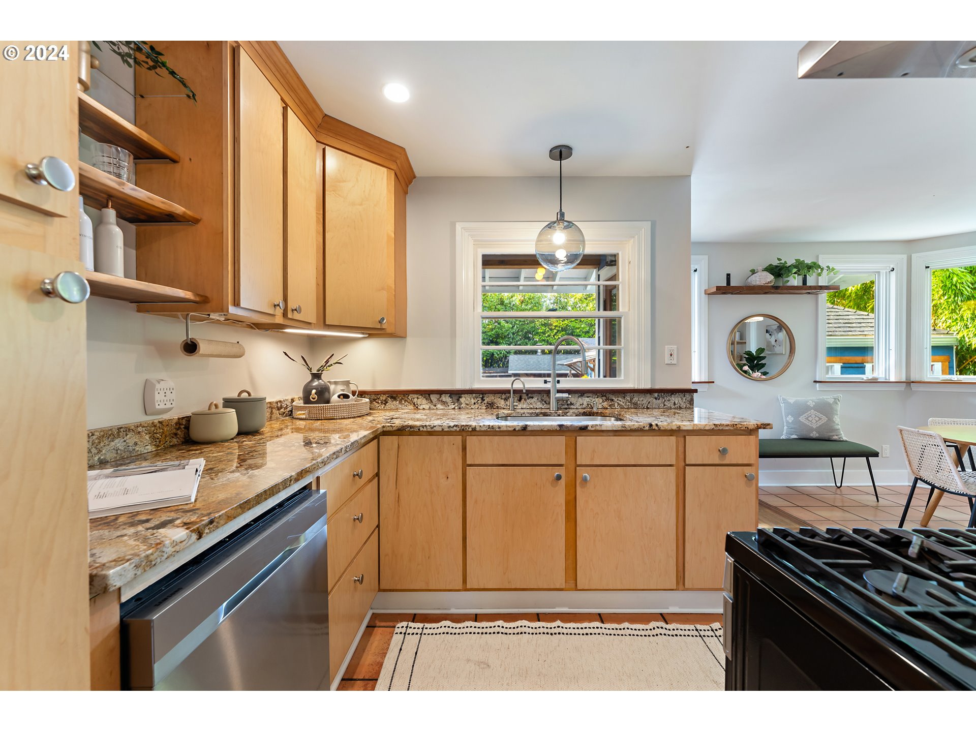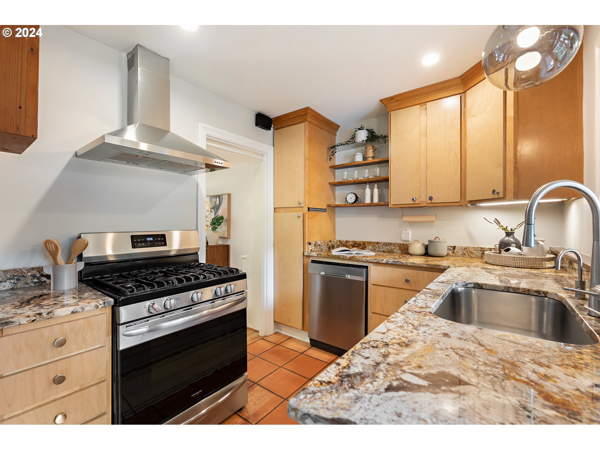 Dishwasher, FreeStandingGasRange, GasAppliances, Granite, Pantry, StainlessSteelAppliance, Tile