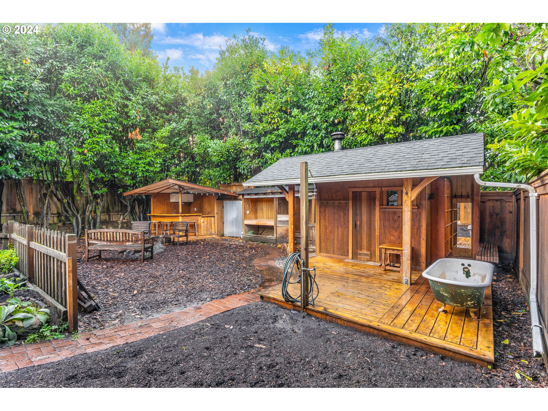 CoveredDeck, Fenced, FirePit, Garden, Porch, RainBarrelCistern, Sauna, ToolShed, Workshop, Yard