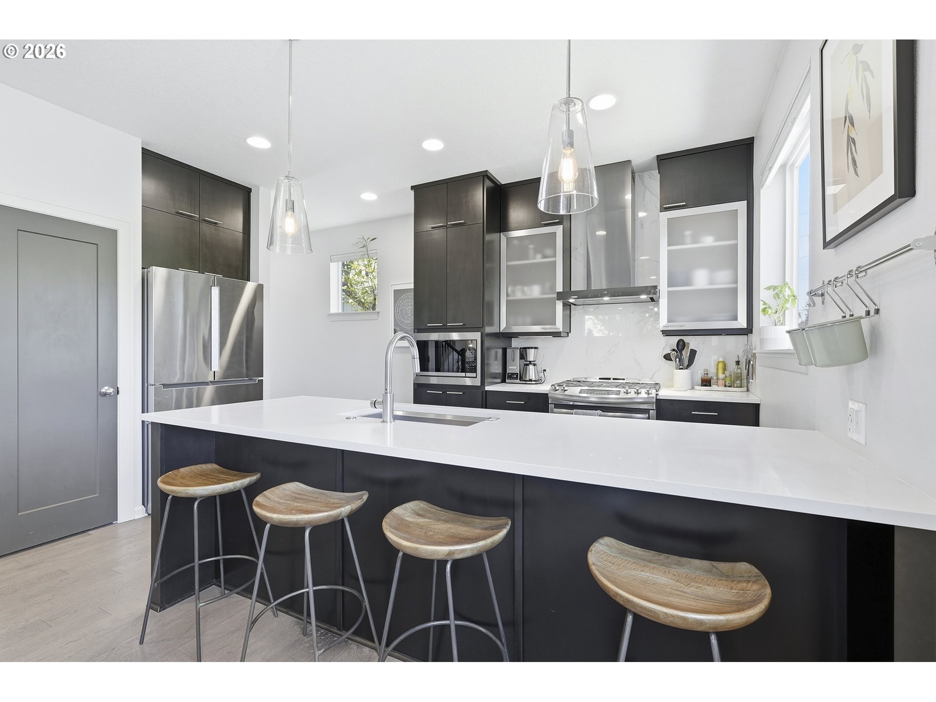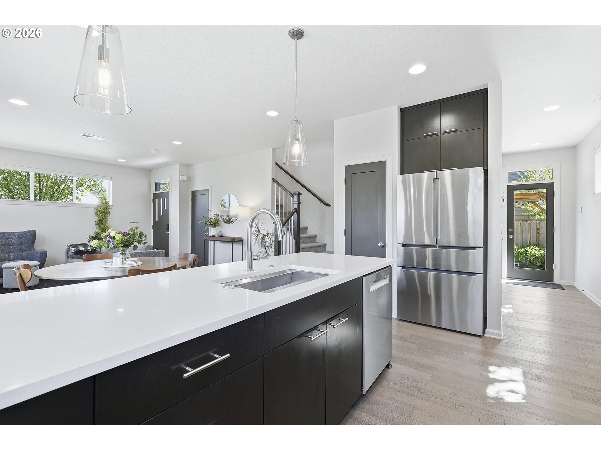 (503) 893-8874Crafted by award winning Renaissance Homes, this contemporary beauty with eye-catching cedar accents is LEED Certified with a perfect 10 HES & 99 Bike Score giving you environmental bragging rights. Set on a dreamy corner lot & intentionally designed to capture a wow-worthy abundance of natural light while preserving a rare sense of privacy. The open concept main level incorporates high ceilings, engineered hardwoods & equally supports everyday living or elevated entertaining with an atmosphere that soothes. The kitchen offers both beauty and brains with an on-trend dramatic Dekton continuous backsplash, quartz counters with eating bar, pantry, multiple Bosch premium appliances, & multiple smart enabled appliances, blending innovation with design. A large pantry and downstairs roomy coat closet all add to the easy living. Upstairs is a rare find - floor to ceiling windows for even more natural light. The generously sized primary suite provides a calming aesthetic & features double sinks, a roomy tiled walk-in rainhead shower with contrasting accents & walk-in closet with built-ins. The cherry on top? A yard you can use! Brimming with established plantings the fully fenced multi-zone yard maximizes every square inch and is designed with options for both rejuvenation & play using sleek French door gates. Sure to become a favorite spot, the backyard patio with wisteria draped pergola creates a tranquil backdrop for al fresco dining or relaxed evenings inviting you to linger. Additional highlights include tankless water heater, 95% gas furnace, Central A/C, upstairs laundry with built-ins, sprinklers, outdoor gas hookup, & Ring doorbell. Superb Portsmouth location within easy reach of multiple food cart pods, New Seasons, Kenton, U of P, & St. John's. Short stroll to 35 acre Columbia Park/ Annex for nature, sports & community engagement. The $91 million state of the art NoPo Aquatic Center breaking ground in '27 will add to the neighborhood appeal. [Home Energy Score = 10. HES Report at https://rpt.greenbuildingregistry.com/hes/OR10023299]