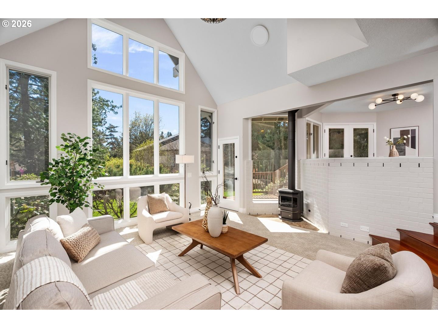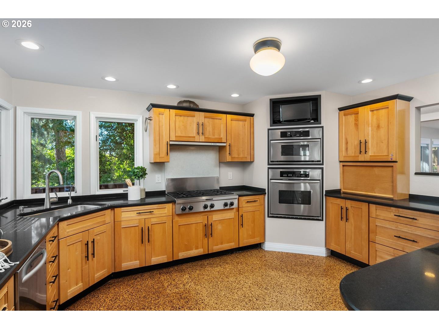 (503) 893-8874Soaring ceilings and great light on huge .45 acre lot at end of cul-de-sac in desirable Bridlemile. Remodeled kitchen with slab granite counters, two sinks and stainless gas appliances, including six burner professional grade range, two convection ovens and built-in refrigerator. Adjacent breakfast nook has glass doors leading to expansive deck. Two-story living room with wall of south-facing windows and newer gas stove. Good size family room also has wall of windows. Impressive, three-story entry hall. Main floor bedroom and full bathroom with new vanity and tile shower with glass enclosure perfect for visiting family. Spacious primary suite with huge walk-in-closet, tile shower and soaking tub. Hall bath features dual vanities and subway tile tub/shower. Office with two built-in workstations, cabinets and high ceiling. Convenient upstairs laundry. Expansive, private yard with entertaining size deck and paver stone patio, two large, level sections of lawn, spacious tool shed and space to park an RV or boat. Two short blocks on quiet cul-de-sacs to private entrance to Kelley Park. Desirable Bridlemile elementary, Robert Gray middle school and Ida B Wells high school. [Home Energy Score = 1. HES Report at https://rpt.greenbuildingregistry.com/hes/OR10231513]