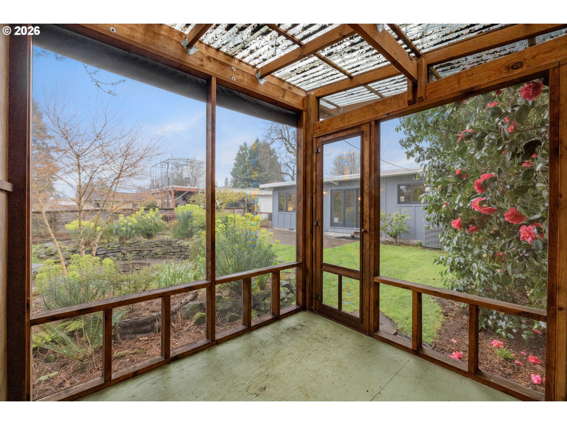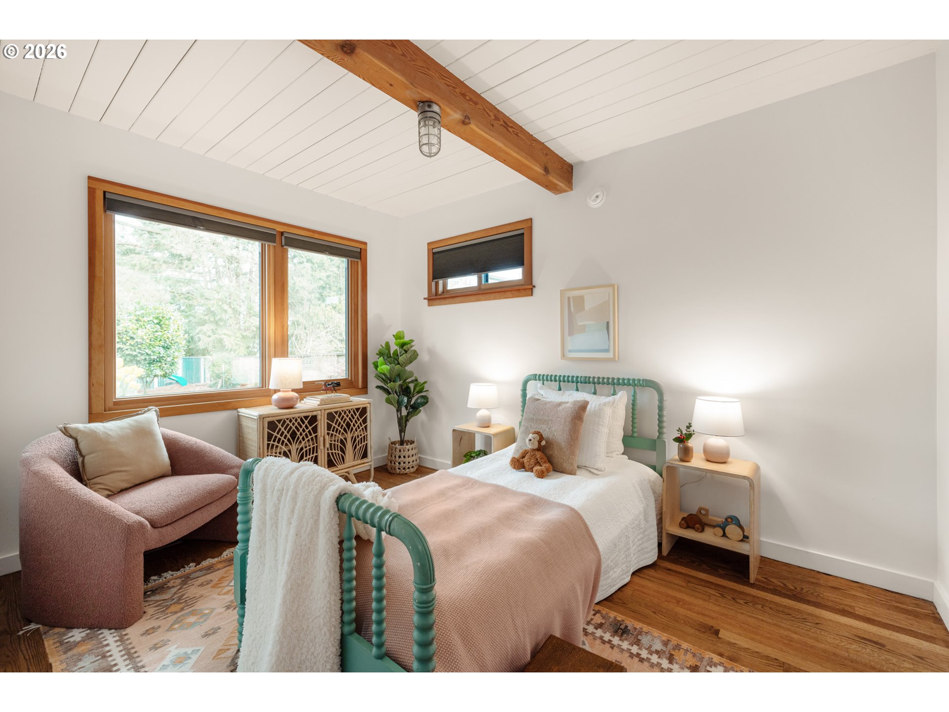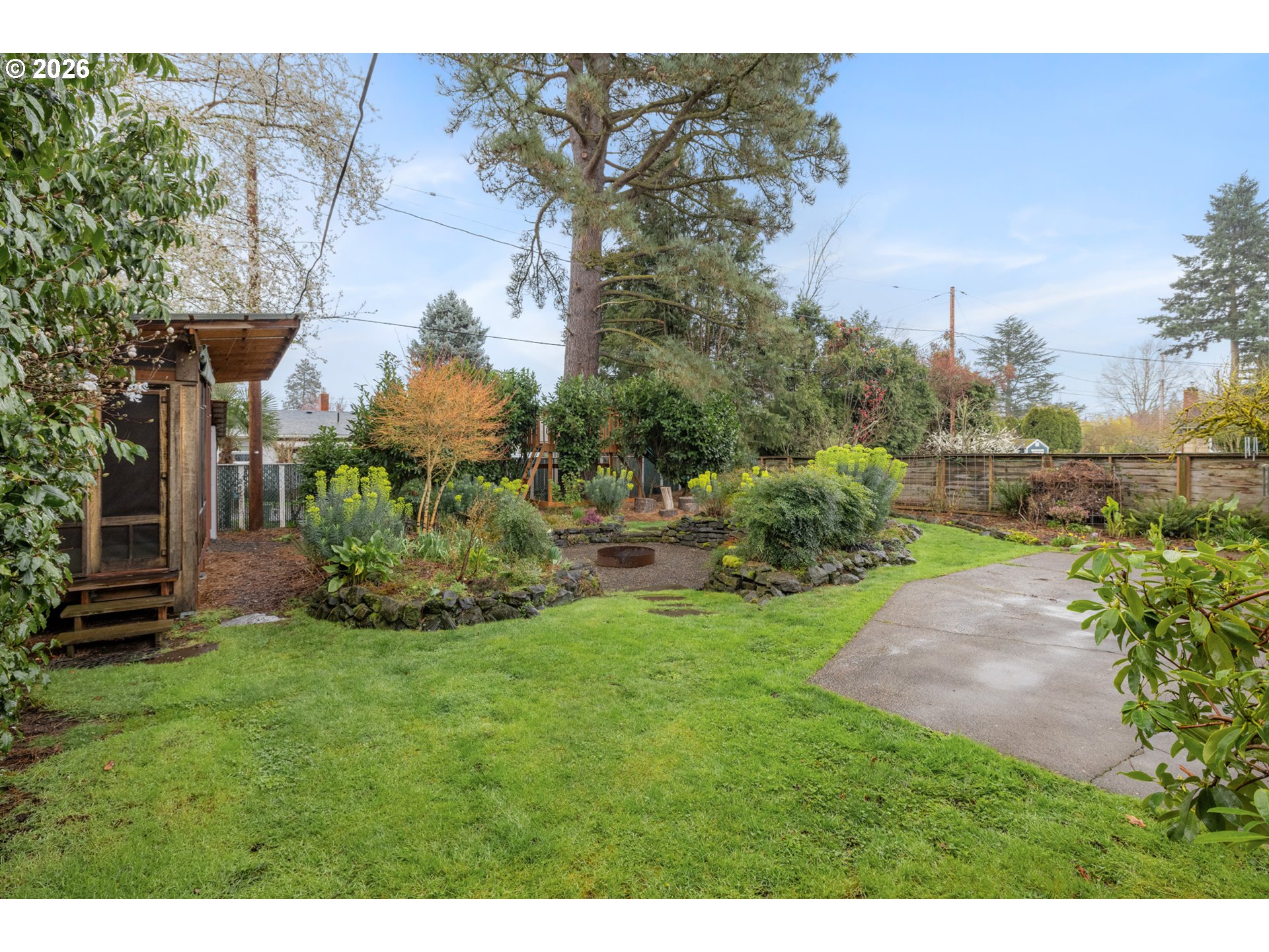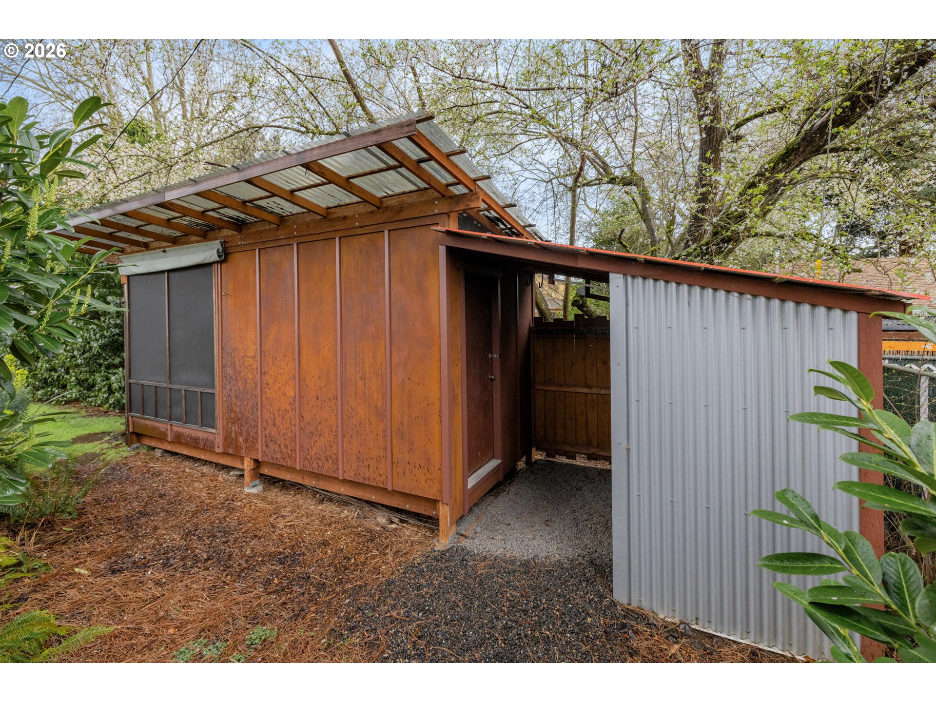 Where the street ends, your next adventure begins - your own little world, a tucked-away paradise with a sleek modern exterior surrounded by lush landscaping. Inside - soul-satisfying natural wood finishes everywhere you look - exposed beams, wood framed windows and unpainted trim, oak floors and fir doors all entice you to curl up with a book in front of the fire and get cozy. The large primary bedroom fits a king bed with room to spare for a dresser, a small couch and even your Peloton! The sellers added a fully permitted second bathroom to create a primary suite, with a walk-in shower and so much gorgeous green tile it’s guaranteed to make you swoon. On a large lot - look forward to summer in your own backyard paradise! Fully fenced and ready for pets and play with a patio for hosting and outdoor dining and an established garden with open bed space for veggies, tomatoes, dahlias and more. There’s a weathered steel fire pit, a sleeping porch and a tree fort for the young and young at heart. Tons of recent updates like a new roof (2022), full repipe, new water main, 200 amp electric service and more. All this in Woodstock - everything you need is right here! Woodstock Park, New Seasons, Ace Hardware, Safeway, Grand Central, Cloud City Ice Cream, Heist Food Carts, the newly renovated public library and Mt Scott Community Center, a long list of great restaurants and so much more, all just a short walk or bike ride away. Welcome home! [Home Energy Score = 4. HES Report at https://rpt.greenbuildingregistry.com/hes/OR10201858]