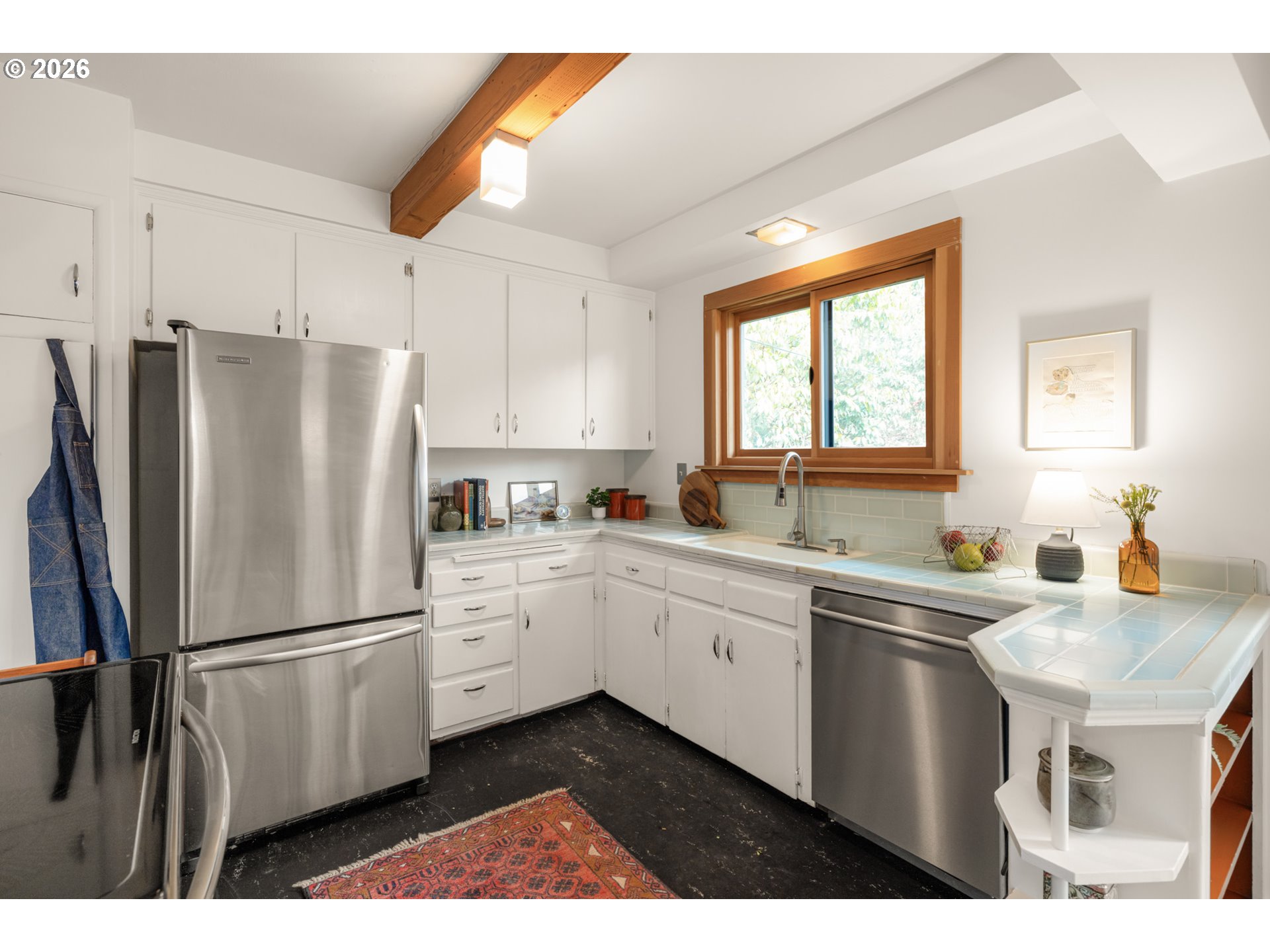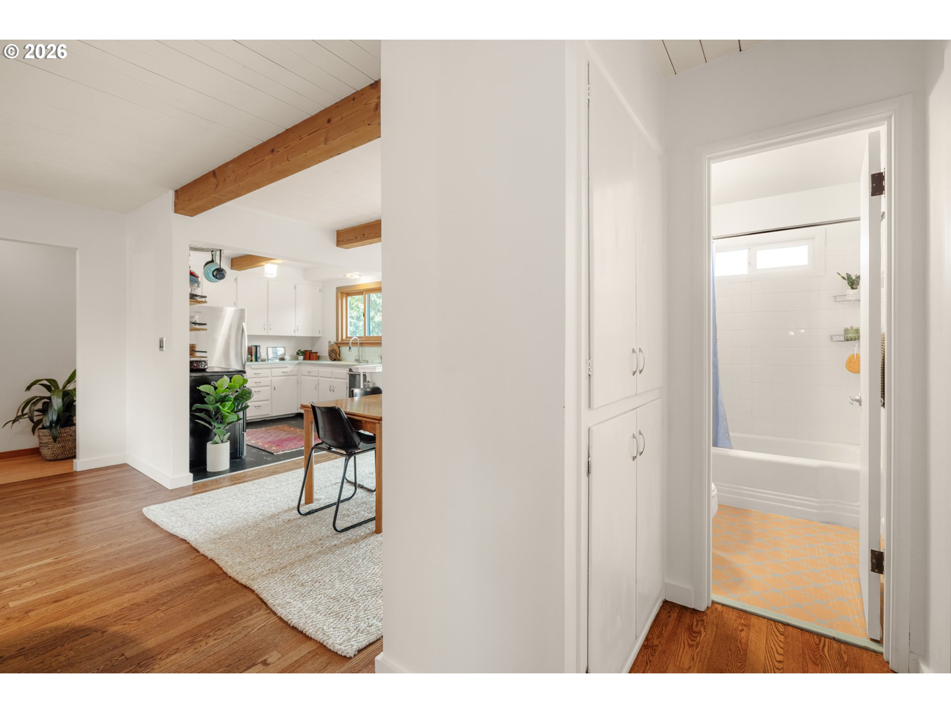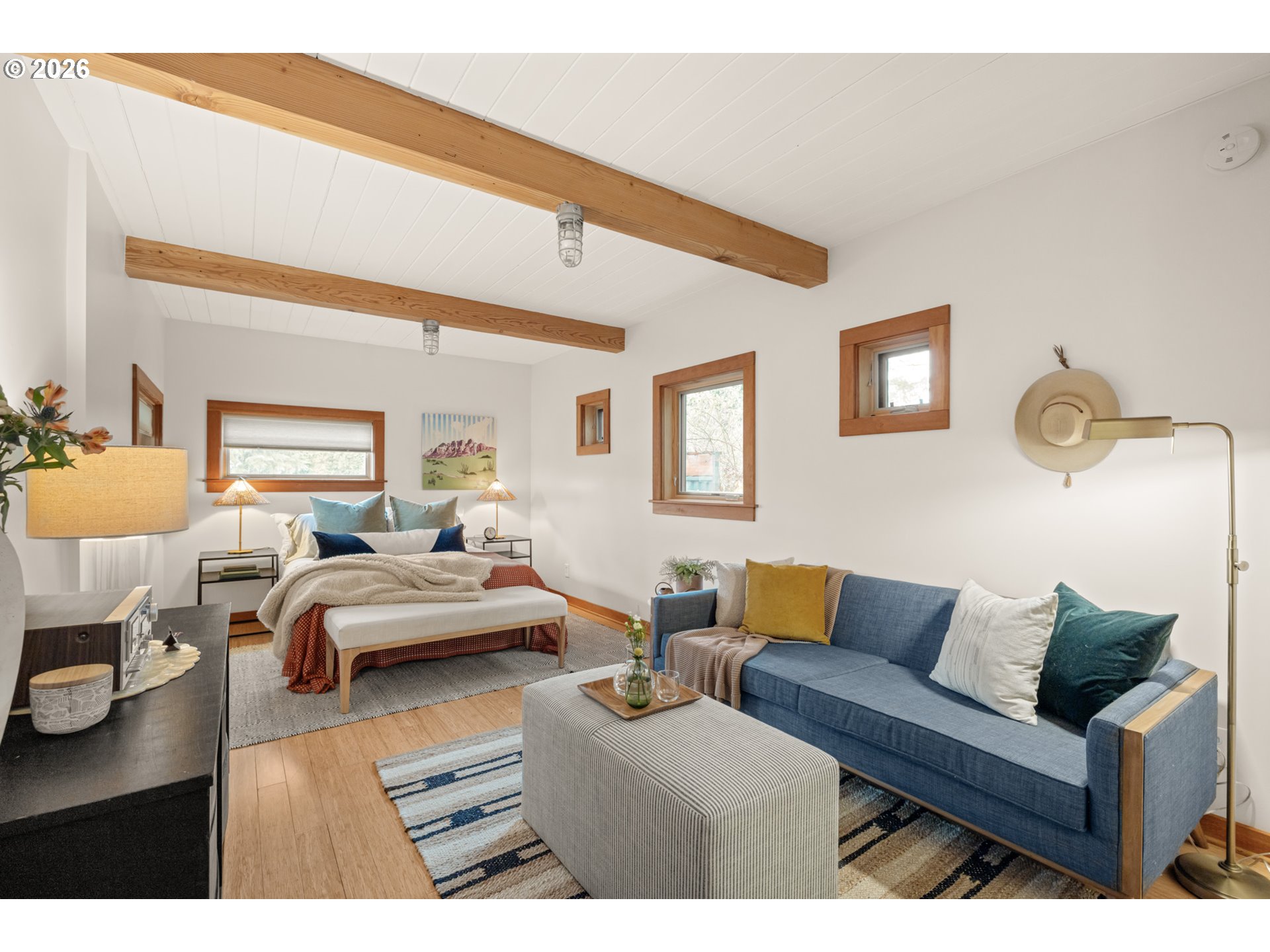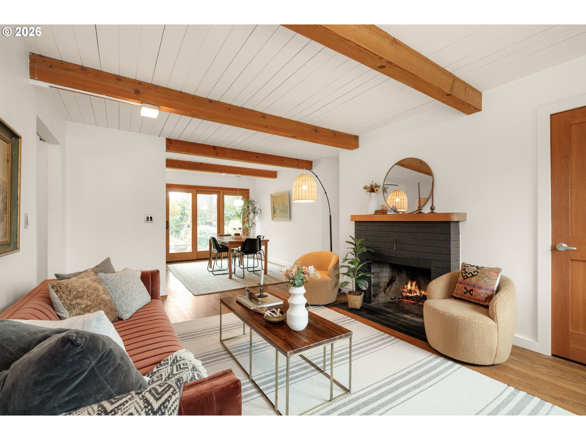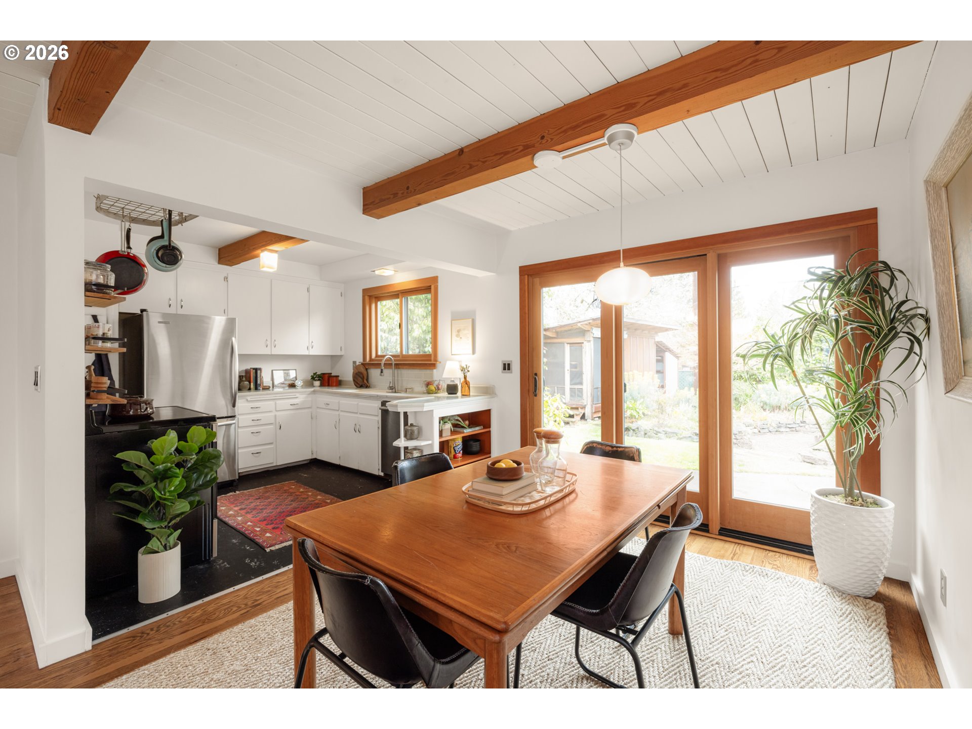 Where the street ends, your next adventure begins - your own little world, a tucked-away paradise with a sleek modern exterior surrounded by lush landscaping. Inside - soul-satisfying natural wood finishes everywhere you look - exposed beams, wood framed windows and unpainted trim, oak floors and fir doors all entice you to curl up with a book in front of the fire and get cozy. The large primary bedroom fits a king bed with room to spare for a dresser, a small couch and even your Peloton! The sellers added a fully permitted second bathroom to create a primary suite, with a walk-in shower and so much gorgeous green tile it’s guaranteed to make you swoon. On a large lot - look forward to summer in your own backyard paradise! Fully fenced and ready for pets and play with a patio for hosting and outdoor dining and an established garden with open bed space for veggies, tomatoes, dahlias and more. There’s a weathered steel fire pit, a sleeping porch and a tree fort for the young and young at heart. Tons of recent updates like a new roof (2022), full repipe, new water main, 200 amp electric service and more. All this in Woodstock - everything you need is right here! Woodstock Park, New Seasons, Ace Hardware, Safeway, Grand Central, Cloud City Ice Cream, Heist Food Carts, the newly renovated public library and Mt Scott Community Center, a long list of great restaurants and so much more, all just a short walk or bike ride away. Welcome home! [Home Energy Score = 4. HES Report at https://rpt.greenbuildingregistry.com/hes/OR10201858]