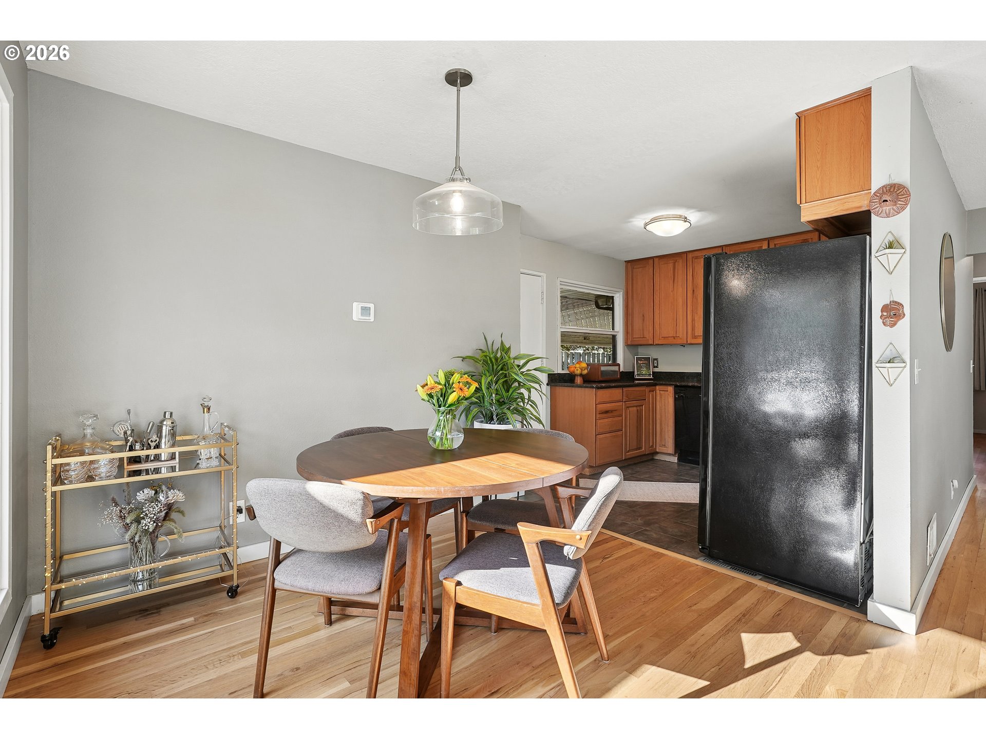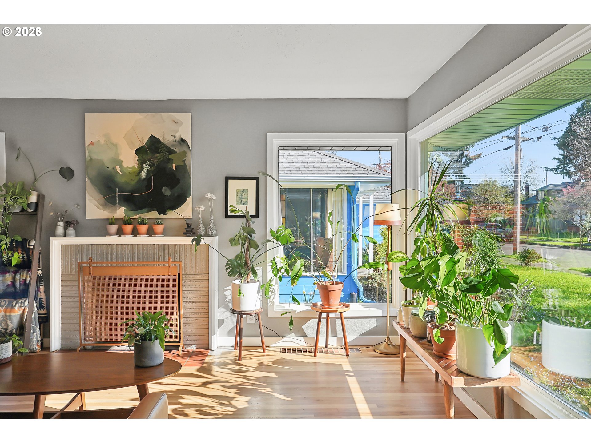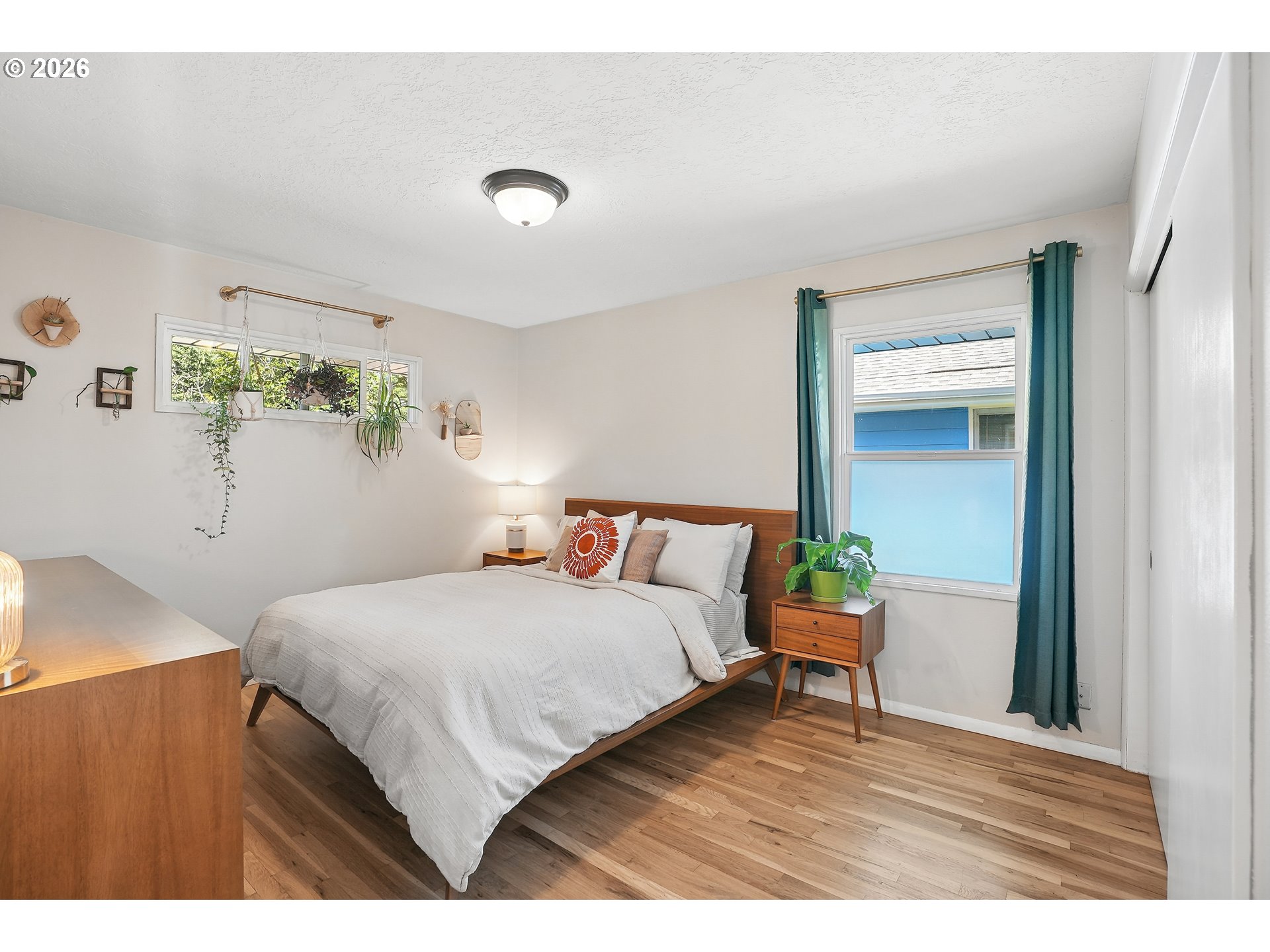 Step inside this light filled Woodstock home where modern updates meet timeless detail. The living room welcomes you with beautiful picture windows, abundant natural light, and newly refinished hardwood floors that create a warm and inviting first impression.The space flows easily into the dining area, framed by windows and perfect for everyday living and gathering. The kitchen offers a functional layout with generous storage, warm cabinetry, and plenty of counter space to cook and connect.Down the hall, you’ll find spacious bedrooms with great natural light, along with larger closets and additional hallway storage that add to the home’s everyday functionality. The layout offers flexibility for guests, work from home, or additional living. Thoughtful updates throughout make the home feel move in ready while maintaining its original character.Step outside to a covered patio designed for year round use, ideal for entertaining or relaxing. The backyard offers space to gather, garden, and plant, with garden beds, a tool shed, and room to make it your own.The attached garage provides additional storage and convenience. Located in the heart of Woodstock, parks, shops, and neighborhood favorites.