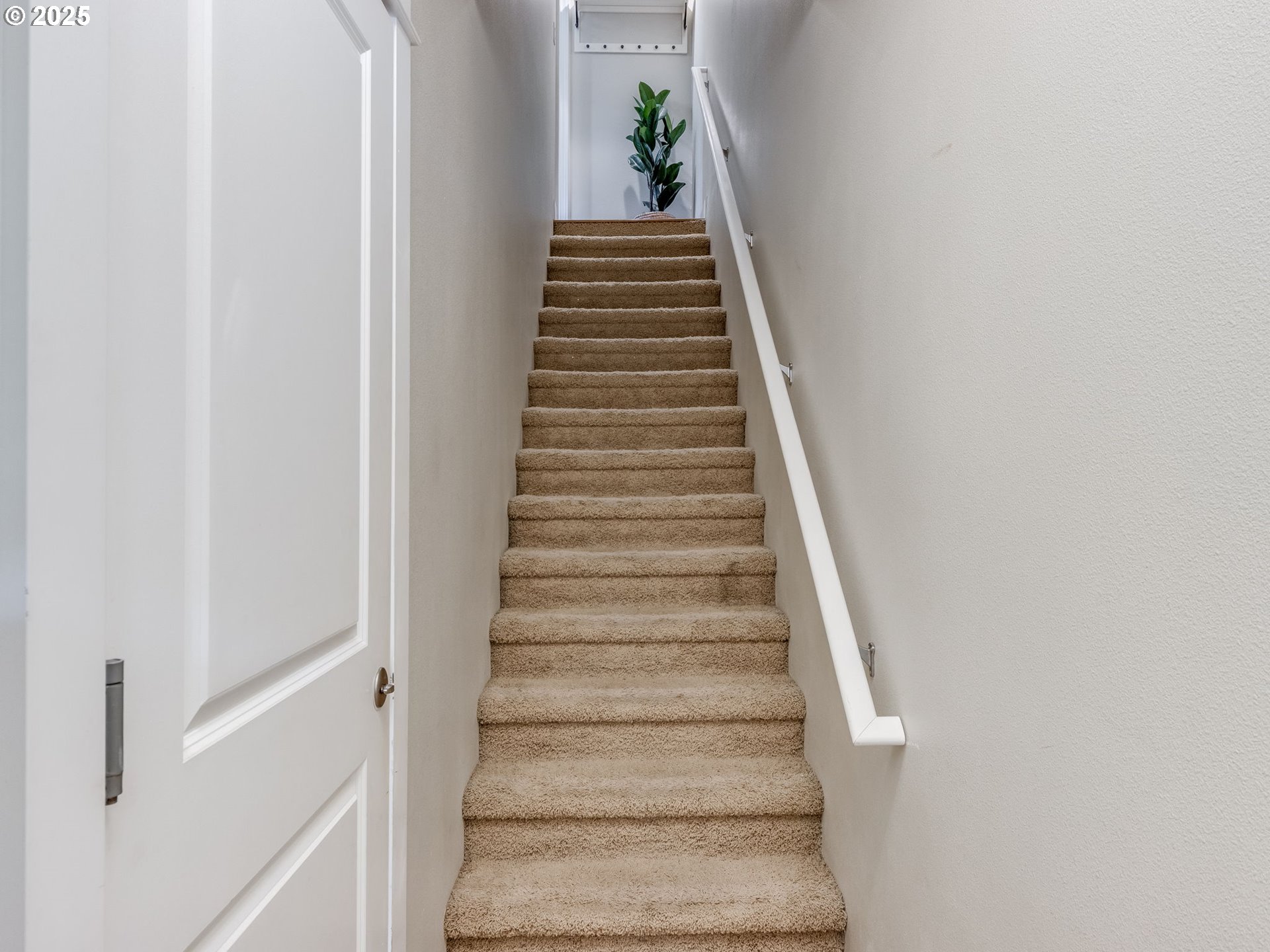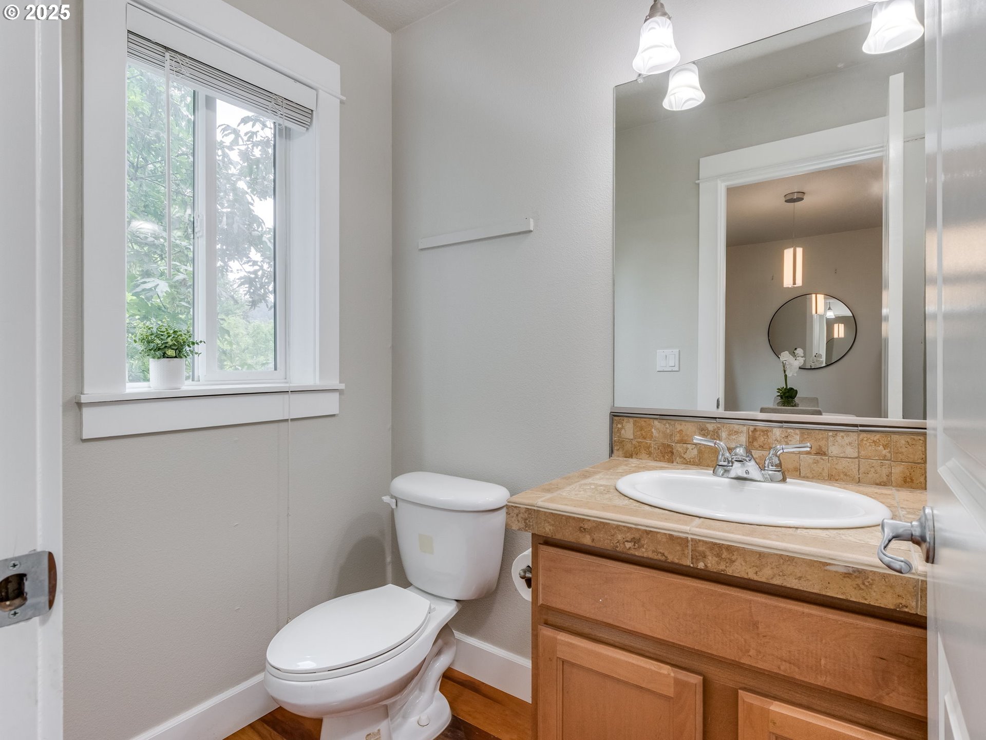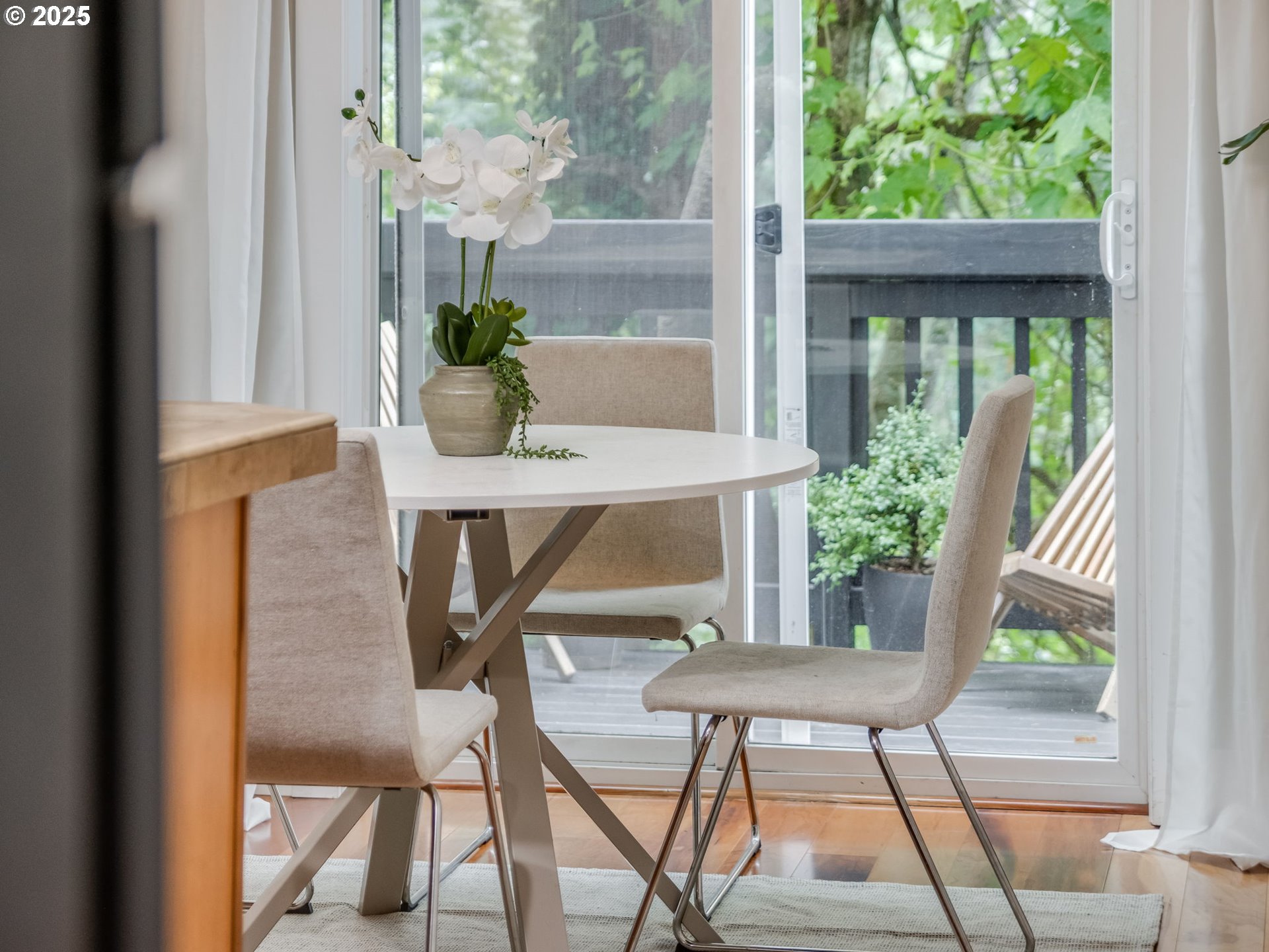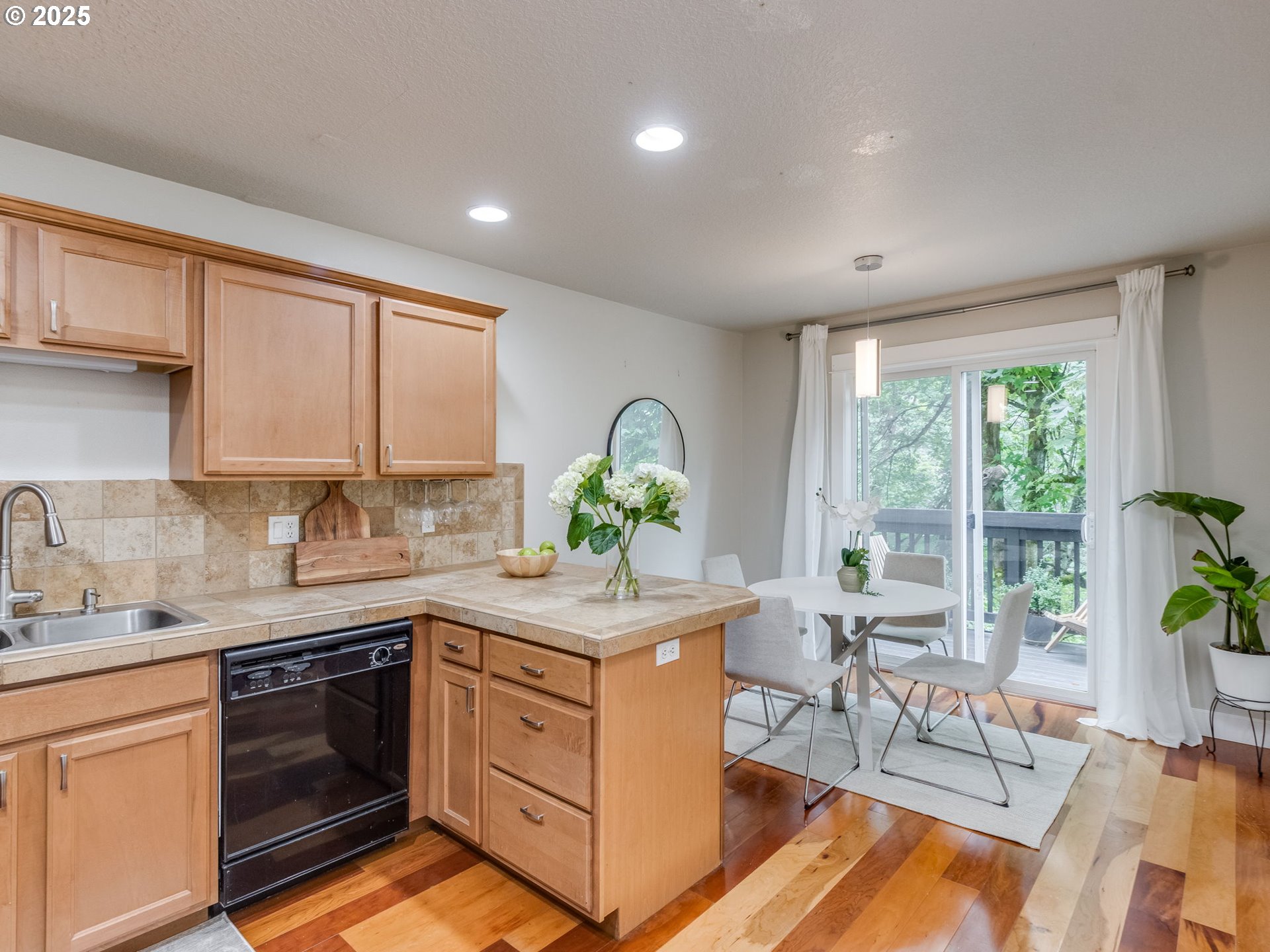 This townhome blends natural beauty, smart layout, and unbeatable convenience—all just minutes from the city. Out back, a private deck overlooks a year-round creek lined with trees that transform with the seasons. The setting is peaceful and full of life: songbirds throughout the day, owls calling at night, and the occasional deer passing through. Inside, the main level features wood floors, great natural light, and an open kitchen/dining area that flows out to the deck—perfect for morning routines, evening dinners, or simply taking in the view. A half bath adds convenience on the main level. Upstairs you’ll find two comfortable bedrooms, a full bath, and a second sink/vanity in one of the rooms that adds extra functionality.The oversized tandem garage fits two cars—or a car and a boat—with additional room for storage or gear.Out front, a multi-use path offers easy access for biking, running, walking, or however you like to get around, and public transit is nearby. You’re within easy reach of Hillsdale, Multnomah Village, Gabriel Park, and major commuter routes—all while nestled snugly in one of Portland's most scenic residential nature preserves. [Home Energy Score = 9. HES Report at https://rpt.greenbuildingregistry.com/hes/OR10233497]