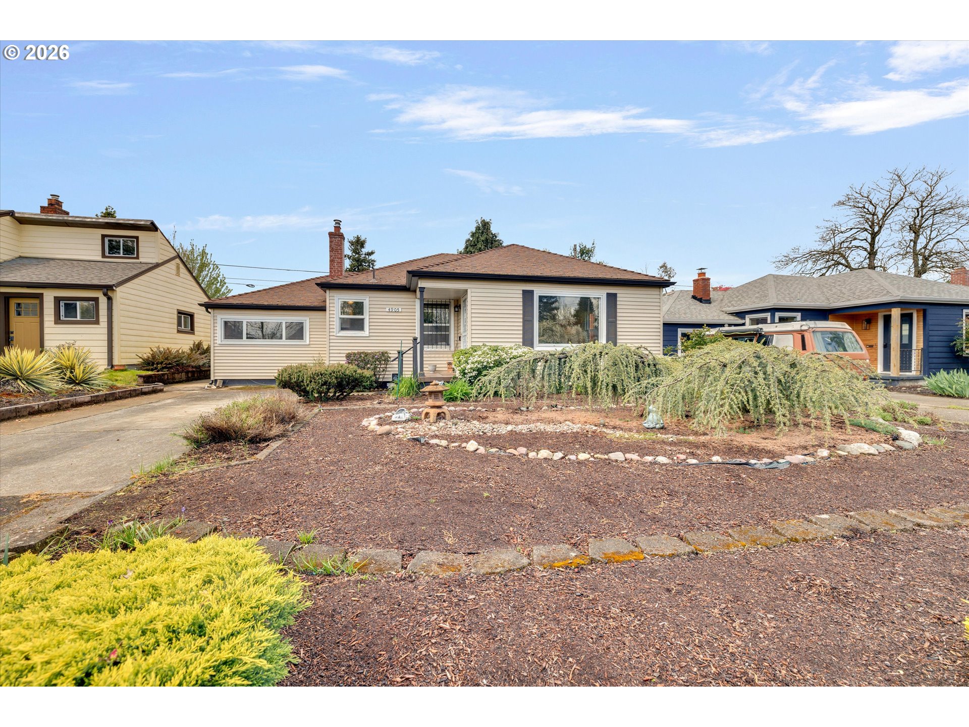 Charming 1950's Home Tucked Away at the end of a established street! This well maintained and charming 2-3 bedroom, 1-bath home offers comfort, character, and a fantastic location close to the airport, shopping, dining and all the conveniences. Inside you’ll find fresh interior paint, updated luxury vinyl flooring, walk-in shower, gas furnace, air conditioning, and a darling freestanding gas stove that adds warmth and charm to the spacious living space + darling built-in linen closet. The 3rd bedroom or flexible bonus space perfect for a home office, hobby room or even more storage w/ small loft. Outside, enjoy a spacious but low-maintenance lot with a private backyard, patio, and ample driveway and street parking. This is move in ready! [Home Energy Score = 4. HES Report at https://rpt.greenbuildingregistry.com/hes/OR10247047]