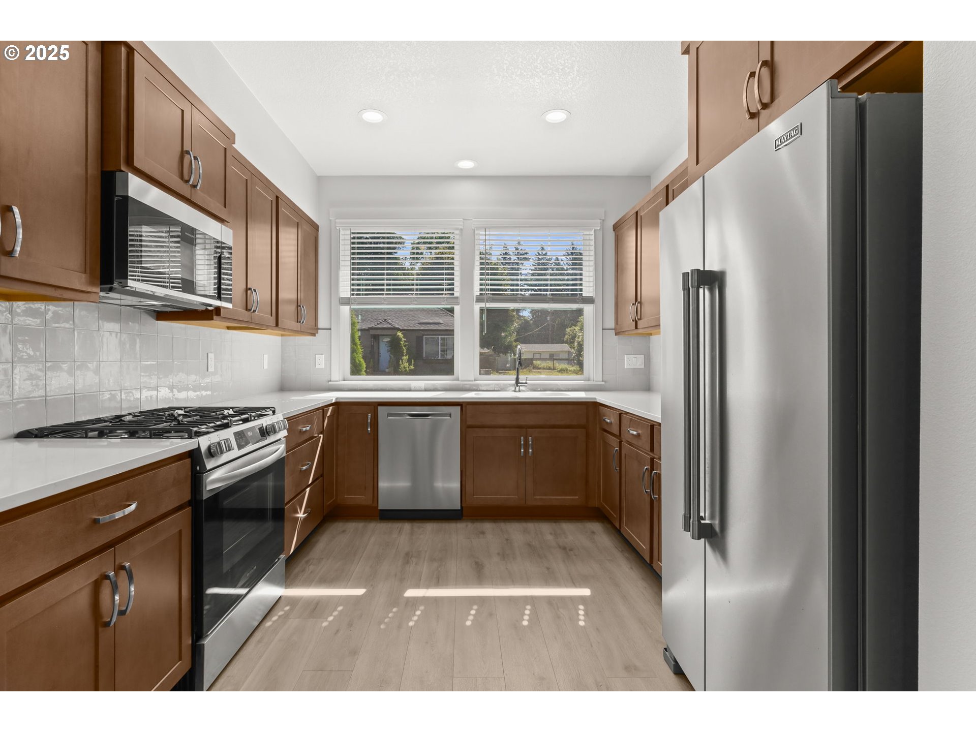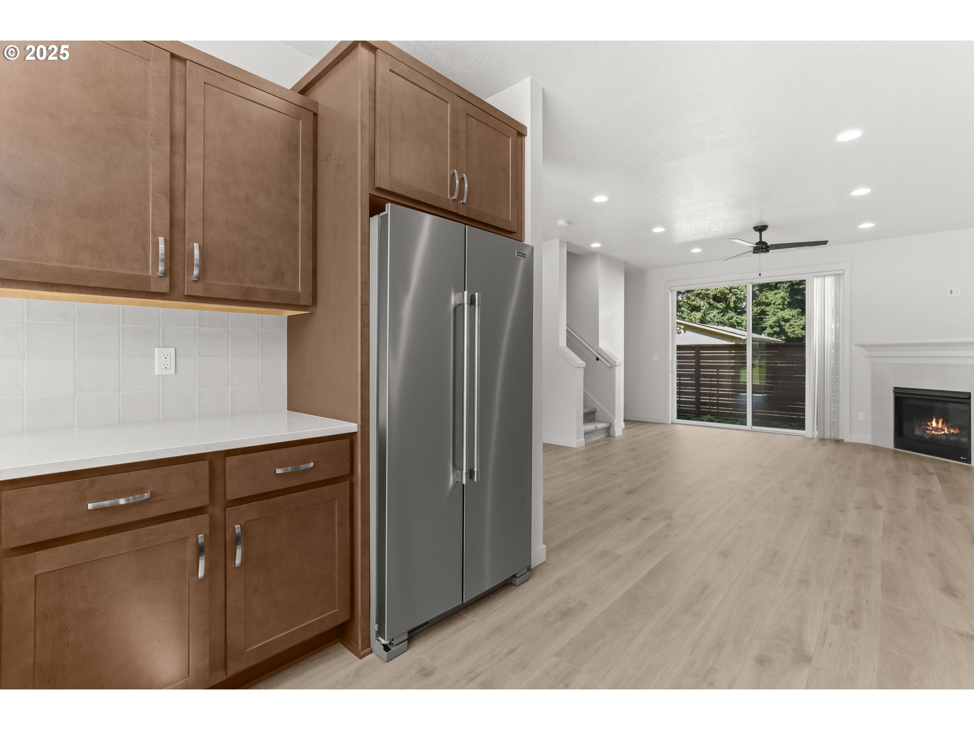 Built in 2024, CONTEMPORARY TOWNHOUSE - Light & Bright! offers 3 bedrooms and 2.1 baths with a modern, open layout just minutes from Historic Downtown Gresham, great restaurants & parks with year-round events galore! Inside, enjoy stylish laminate flooring, sleek quartz countertops, and a cozy gas fireplace. The main level opens to a private patio with a storage closet—perfect for outdoor relaxation. Upstairs features all three bedrooms, a convenient utility room, and well-appointed baths. An oversized 1-car garage adds extra storage or workspace. A perfect blend of comfort, convenience, and low-maintenance living!