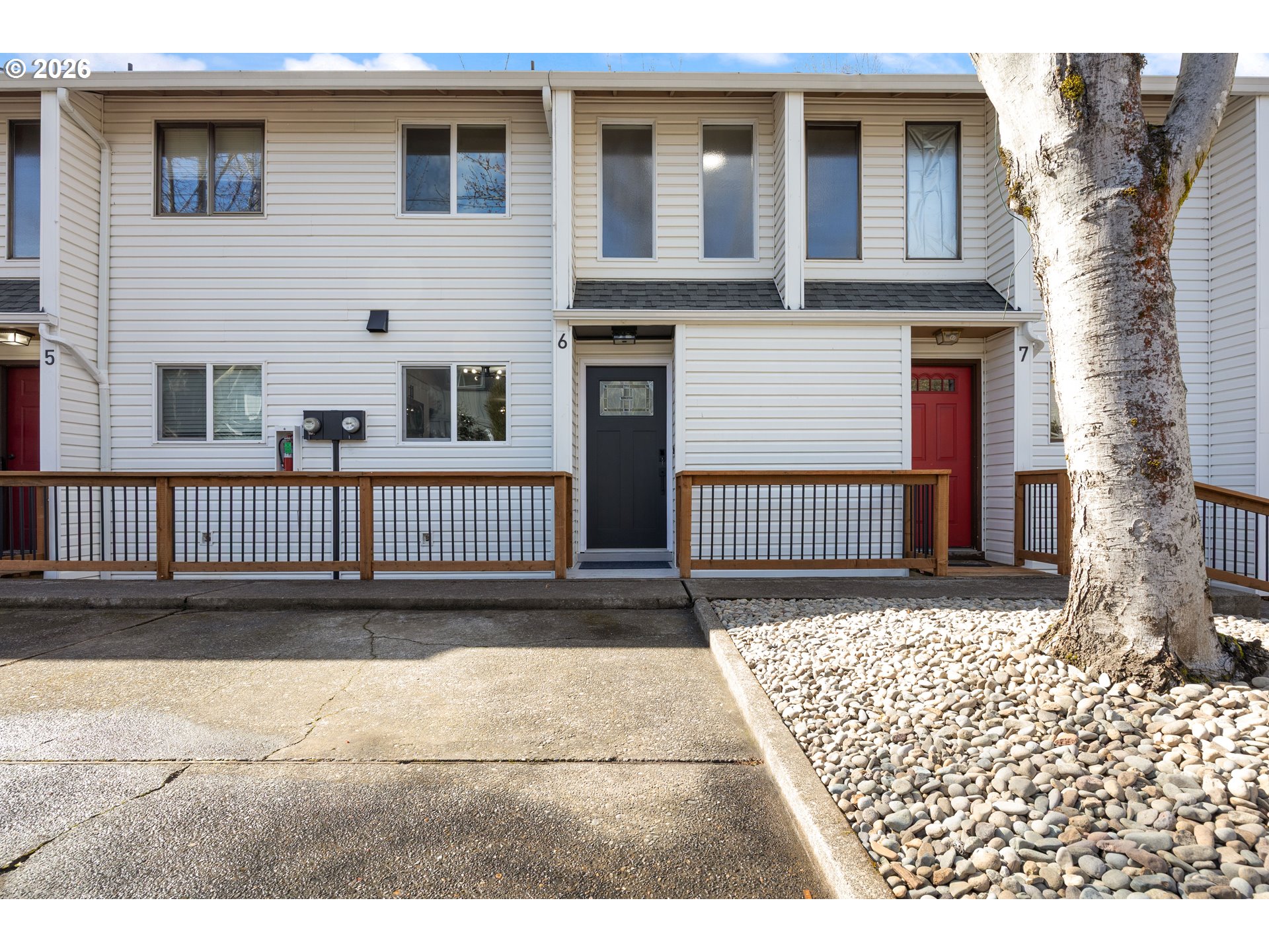Fully renovated 2 bedrooms, 1.5 bathroom townhouse Move-in ready with low HOA! in desirable Bridlemile, where convenience and comfort meet. Step inside and be greeted by a cozy living space featuring a wood-burning fireplace with charming brick surroundings, Enjoy peace of mind with recent upgrades with brand new flooring, paint, remodeled kitchen with quartz countertops, modern appliances with an in-unit washer & dryer, new bathrooms with custom tile and two storage sheds on the back balconies. Plus, you'll enjoy the added convenience of a recently completed exterior remodel, boasting a new roof, fences, newer exterior paint and more. The property backs up to trees and a neighboring yard, offering some privacy and greenery along with large parking area. Don't miss out on the opportunity to call this home. Seller is LA.