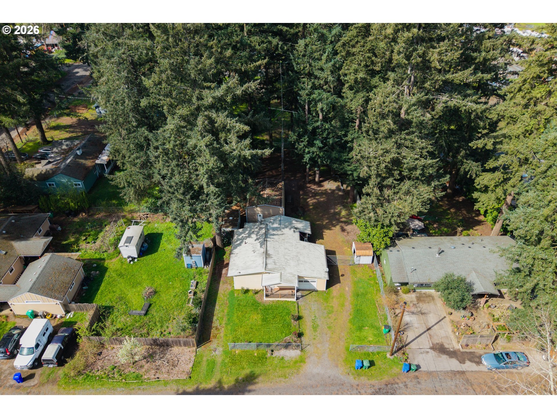 Opportunity knocks with this 2-bedroom, 1-bath home on a spacious 1/3 acre treed lot, complete with a 2-year comprehensive home warranty for added peace of mind. This home offers a cozy, well-cared-for interior with a functional layout and an enclosed area for laundry and extra storage. The true standout here is the land. Enjoy the expansive lot as your own private retreat with room for a pool, garden, trampoline, backyard camping, or even a small hobby farm. For those looking to maximize value, the seller called the city to confirm the lot offers potential to divide and create a flag lot — ideal for selling off a portion or building a second residence (Buyer to confirm). Additional features include a large 18x24 shop/outbuilding (equipped with a Ham radio antenna!) and a separate storage shed — both give you ample space for projects, storage, a 2nd garage or workspace. Repurpose the vintage trailer for additional storage or a chicken coop! Located just over a mile from Powell Butte Nature Park, you’ll have easy access to miles of scenic trails and outdoor recreation. Whether you’re looking for an investment opportunity or land to create your vision, this property is full of potential. This home has a 5.5% FHA assumable mortgage! [Home Energy Score = 5. HES Report at https://rpt.greenbuildingregistry.com/hes/OR10246331]