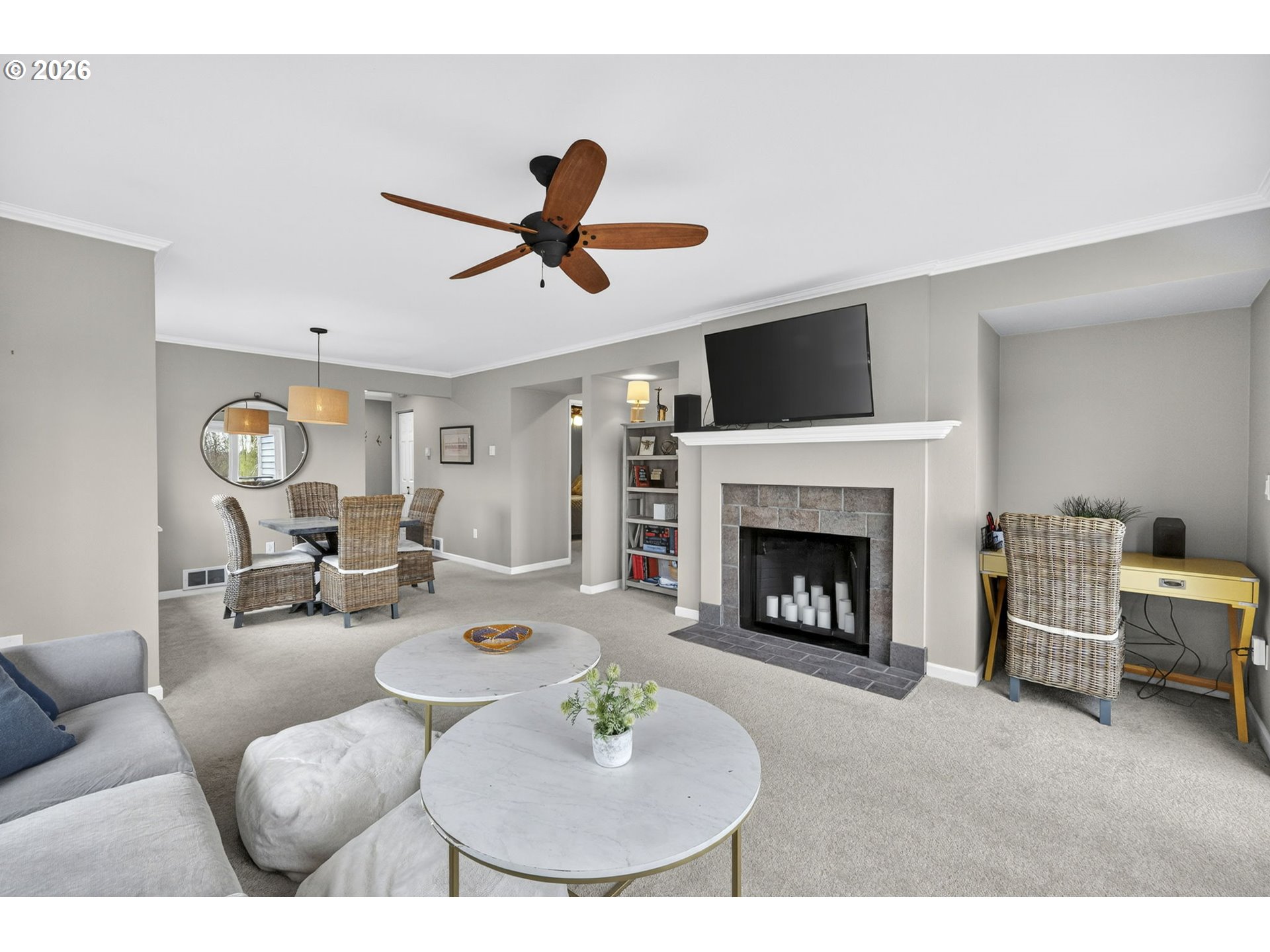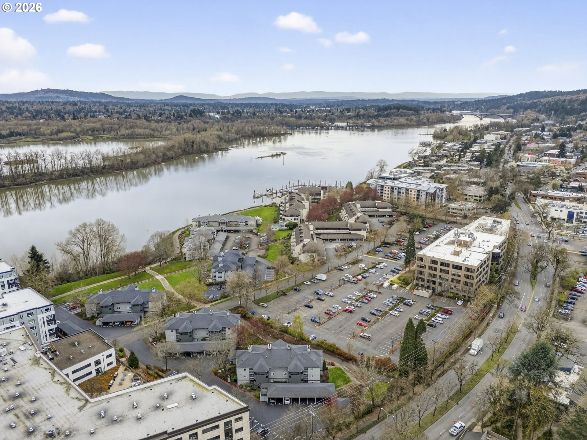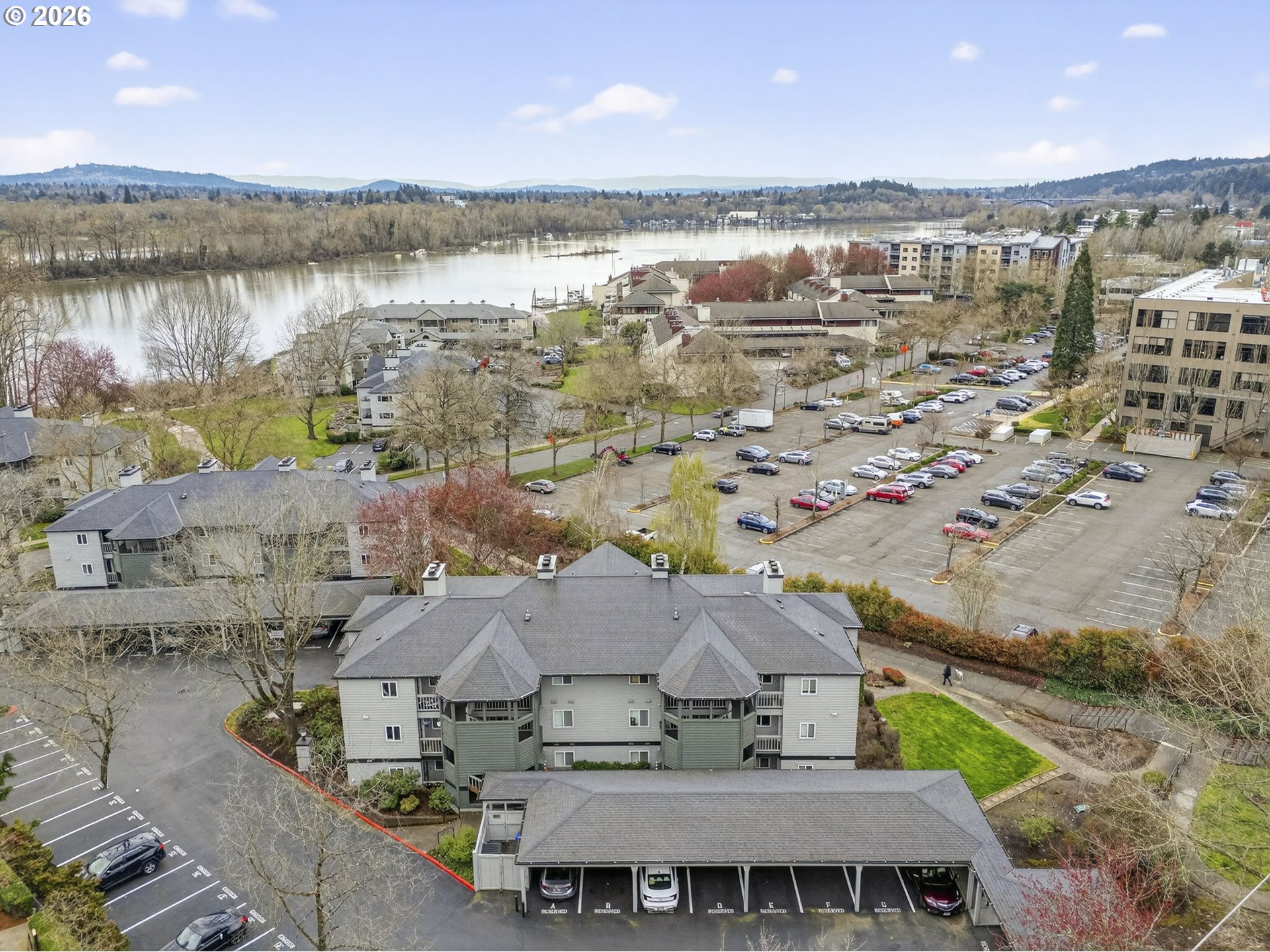John's Landing Stylish Corner 2 Bedroom Unit Condo flooded with Natural Light. 2 Huge Bathrooms and Both Bedrooms, Primary Bedroom has Double Closets. Nice Open Balcony with Partial River Views and Pond and Water Feature beside the building. Kitchen with Plentiful Storage, Newer Water Heater and Carpet, Crown Molding, Fireplace, Wall AC and Ceiling Fans, Laundry with Built-in Shelving, Washer/Dryer Included. Hard to Find, Great Parking with 2 Convenient Parking Spots, one of which is covered. Also, Plenty of Visitor Parking. Move Right In with Some Furnishings & Accessories Included. Excellent First Home, Investment Property/Rental, or 2nd Home. Ideal Location for Student Housing (OHSU, Lewis & Clark) or Traveling Nurse. Prime Location just steps to the Willamette Greenway Trail with easy access to Boat Launch for Kayaking, Boating, Water Sports. Blocks from Willamette Park with Dog Park, Trails for Running, Sport Courts, Wildlife Viewing. Enjoy local events like the Christmas Ships Parade and 4th of July fireworks. Walk Score of 76, Transit Score of 57, Bike Score of 91 making it easy to explore the South Waterfront, the Willamette River, Downtown Portland and the various Shops and Dining in the area. Refreshed and Modernized Water Tower Plaza with New Businesses and Services, and now Harder Day Coffee and Corbett Taphouse! Elephant’s Delicatessen just blocks away. Strong, well-managed HOA with no rental cap.