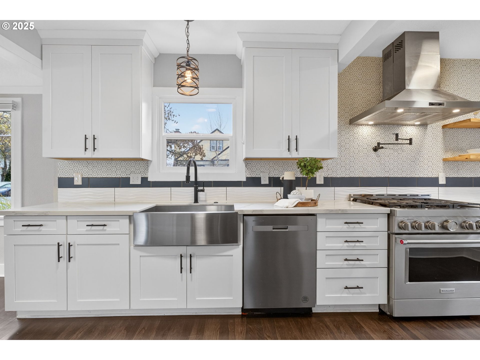 Fall in love with this charming English cottage situated on a corner lot in the heart of the Creston-Kenilworth neighborhood. This home has the perfect balance of original charm paired with stylish, modern updates. It lives large with a terrific floor plan, great flow, abundant natural light, and hardwood floors throughout. The inviting and spacious living room flows into the formal dining room. Fabulous kitchen with quartz counters, walk-in pantry, and stainless-steel appliances, including a 6 burner gas range with pot filler. Primary bedroom and full bathroom on the main level. Two generously sized bedrooms on the upper level and another bedroom and full bath on the lower level. Additionally, the lower level offers a large, versatile bonus room. The finished basement has many potential uses with its separate entrance. Private, fully fenced backyard. Updated electrical, plumbing, water main, and new roof in 2020. All appliances included. Centrally located with a desirable location- WalkScore: 91, BikeScore: 99. Don’t miss this opportunity to make this wonderful home yours!