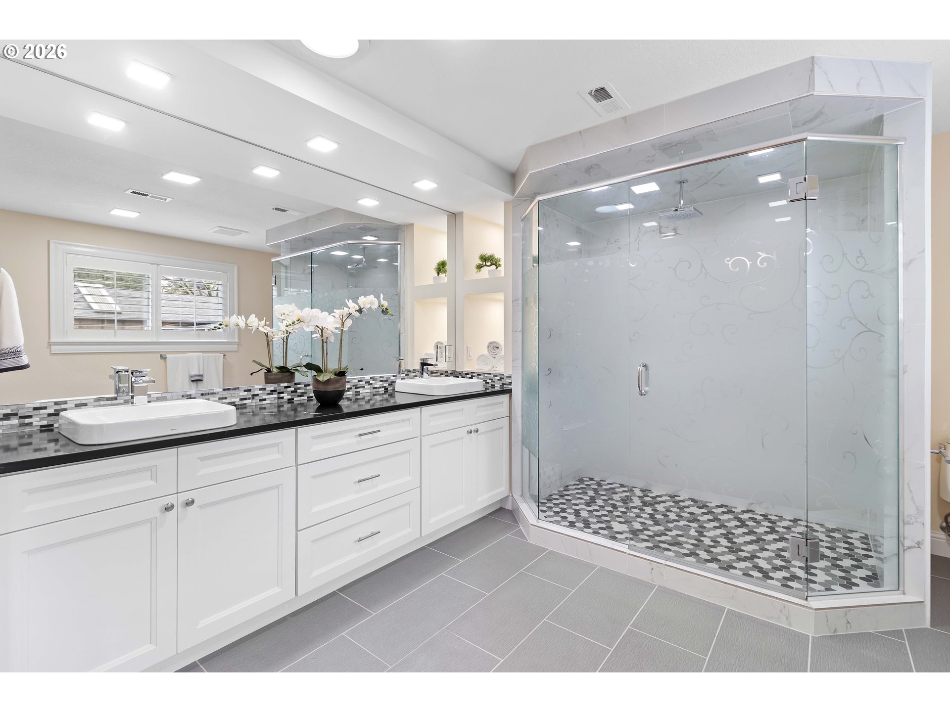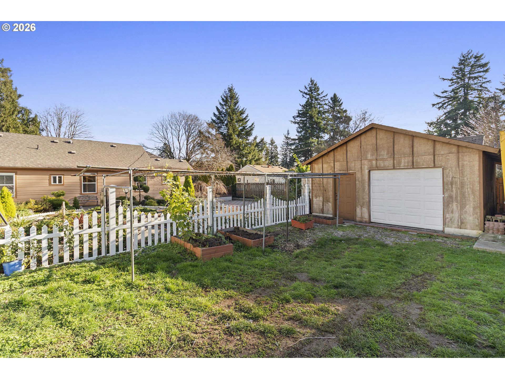 (503) 893-8874This well maintained and updated 1 level contemporary craftsman home is a rare find, with spacious rooms, wide accessible hallways, and grand spaces with 10' ceilings in the main living areas. It was fully remodeled and updated in 2007 with a 1400 S/F front addition that included the gourmet kitchen, main living area, office, laundry room and a deep 2+ car garage. Additional interior improvements include wood floors, custom shutters on all windows and a remodel of the primary bedroom bath and suite in 2019. The kitchen features abundant cherry cabinetry, granite counters with an eating island, gas convection stove, a sleek and powerful range hood, dual sinks and a microwave nook. The large, spa-like primary suite looks over the garden and offers a huge walk in shower with dual shower heads, dual sinks with quartz counters, and is currently open to the 4th bedroom for added space and flexibility. Gardeners will love the sunny, level .44 acre lot with raised beds, fruit trees and Zen meditation garden. Have hobbies or a business? The backyard has a detached garage/shop with 220 power, plus additional storage containers that offer incredible opportunity to pursue your goals and passions, or maybe even offer ADU potential? The yard is fully fenced and has a large, custom gate to allow for RV access/storage. An expansive back deck with garden view and spacious paved patio make this a fabulous place to entertain. The finished attached garage has high ceilings, epoxy floors, plug for back-up generator, and tall garage doors allow high vehicle/van access and room for your toys for work or play. If you have future development dreams, check with the City to find out lot division or cottage cluster possibilities on this R-7 lot. Call your agent to schedule a viewing today! [Home Energy Score = 4. HES Report at https://rpt.greenbuildingregistry.com/hes/OR10093363]