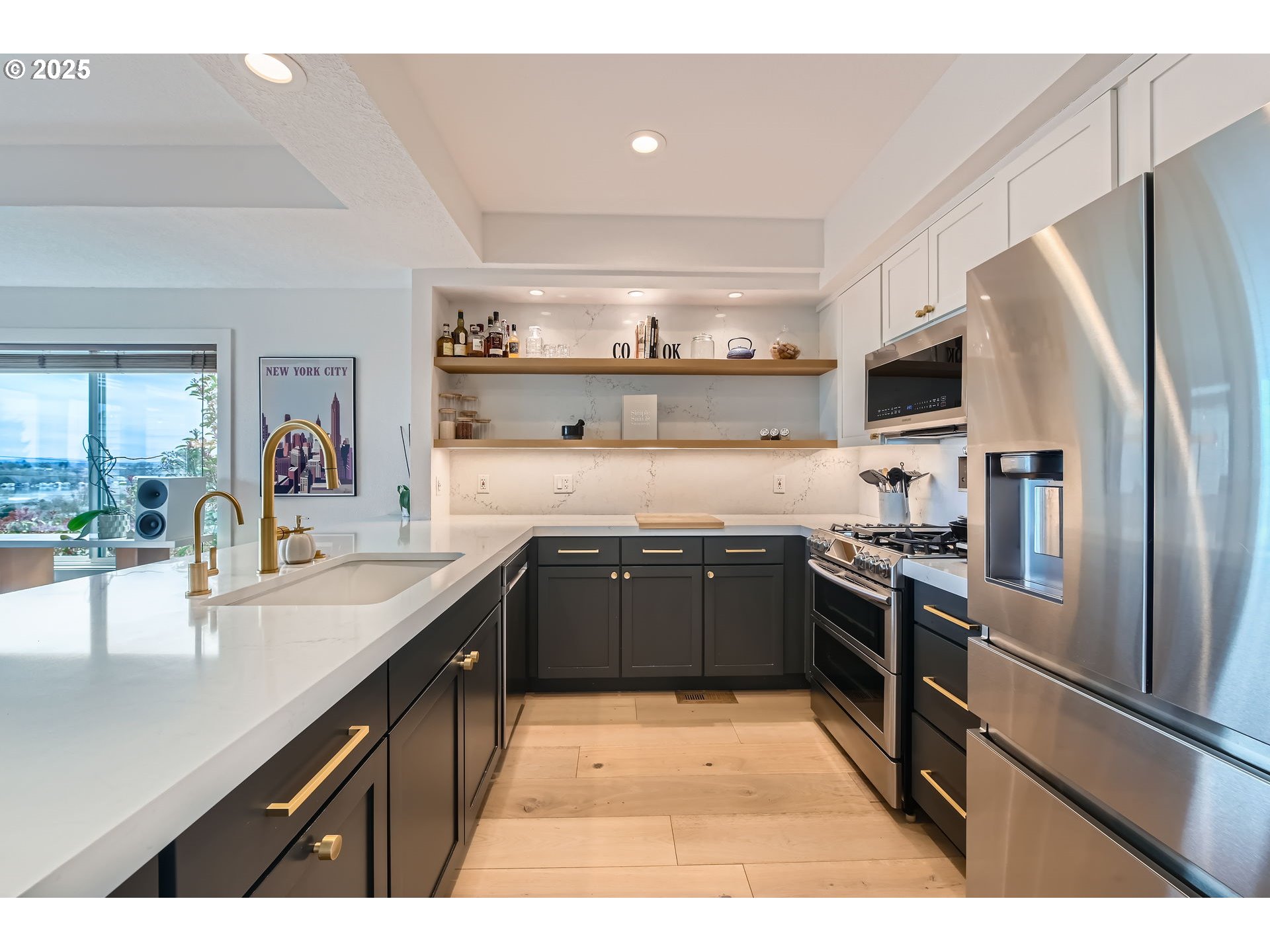John's Landing beauty with views (Mt Hood, river), all updated/upgraded and ready for its next owners! 3BD + 2.5BA + oversized 2-car garage + XXL storage space. Don't let the unassuming exterior fool you: this home lives big with luxury finishes AND incredible storage and parking (must see in person to truly appreciate all that it offers!). This end unit home has privacy and territorial views from the living space and bedrooms! No details left out: wide plank engineered floors, custom cabinetry and built-ins throughout, 2 gas fireplaces, 3cm quartz kitchen countertops, walk in pantry with organizers, steam showers, bathrooms with heated floors, central vac, A/C, air purifier... The outdoor deck is perfect to relax as you look out to the fantastic views of Mt Hood and the river. Extra deep and oversize 2-car tandem garage with EV charger and so much room for storage or toys (motorcycle, bikes...)! Additional extra deep and extra wide storage room under the house with tall ceilings and concrete floor. Ask your agent for the updates & upgrades details and schedule an in-person tour. Fridge, washer, dryer are included. Low HOA dues ($950 / year). Enjoy all that John's Landing offers: shops, restaurants (Elephant's Deli, St Honore etc...), Willamette Park (26 acres with boat docks and ramps, soccer field, tennis courts, picnic table, playground, trails, dog off-leash park...). It is also convenient to downtown, Lake Oswego, OHSU etc... Amazing home in an amazing neighborhood! [Home Energy Score = 7. HES Report at https://rpt.greenbuildingregistry.com/hes/OR10067247]