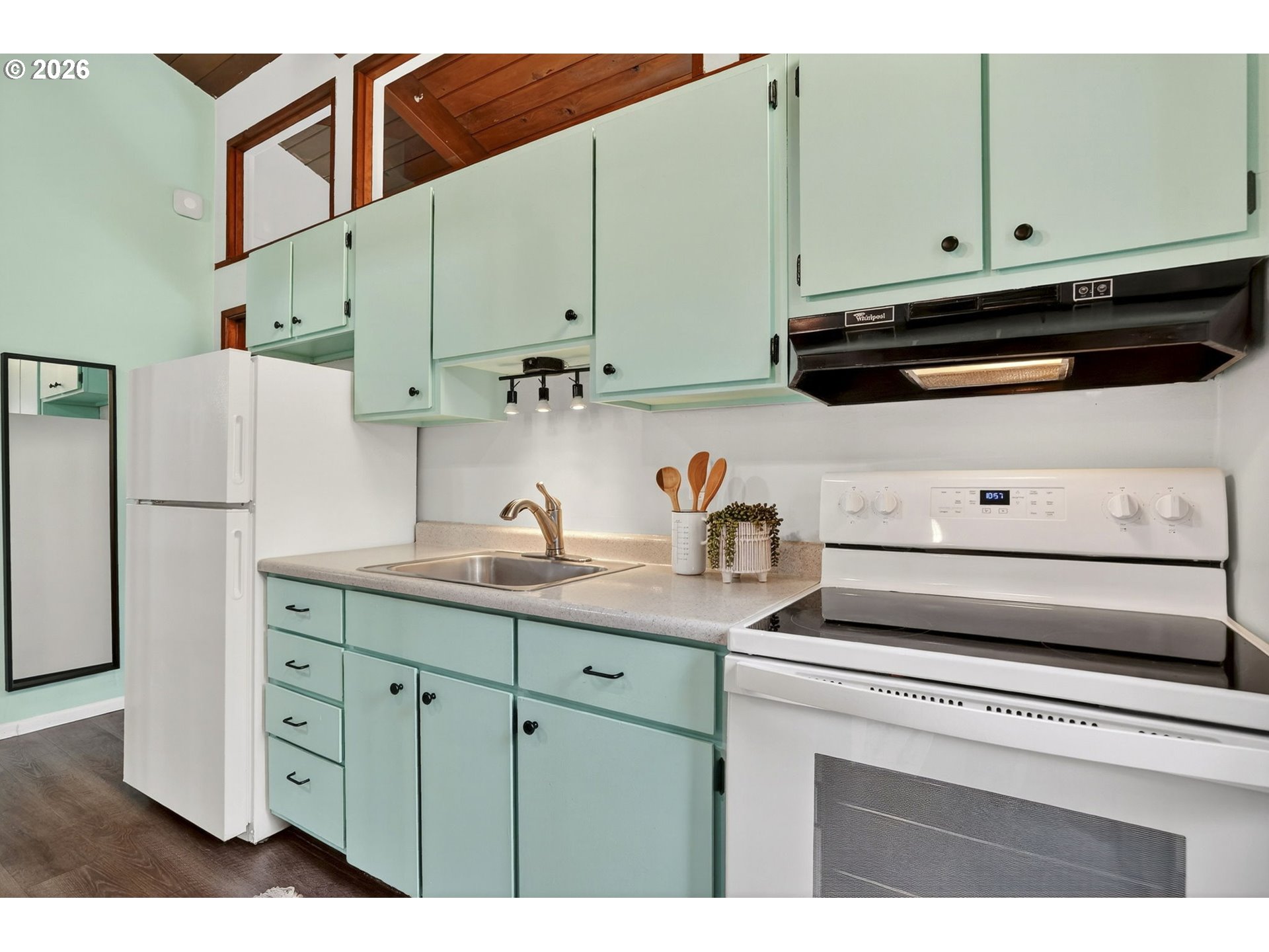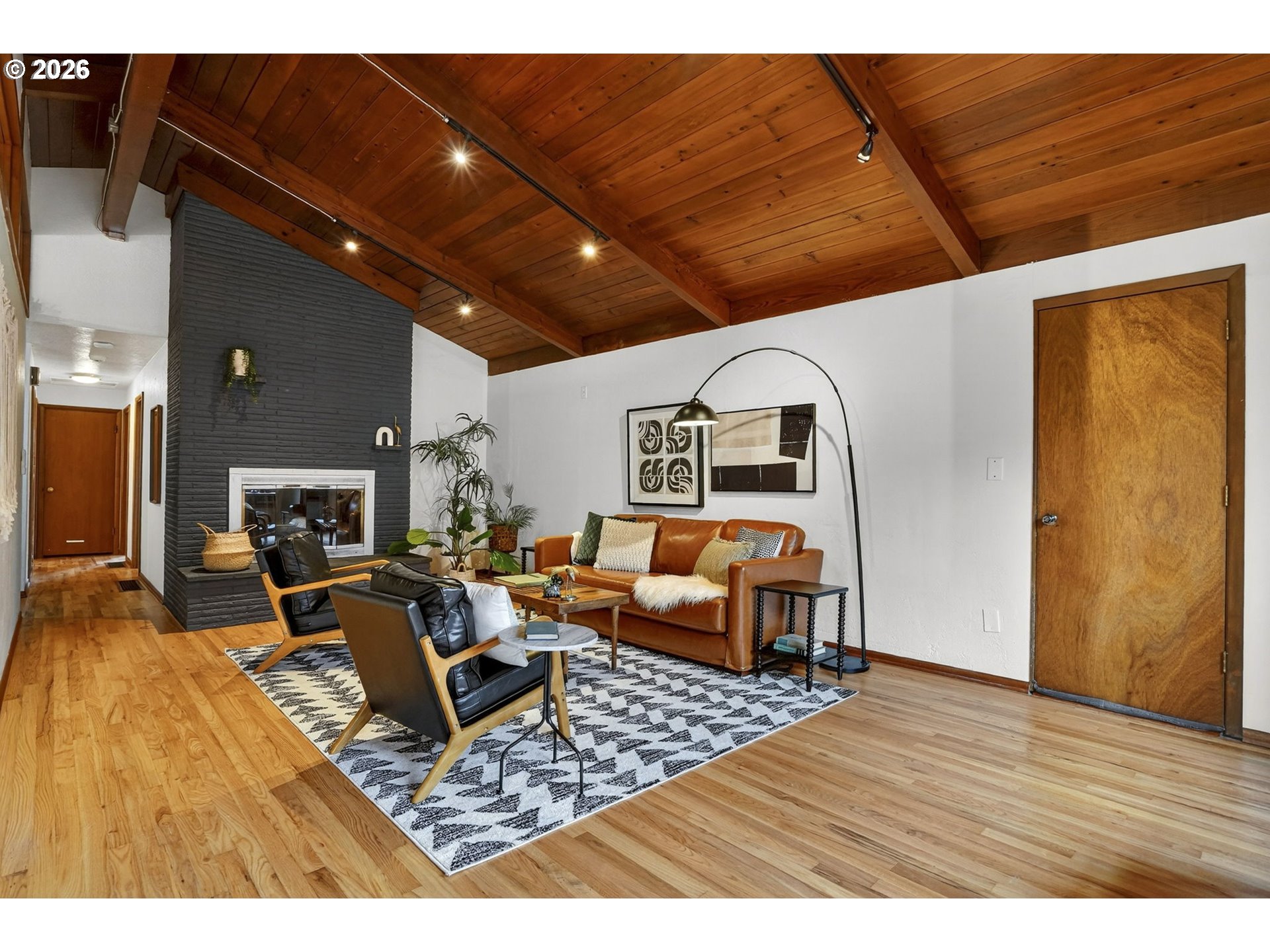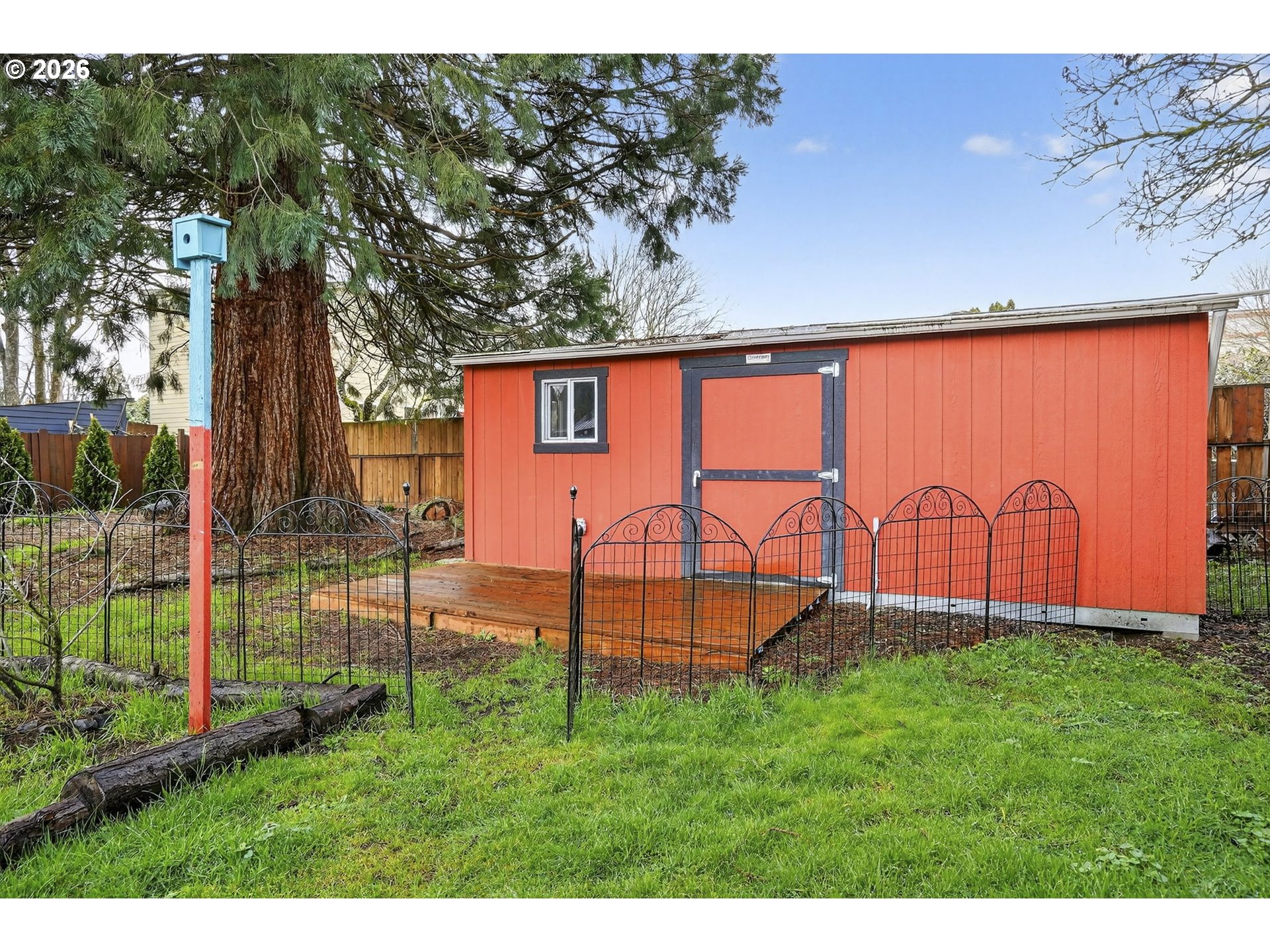 This home might look modest from the front but come inside and appreciate a time when architecture started to blend the classic ranch with the trendy midcentury modern appeal of lofted ceilings. Single level living at it's best with a rare attached 1-bedroom, 1-bath apartment offering incredible flexibility. Live as a 4-bedroom, 2-bath or separate into a 3-bedroom home with a private 1/1—ideal for guests, multigenerational living, or potential rental income. Major updates include new solar panels (2025), roof replacement (2020), updated plumbing and electrical, ductless mini splits installed (2021) in every room making heating and cooling easily controlled throughout the house, all new Milgard windows installed in 2011, and fresh interior paint in main home. A truly energy efficient home that is 100% electric! Enjoy comfort and ease in the roomy living room with a wood burning fireplace. Easy access to the backyard entertainer's or gardeners paradise through multiple sliding glass doors, all three installed in 2015.The nearly double lot features a beautiful mature sequoia tree, three patios added by the sellers, and a large backyard shed. Covered RV or boat parking out front provides added versatility.Located just one block from Arleta Elementary and walkable to the vibrant Foster-Powell corridor with local restaurants, coffee, parks, and community amenities nearby. Just a half mile to the completely renovated and beloved Mt. Scott Community Center. A rare opportunity for space, flexibility, and long-term potential in SE Portland. [Home Energy Score = 10. HES Report at https://rpt.greenbuildingregistry.com/hes/OR10245126]