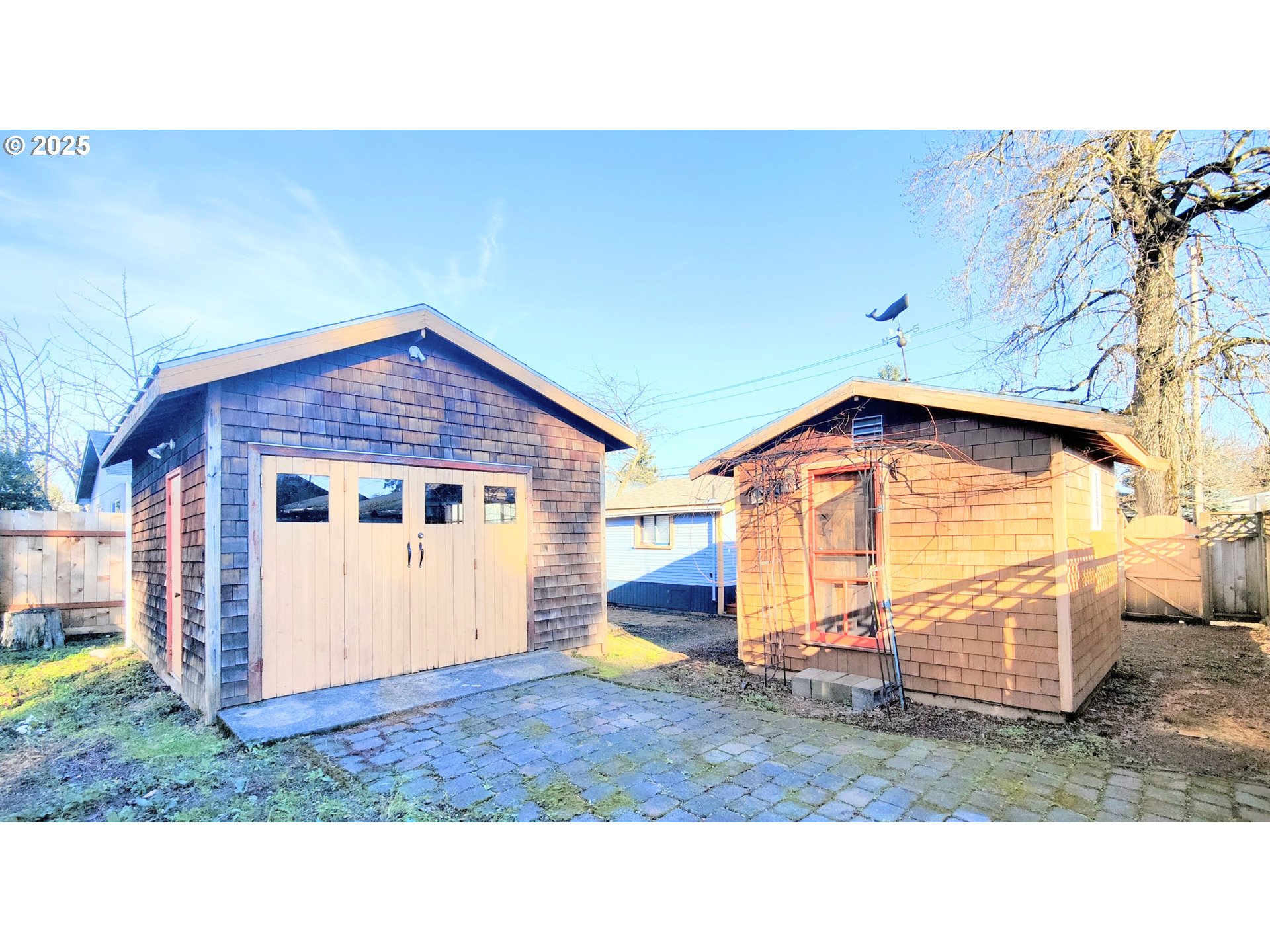 Vacant! Ranch home in nice neighborhood on corner lot. Brand-new roof in 2024. Oversized, insulated garage with hobby area offers flexible space. Gas fireplace/stove provides cozy winter warmth. Front porch deck for relaxation. Large, fenced backyard with insulated studio and front yard with rooms for gardening and entertaining. Plenty of parking for guests. 0.09-acre lot, zoned RM2, offers great possibilities and potential for adding an additional unit, subject to buyer’s own due diligence. Good location with easy access to library, shopping, and dining. Enjoy exploring this Walker’s and Biker’s Paradise neighborhood with Walk and Bike Scores of 93. Minutes to beautiful Lents Park, MT. Scott Park & Essex Park. View this home today!