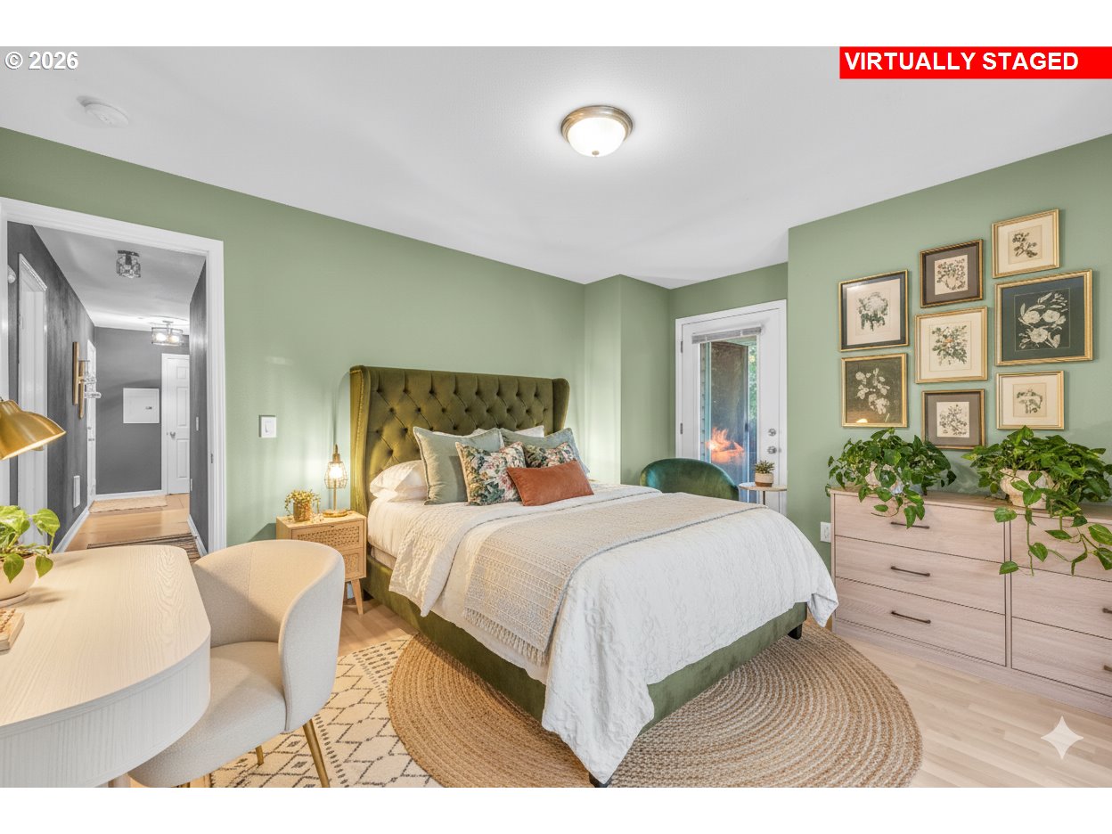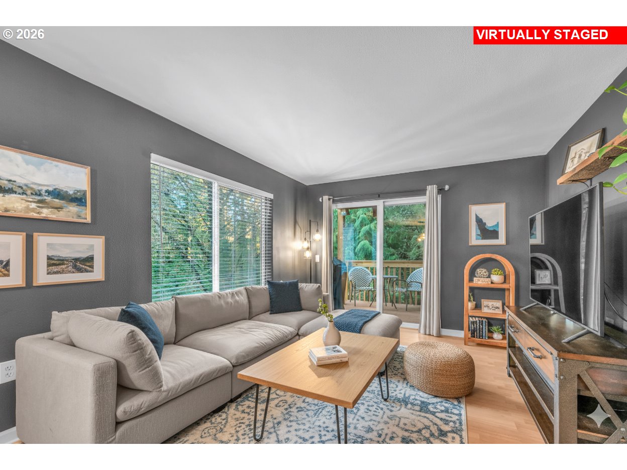 Light-filled upper-floor condo featuring laminate flooring, fresh interior paint, updated bathrooms, and newer stainless appliances. Enjoy indoor-outdoor living with an upgraded patio plus a private deck/balcony overlooking serene greenspace—ideal for summer BBQs and relaxing evenings.This 2 bedroom, 2 bathroom condo offers spacious bedrooms with walk-in closets, an open-concept kitchen with pantry, and all appliances included (including washer & dryer). Extra perks include locked storage, deeded carport parking, and a prime location near Multnomah Village and Gabriel Park, with easy access to parks, shops, dining, and trails.