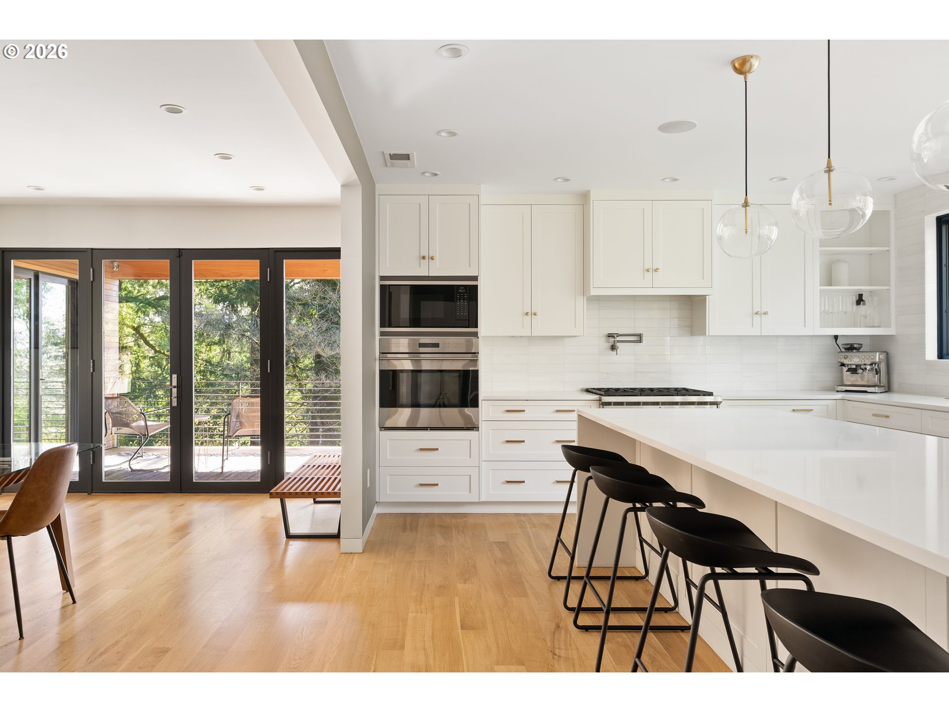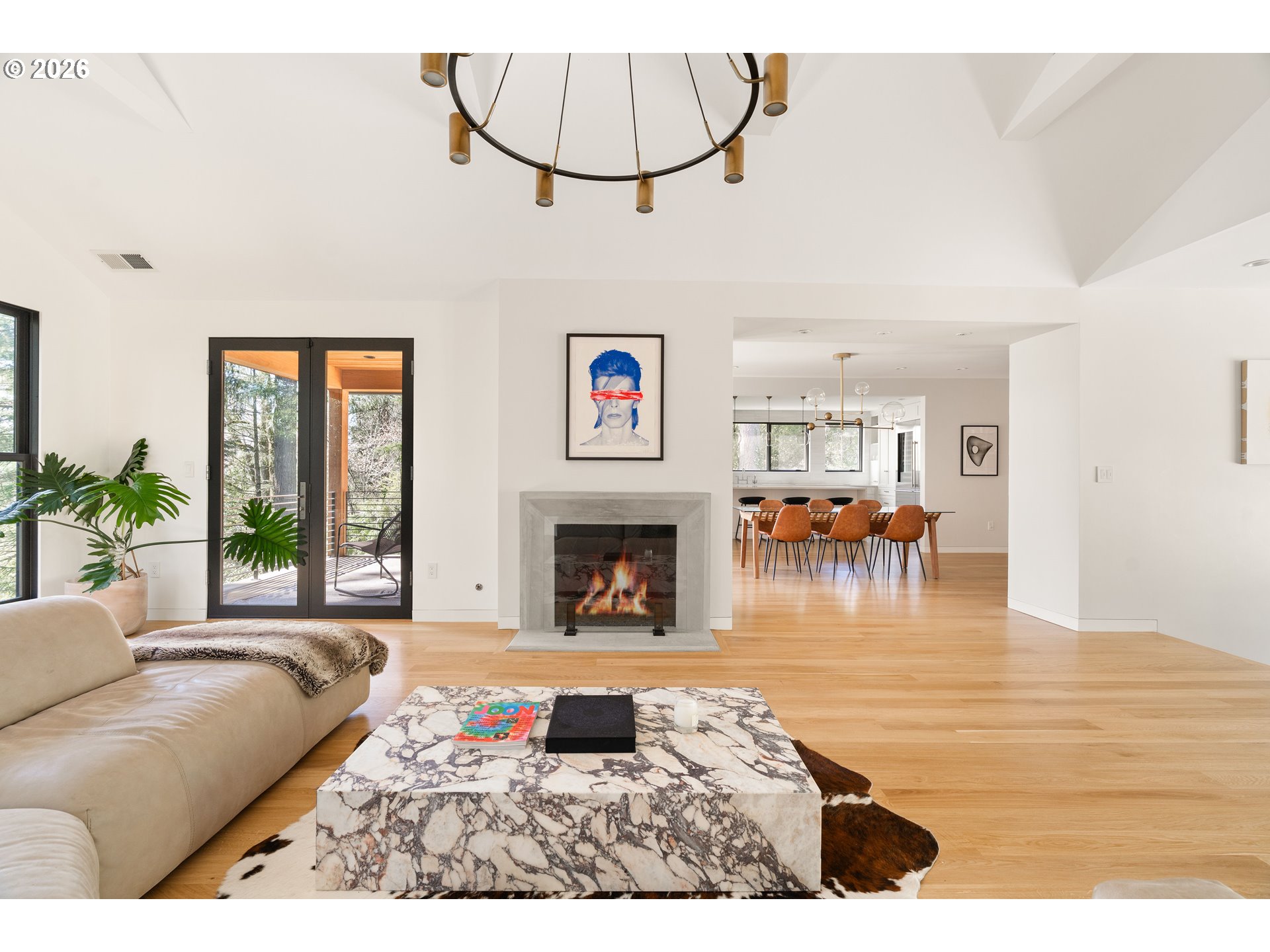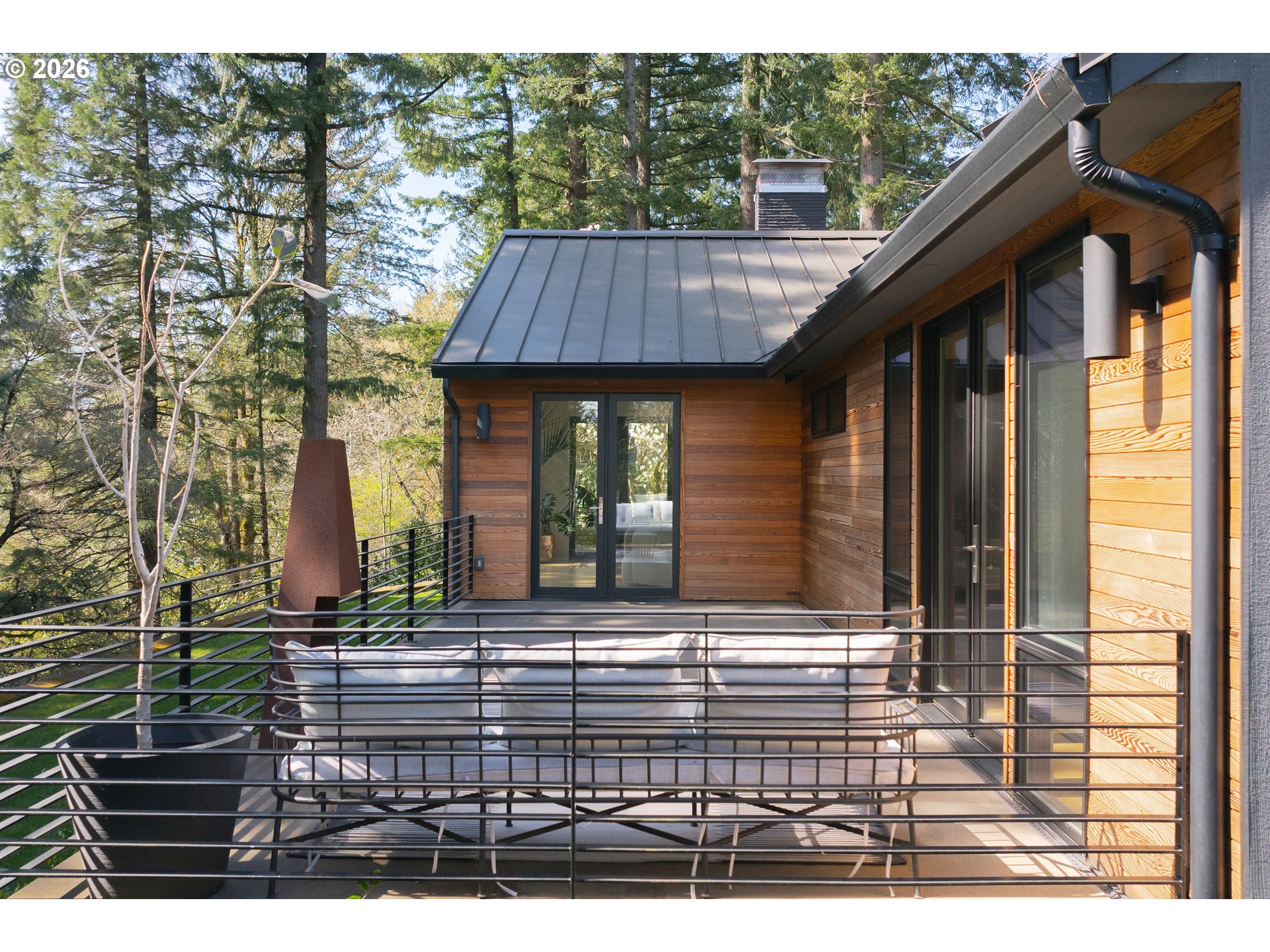(503) 893-8874Originally designed in 1939 by noted Portland architect Roscoe Hemenway, this home has been reinvented by local designer Benjamin Silver who transformed it into a breathtaking modern interpretation of Hemenway's original vision. The living spaces are defined by a bright, light,airy ambiance beneath vaulted open beamed ceilings while natural wood flooring flows throughout. The living room with its centered picture window that bathes the space in natural light and connects the inhabitants with the forested lot beyond while two sets of French doors open to outdoor lounge areas.The adjacent dining room is open to the kitchen and features glass doors that connect to a covered patio. A bright and spacious chef's kitchen is filled with high-end touches and appliances including a Wolf gas range and Sub-Zero refrigerator. A central quartz wrapped island provides prep workspace and seating for casual meals.The main floor primary suite features vaulted ceilings and French doors leading out to an outdoor patio.The luxe ensuite bathroom has a custom vanity,heated tile flooring and the suite is complete with a large walk-in closet. A modern wood staircase leads to the lower level featuring a second living room with a gas fireplace and large windows. This level also includes two bedrooms with a full bathroom,laundry room,office/flex space&custom wine storage.Throughout the home,high-end details combine with detailed craftsmanship,designer lighting,tankless toilets&wood flooring. Beautiful natural wood built-in cabinetry provides ample storage, and the main level powder room features marble tile and a custom concrete counter.The exterior is wrapped in beautiful cedar and a durable metal roof.Custom hardscaping blends seamlessly into the natural contours of the property in a forested setting with open yard space, providing a private oasis. This property is a rare find in its celebrated architectural history while offering modern Dwell-worthy, elevated living. [Home Energy Score = 9. HES Report at https://rpt.greenbuildingregistry.com/hes/OR10098292]