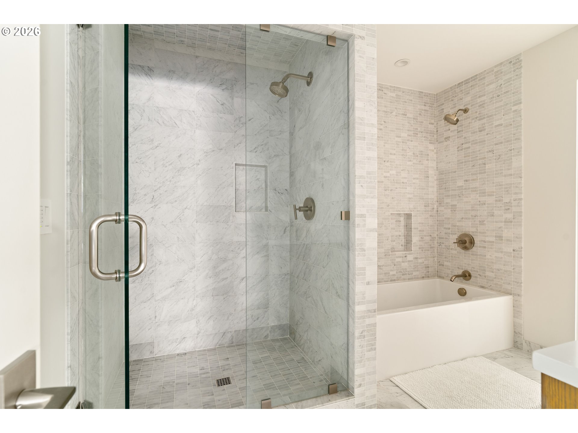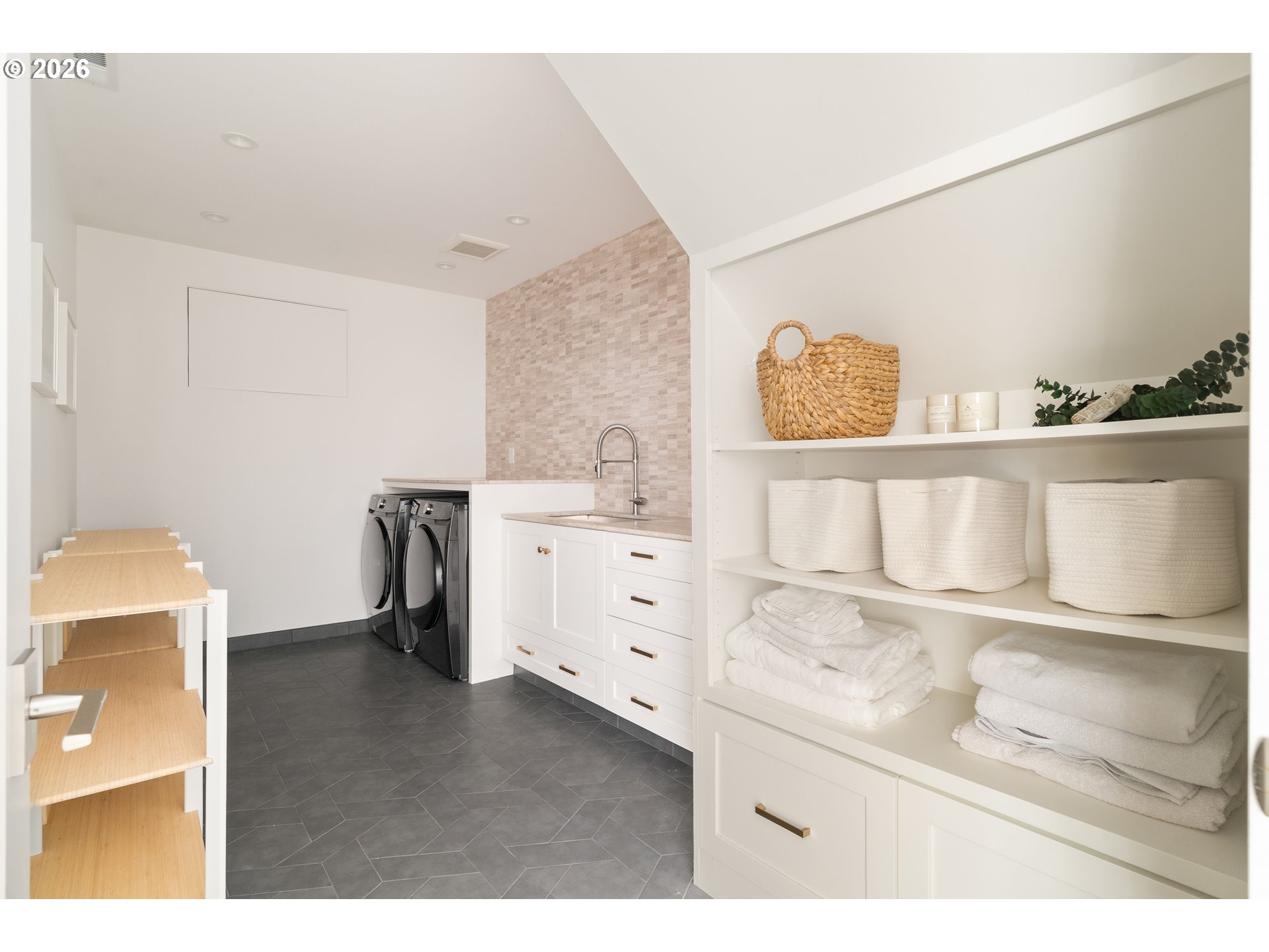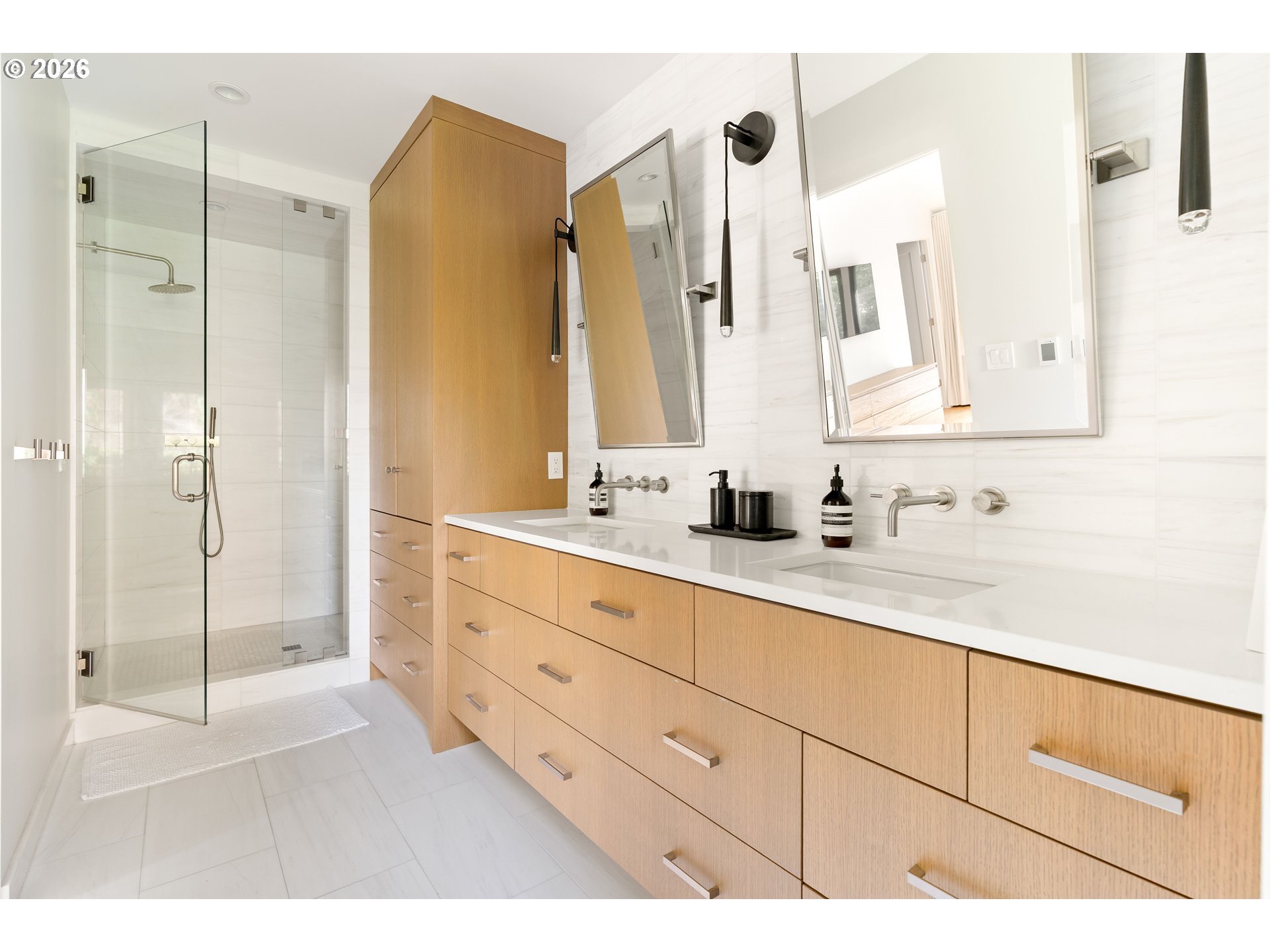 (503) 893-8874Originally designed in 1939 by noted Portland architect Roscoe Hemenway, this home has been reinvented by local designer Benjamin Silver who transformed it into a breathtaking modern interpretation of Hemenway's original vision. The living spaces are defined by a bright, light,airy ambiance beneath vaulted open beamed ceilings while natural wood flooring flows throughout. The living room with its centered picture window that bathes the space in natural light and connects the inhabitants with the forested lot beyond while two sets of French doors open to outdoor lounge areas.The adjacent dining room is open to the kitchen and features glass doors that connect to a covered patio. A bright and spacious chef's kitchen is filled with high-end touches and appliances including a Wolf gas range and Sub-Zero refrigerator. A central quartz wrapped island provides prep workspace and seating for casual meals.The main floor primary suite features vaulted ceilings and French doors leading out to an outdoor patio.The luxe ensuite bathroom has a custom vanity,heated tile flooring and the suite is complete with a large walk-in closet. A modern wood staircase leads to the lower level featuring a second living room with a gas fireplace and large windows. This level also includes two bedrooms with a full bathroom,laundry room,office/flex space&custom wine storage.Throughout the home,high-end details combine with detailed craftsmanship,designer lighting,tankless toilets&wood flooring. Beautiful natural wood built-in cabinetry provides ample storage, and the main level powder room features marble tile and a custom concrete counter.The exterior is wrapped in beautiful cedar and a durable metal roof.Custom hardscaping blends seamlessly into the natural contours of the property in a forested setting with open yard space, providing a private oasis. This property is a rare find in its celebrated architectural history while offering modern Dwell-worthy, elevated living. [Home Energy Score = 9. HES Report at https://rpt.greenbuildingregistry.com/hes/OR10098292]