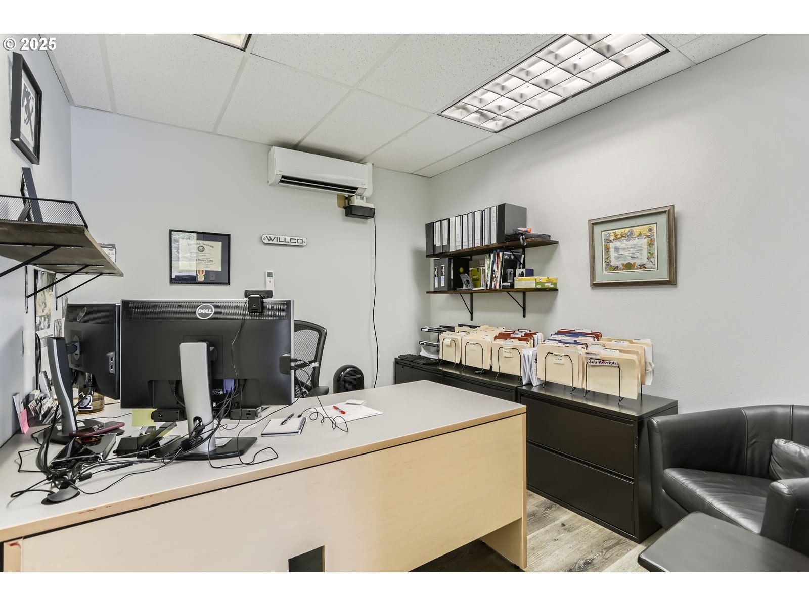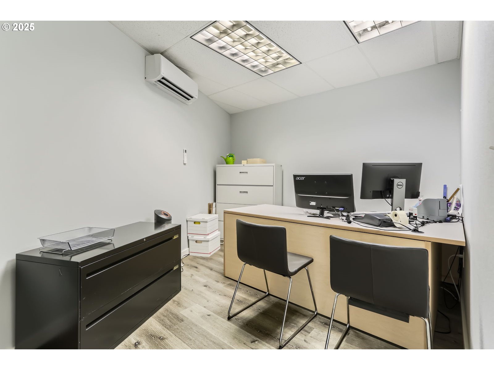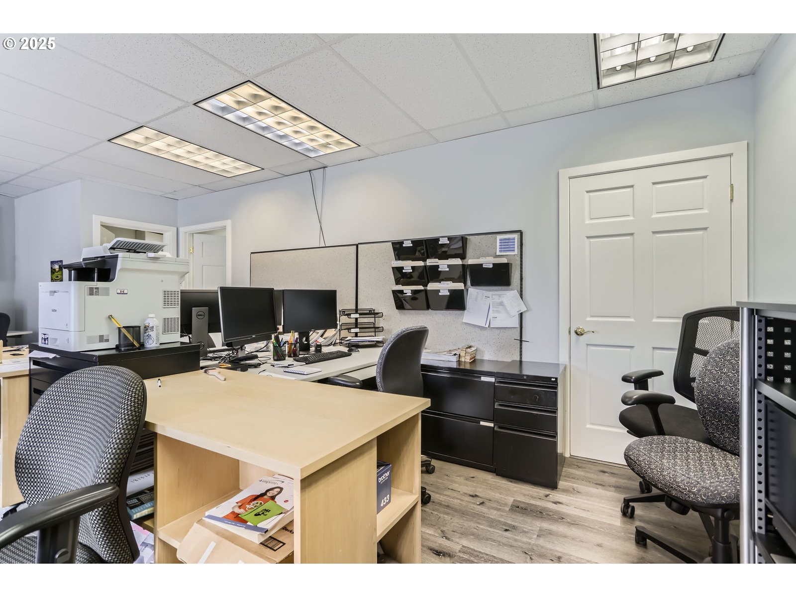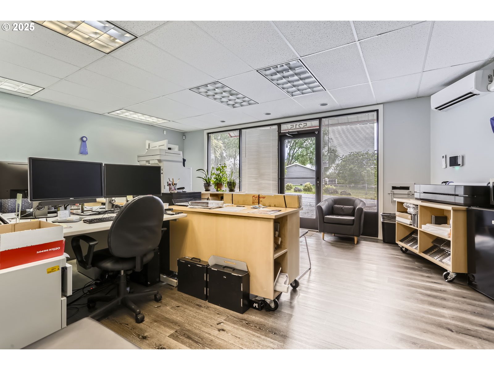 Exceptional Flex Space with Versatile Layout! Discover a well-maintained and thoughtfully updated property offering multiple use options. Currently configured for a single tenant, the space includes two private offices, a spacious reception area, and a warehouse. With two separate front entrances and a dividing wall, this property easily accommodates dual occupancy—ideal for an owner-user to occupy one side while leasing out the other. Features include five striped parking spaces, HVAC, and fresh flooring and paint. Please do not approach the property, or tenants. Contact your broker for further details and to schedule a showing.