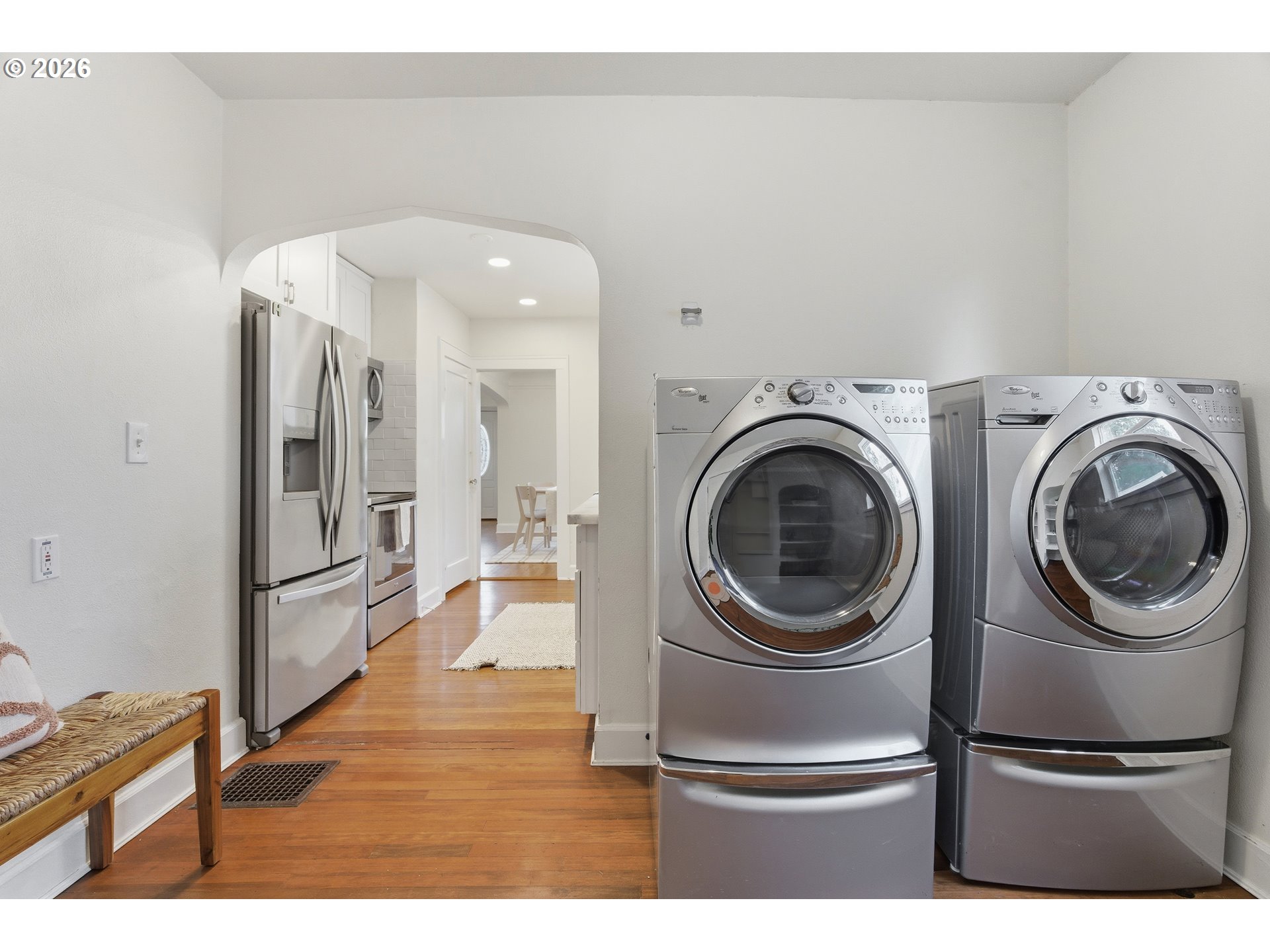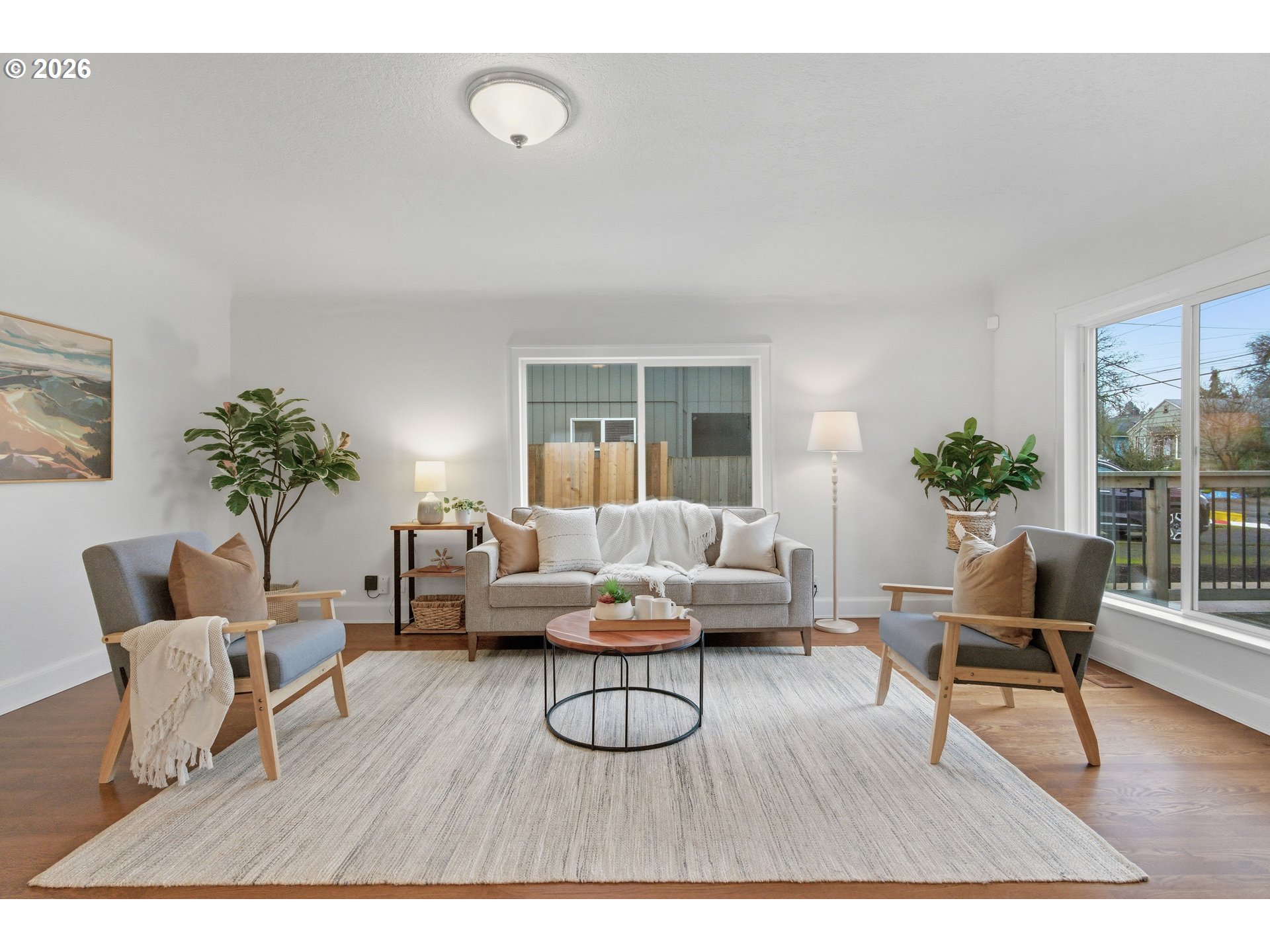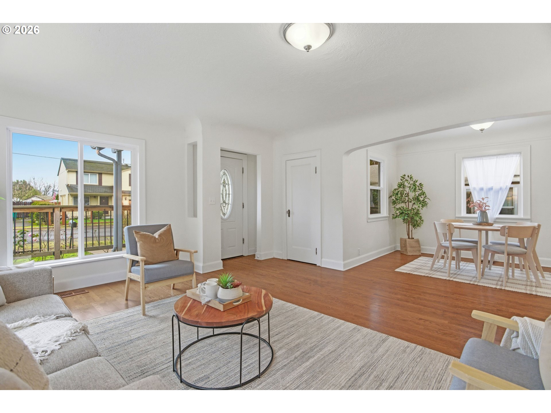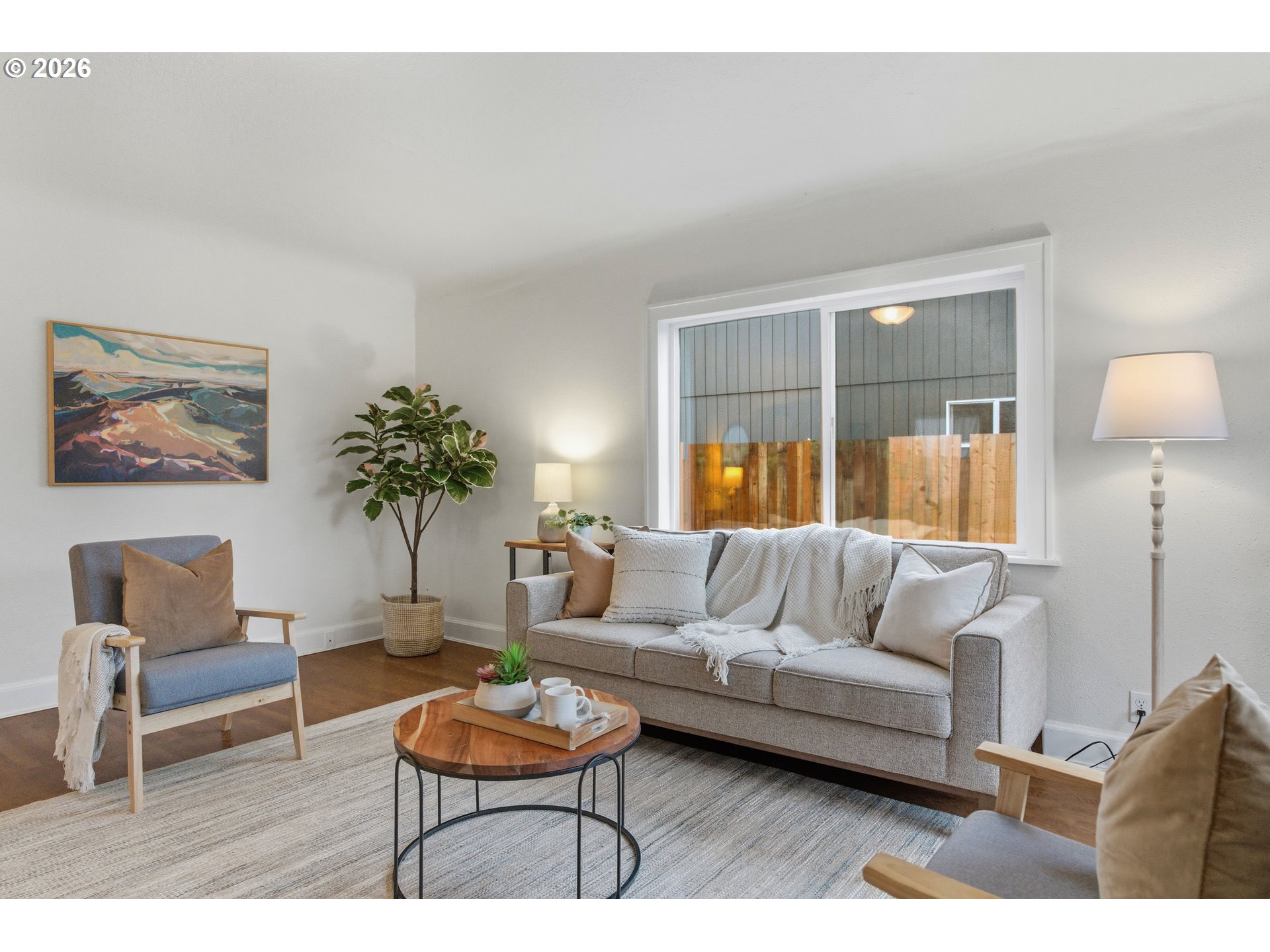 Light-filled and thoughtfully remodeled, this charming Portland bungalow offers a flexible floor plan with potential for additional living or rental options. Step inside the front door and be greeted with light-filled living and dining spaces. The beautifully updated kitchen and adjoining laundry/mudroom, add smart functionality and daily convenience. The superpower of this home is its versatility. The main level features a comfortable bedroom, full bath, plus a second bedroom (accessed through the bathroom) that works well as a walk-in closet, nursery, home office, or creative studio. Upstairs, a cozy retreat with sitting area and separate bedroom create an ideal kid's room, playroom, or quiet hideaway. The full lower level expands your options with a second living area, full bath, and a potential bedroom (currently non-conforming, with opportunity to add an egress window), plus a large storage area. With a separate entrance, this space offers exciting options for multi-generational living, guest quarters, or future ADU. Enjoy a welcoming covered front porch and a spacious backyard ready for relaxing, gardening, or outdoor gatherings. Conveniently located on a quiet street, near the newly reimagined Errol Heights Park, Woodstock business district, Tri-Met, and easy access to Sellwood and downtown. [Home Energy Score = 6. HES Report at https://rpt.greenbuildingregistry.com/hes/OR10029376]