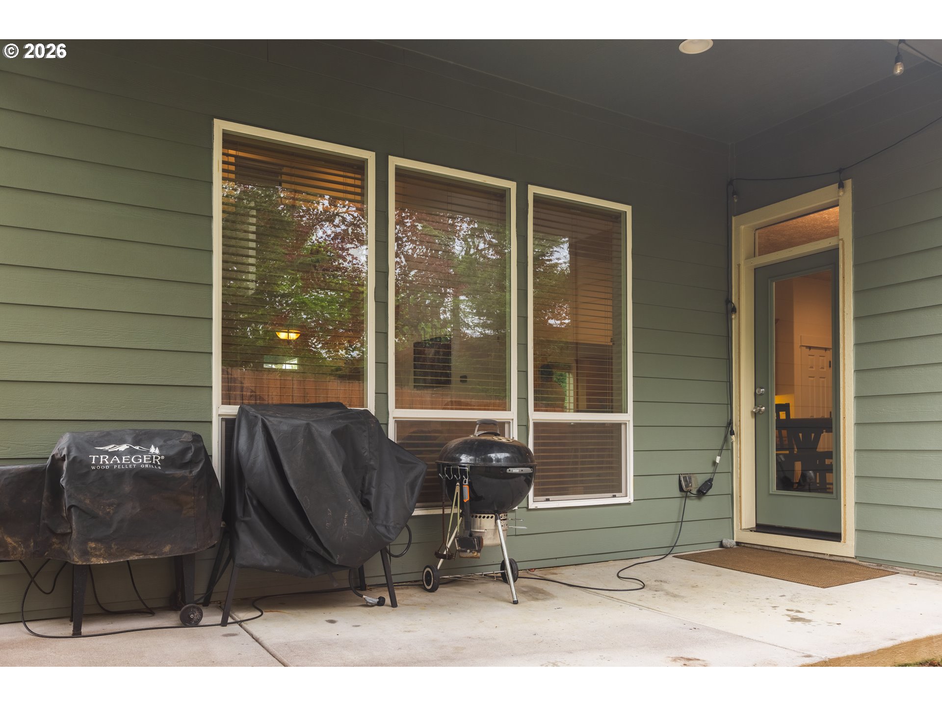 **Open house Sat 5/2 from 11-1pm**. Tucked away at the end of a quiet dead-end street, this beautifully maintained 2007 home offers comfort, space, and privacy. Featuring 3 bedrooms and 2.5 baths, the home welcomes you with vaulted ceilings that create a bright, open feel throughout. The spacious great room seamlessly connects the living area, dining space, and kitchen—perfect for both everyday living and entertaining. The kitchen is well-equipped with stainless steel appliances, a large island, ample counter space, and a pantry for added storage. A sliding door leads to a covered porch and backyard, ideal for outdoor dining and relaxation.The primary suite is conveniently located on the main level and includes direct access to a private patio, creating a peaceful retreat. Upstairs, you’ll find two additional bedrooms and a full bath, offering flexibility for guests, work-from-home space, or hobbies. Additional features include a 220V outlet in the garage, EV charger readiness, and a convenient outdoor tool shed. Thoughtfully cared for and tastefully updated, this home is move-in ready and designed for easy living in a serene setting.