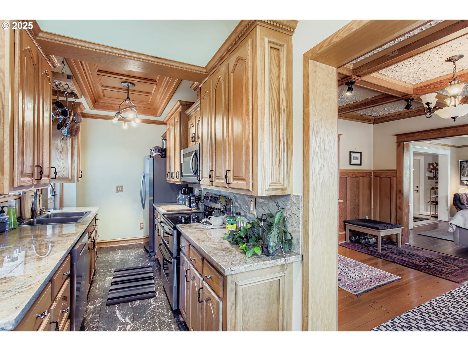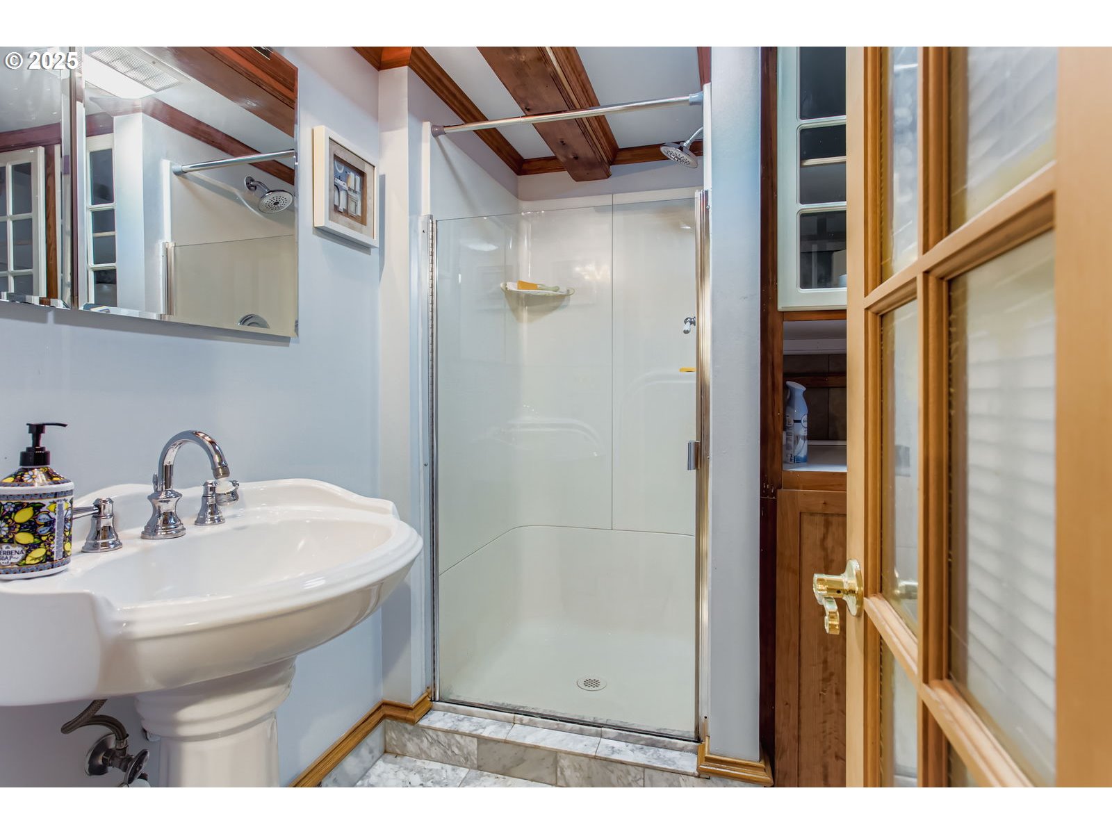 Welcome to Your Beautifully Renovated Dream Home just minutes away from Alberta Art District, shops and restaurants. This appealingly restored duplex offers the perfect blend of privacy, charm, and modern convenience. Configured as a flexible duplex, this home is ideal for multi-generational living, rental income, or use as a spacious single-family residence. Reclaimed wood trim, custom cabinetry, and designer finishes throughout reflect thoughtful craftsmanship and high-end design. Kitchens feature elegant granite countertops and handcrafted cabinetry. The finished attic on the upper unit #2 serves as versatile bonus area with a mini split system is perfect for a home office, creative studio, workout area or walk-in wardrobe. Outdoor spaces are just as impressive. A welcoming front porch with charming classic curb appeal with a huge manicured level lawn. The backyard offers a dual purpose brick rotisserie BBQ. Low-maintenance concrete landscaping ensures easy upkeep. The detached 2-car garage includes built-in storage, a washer/dryer, and a pellet stove—plus there are additional parking for vehicles. This home is a rare fusion of timeless Old Portland character and fresh, modern updates—designed for comfortable, stylish living. Note: The separate tiny home located in the back is on a 30 foot trailer can be hooked up to a truck and moved away. It is not included in the sale but is available for separate purchase. Exclusions: flat heater hanging on the fireplace mantel in unit #2/5307, stacked rocks in the front lawn, washer and dryer in the garage.