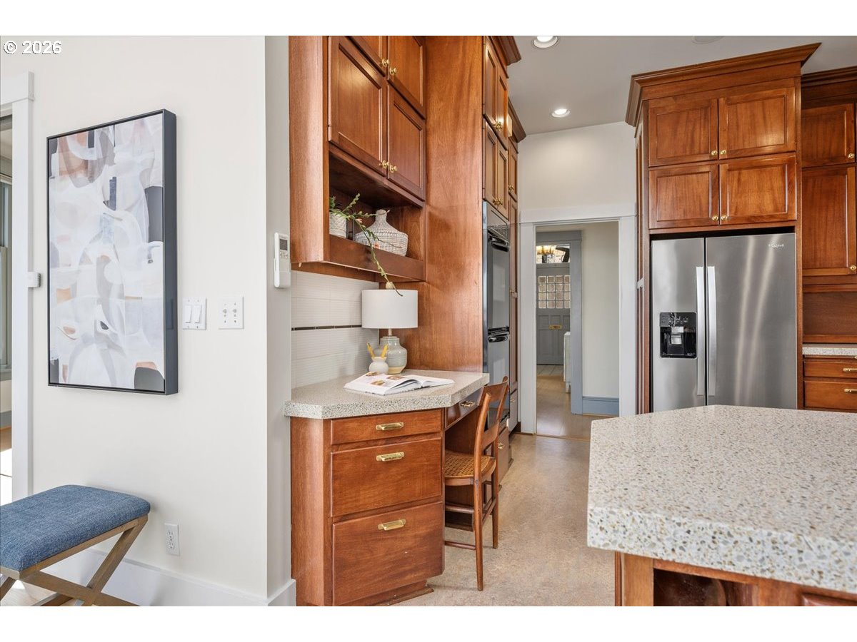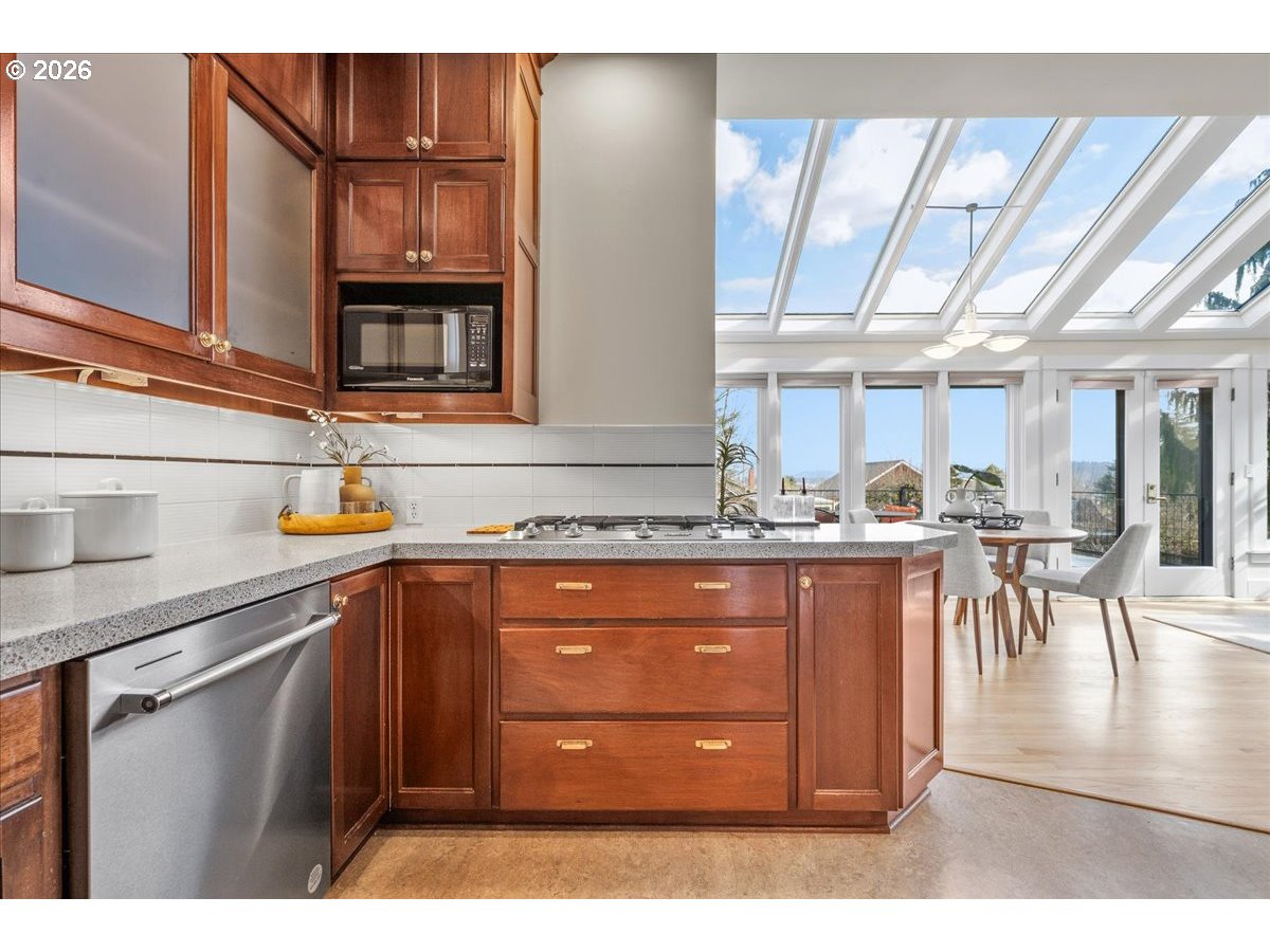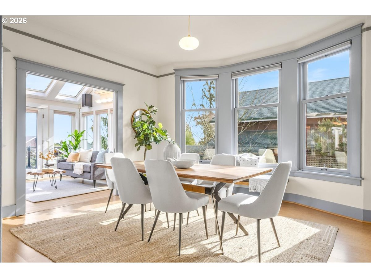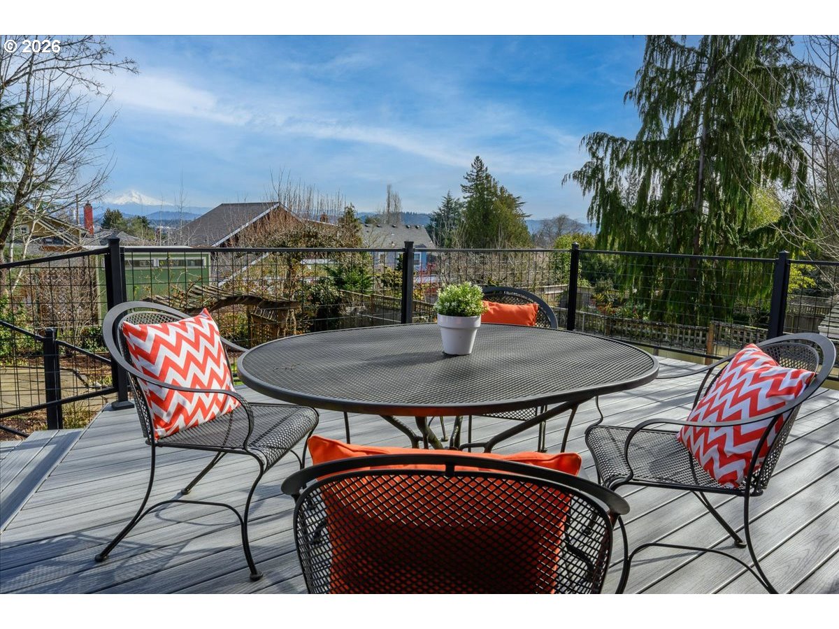 (503) 893-8874Nestled just up the street from beloved Mt. Tabor Park, this home offers a truly special place to call home. Enjoy sweeping views, including majestic Mt. Hood to the east and picturesque territorial butte views to the south. The welcoming front porch, with views of Mt. Tabor, leads into a formal entry with French doors that open to a light-filled living room featuring a gas fireplace and generous windows. The living room flows into the formal dining room with a charming corner hutch and original pocket doors that open to the great room. In the great room, take in beautiful Mt. Hood sunrises and Alpine Glow sunsets while gathering, dining, or relaxing. Mt. Hood can also be enjoyed from the custom kitchen, offering granite countertops, quality appliances, and abundant cabinetry. French doors open to a spacious deck that extends the living area outdoors — perfect for morning coffee, summer dinners, or entertaining. The landscaped backyard provides a peaceful setting for gardening, relaxing, or play, and features an established organic garden with pear and apple trees, blackberries, raspberries, table grapes, a 5-zone irrigation system and rain chain fountain. The main level includes a full bath and a bedroom ideal for guests or a home office. Upstairs are three additional bedrooms and a full bath. The primary bedroom features a wall of windows framing Mt. Hood, custom cabinetry, and a walk-in closet. The second and third bedrooms offer ample closet space and lovely views of Mt. Tabor. The lower level adds flexibility with a large family room, office, laundry room, and half bath, along with a maker space/workshop, wine cellar, and secured under-deck storage. A peaceful retreat surrounded by natural beauty — just minutes from Mt. Tabor Park, blocks from award-winning Coquine, and close to the beloved shops, cafés, farmers market, and neighborhood favorites of Montavilla. [Home Energy Score = 2. HES Report at https://rpt.greenbuildingregistry.com/hes/OR10245225]