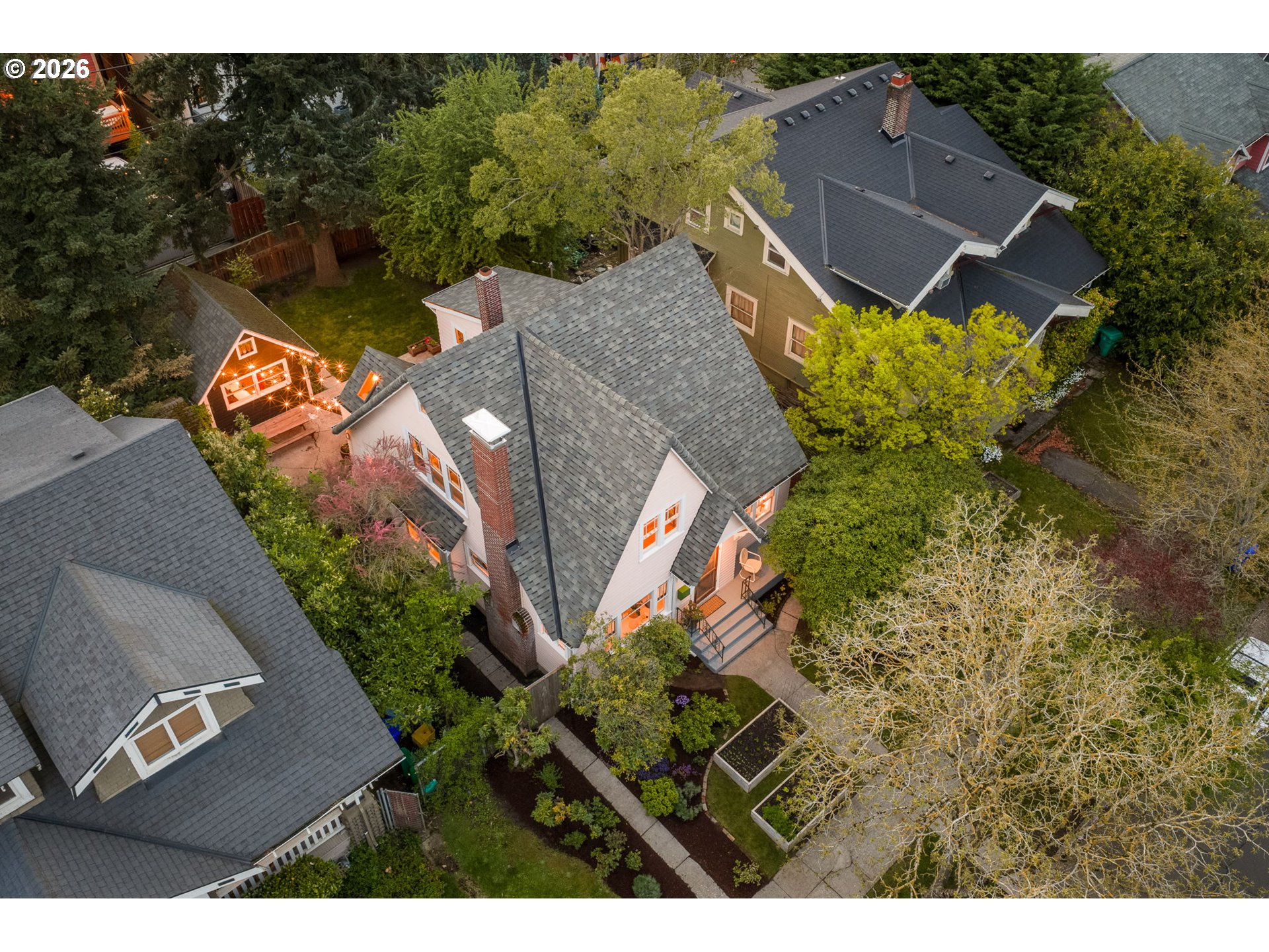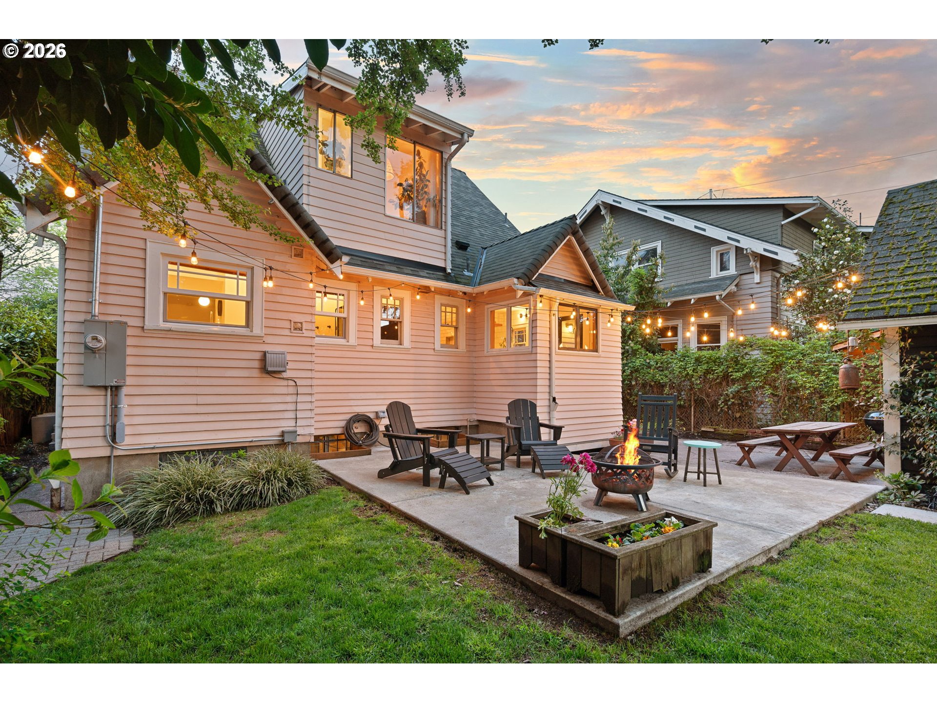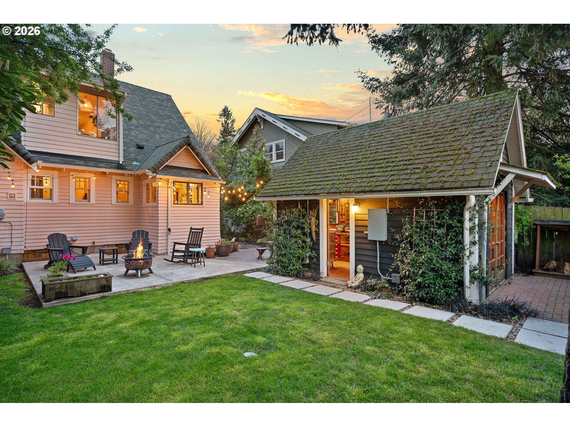 (503) 893-8874Kissed-pink Modern Tudor Fairytale that lives like a feeling. Sun-warmed & softly storybook from the curb, this home blends old-world charm & modern elegance in a way that feels both elevated & effortlessly inviting. Inside, light pours through every direction, filling generous open living spaces where coved ceilings/arched openings/built-ins, & thoughtful details create artful, effortless spaces. The living/dining/kitchen flow seamlessly together in a connected great room designed for everyday ease & memorable entertaining. A fireplace anchors the living room as a warm, grounding centerpiece. With 3 bedrooms, this home offers flexibility for rest/guests or work-from-home living. Upstairs, a cozy seating nook creates the sweetest corner for morning coffee, reading, or unwinding in the afternoon light. Above it all, a tucked-away loft offers a special retreat for yoga/creative inspiration or quiet escape when the moment calls. The entertainer’s kitchen brings people together with a Smeg refrigerator/skylight & Cedar + Moss fixtures—crafted for gathering, lingering, & celebration. This home feels like strawberry ice cream & chilled rosé at golden hour—sweet, relaxed, & celebratory. Evenings spill outdoors to multiple patios & layered garden spaces designed for connection. The yard is a private retreat with gardens/raised beds, & room to lounge/dine, & gather under the stars. A beautiful attached separate living quarters lives like a little sister to the main home—private, & complete with its own kitchen, bath, & entrance—ideal for income potential/multigenerational living & guests. A backyard studio adds even more possibility as an artist’s retreat/office or future ADU expansion, equipped with power & plumbing. Recent updates include a newer heat pump & roof/restored first-floor windows/rebuilt chimney/partial re-plumbing. Stroll to shopping, the Williams & Mississippi corridors, Pensisula Park & shopping. Life here feels slow, intentional, & beautifully lived-in. [Home Energy Score = 4. HES Report at https://rpt.greenbuildingregistry.com/hes/OR10189060]