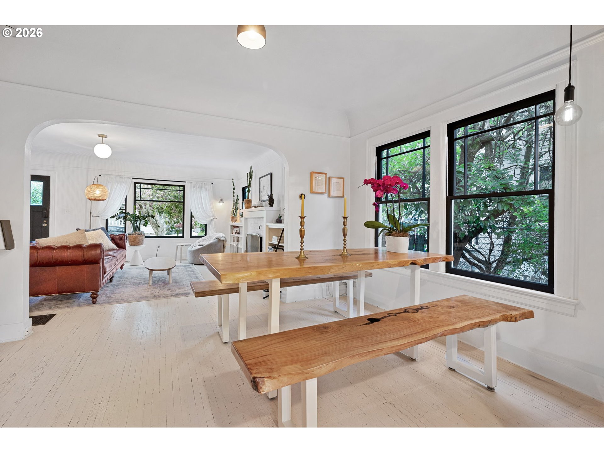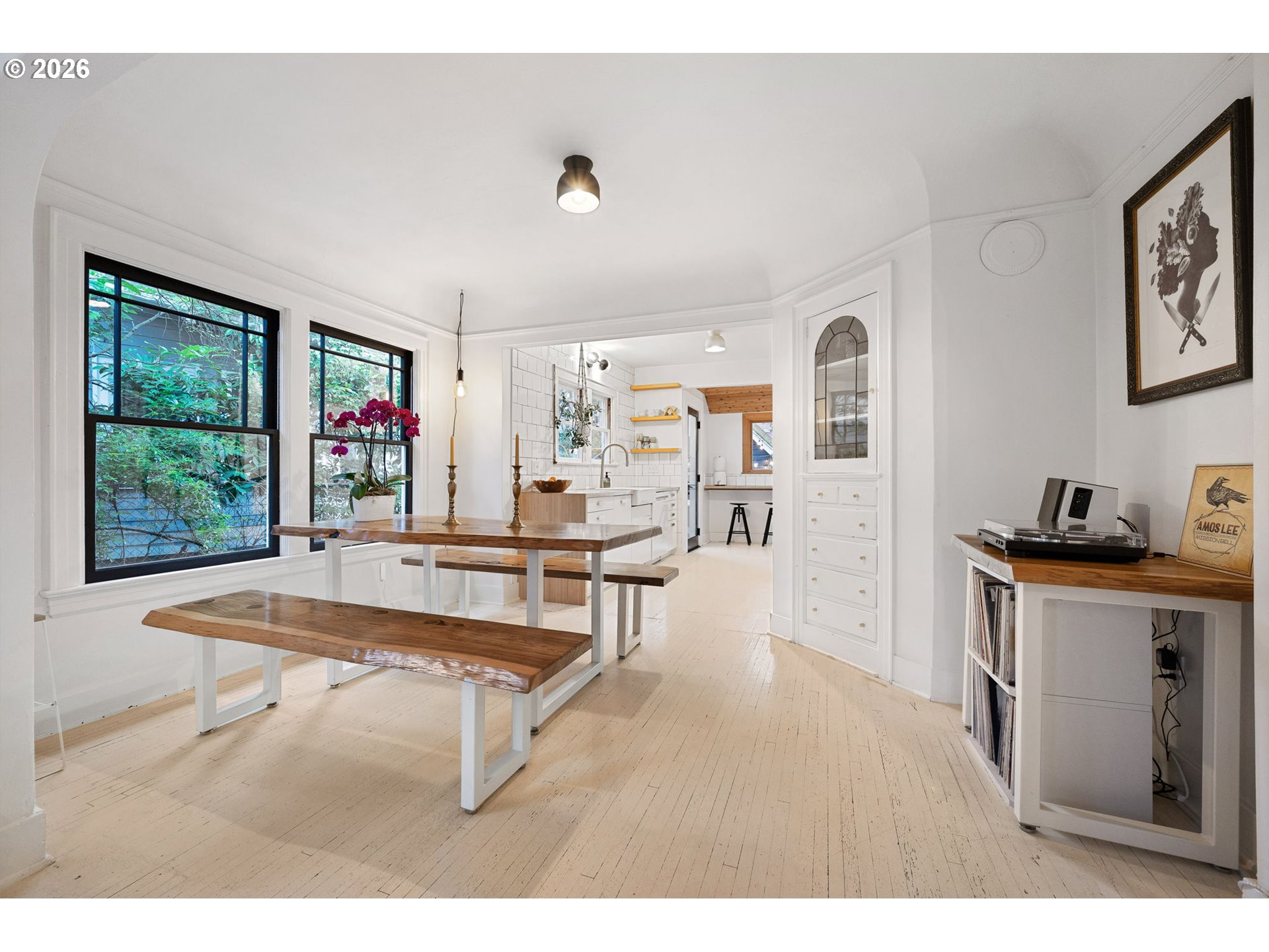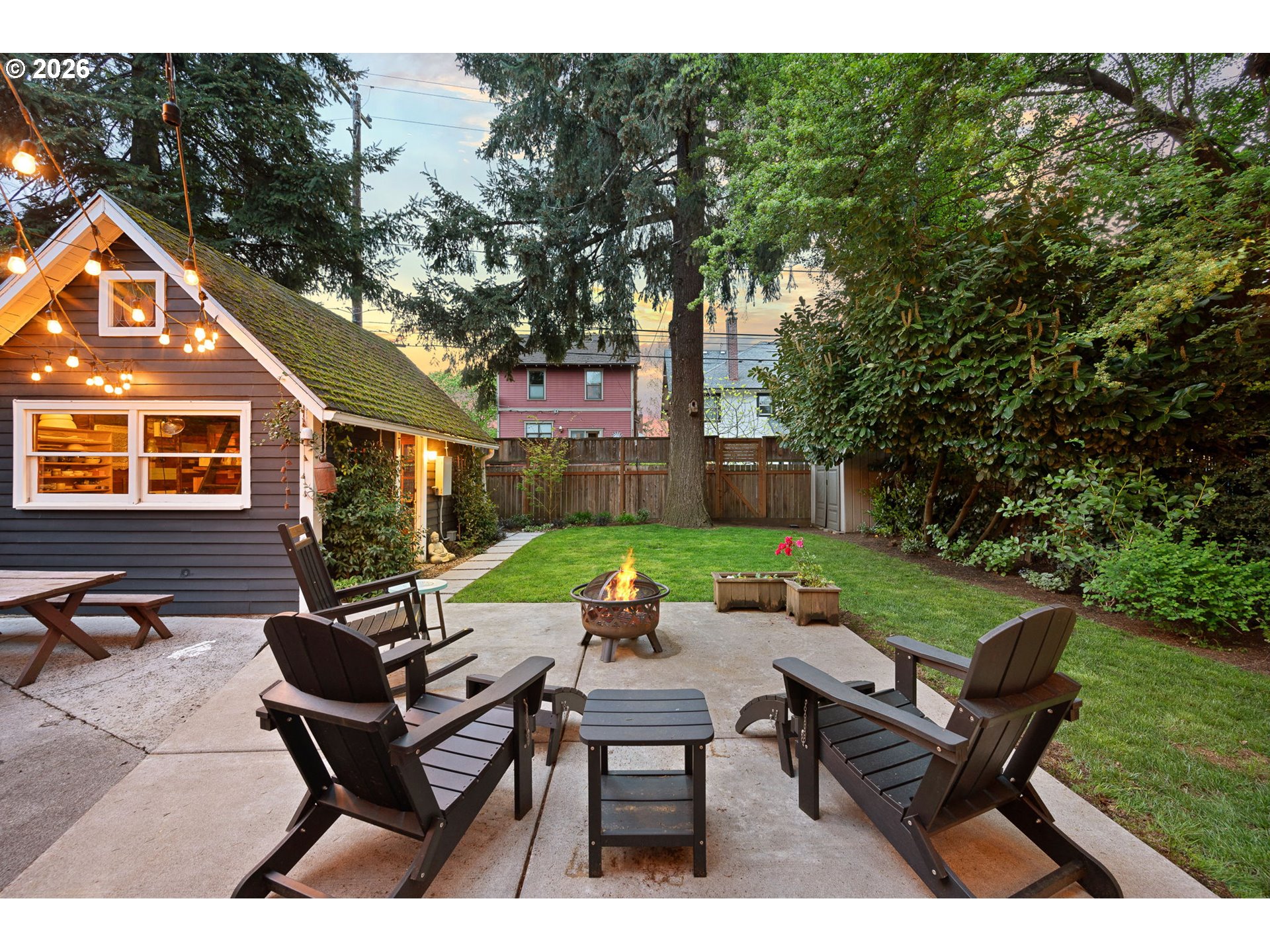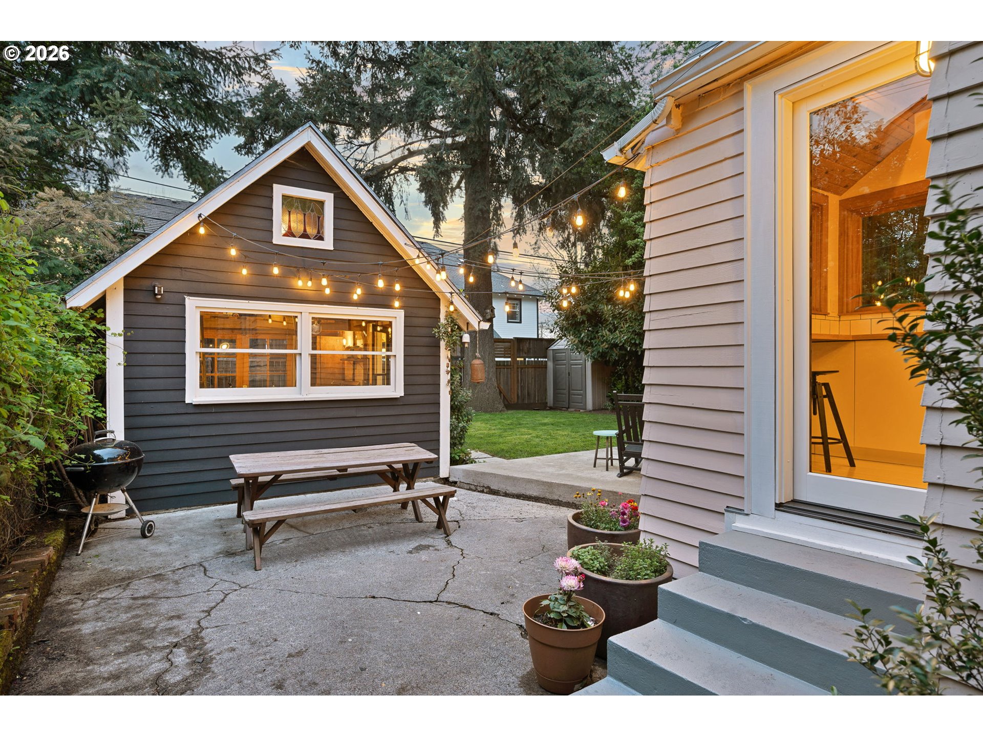 (503) 893-8874Kissed-pink Modern Tudor Fairytale that lives like a feeling. Sun-warmed & softly storybook from the curb, this home blends old-world charm & modern elegance in a way that feels both elevated & effortlessly inviting. Inside, light pours through every direction, filling generous open living spaces where coved ceilings/arched openings/built-ins, & thoughtful details create artful, effortless spaces. The living/dining/kitchen flow seamlessly together in a connected great room designed for everyday ease & memorable entertaining. A fireplace anchors the living room as a warm, grounding centerpiece. With 3 bedrooms, this home offers flexibility for rest/guests or work-from-home living. Upstairs, a cozy seating nook creates the sweetest corner for morning coffee, reading, or unwinding in the afternoon light. Above it all, a tucked-away loft offers a special retreat for yoga/creative inspiration or quiet escape when the moment calls. The entertainer’s kitchen brings people together with a Smeg refrigerator/skylight & Cedar + Moss fixtures—crafted for gathering, lingering, & celebration. This home feels like strawberry ice cream & chilled rosé at golden hour—sweet, relaxed, & celebratory. Evenings spill outdoors to multiple patios & layered garden spaces designed for connection. The yard is a private retreat with gardens/raised beds, & room to lounge/dine, & gather under the stars. A beautiful attached separate living quarters lives like a little sister to the main home—private, & complete with its own kitchen, bath, & entrance—ideal for income potential/multigenerational living & guests. A backyard studio adds even more possibility as an artist’s retreat/office or future ADU expansion, equipped with power & plumbing. Recent updates include a newer heat pump & roof/restored first-floor windows/rebuilt chimney/partial re-plumbing. Stroll to shopping, the Williams & Mississippi corridors, Pensisula Park & shopping. Life here feels slow, intentional, & beautifully lived-in. [Home Energy Score = 4. HES Report at https://rpt.greenbuildingregistry.com/hes/OR10189060]