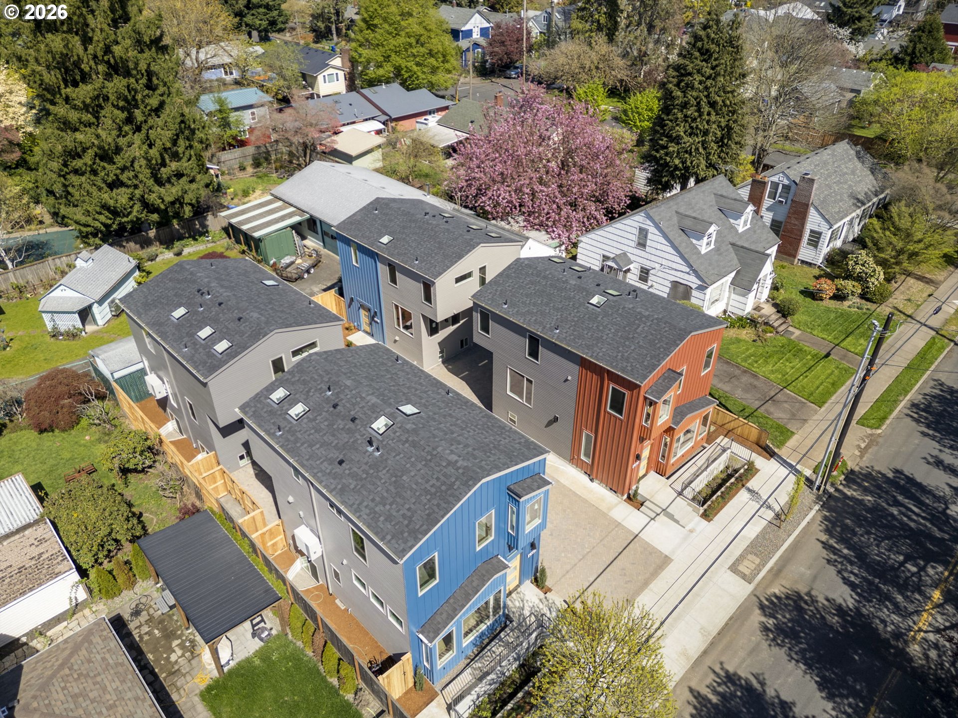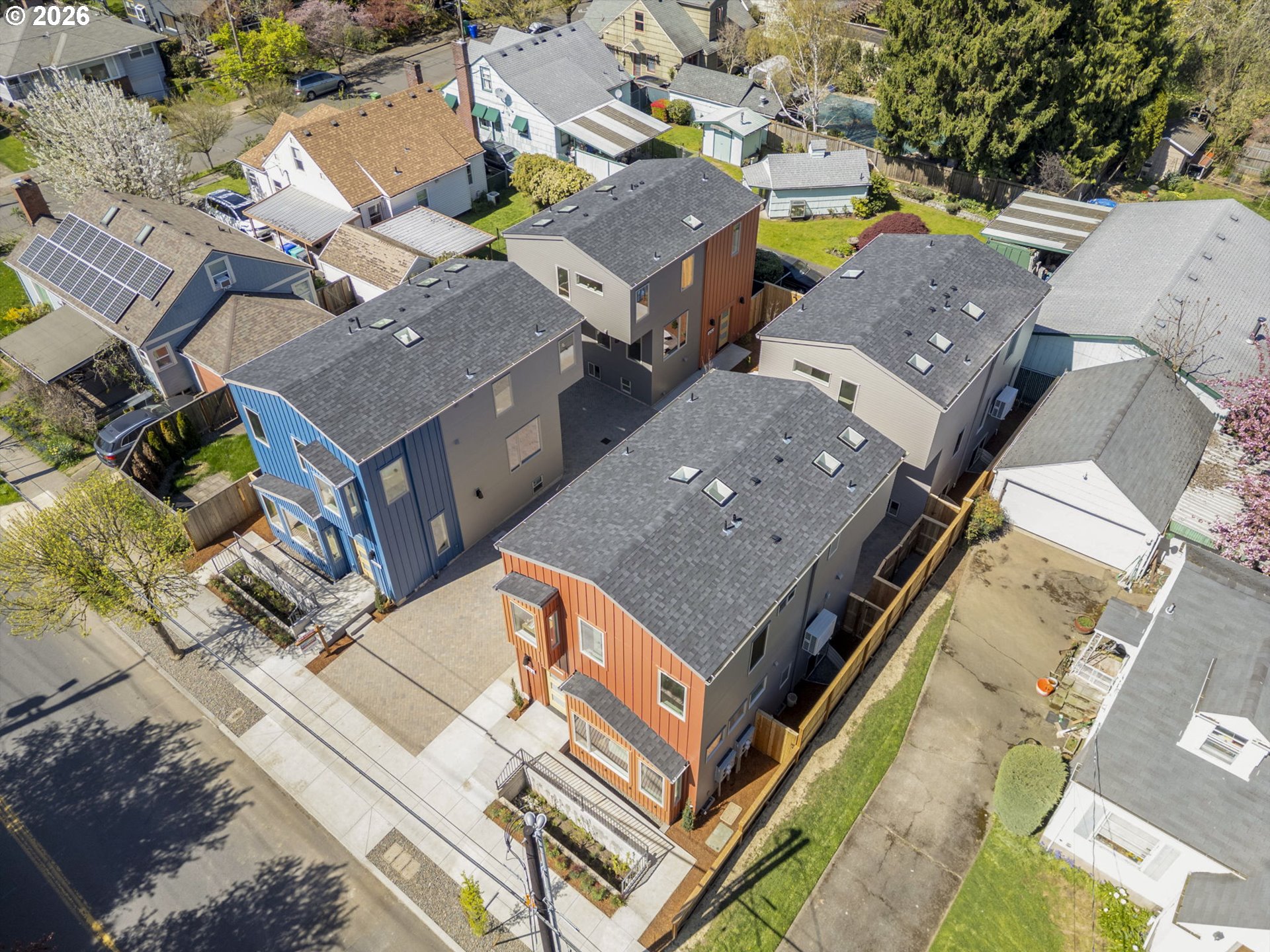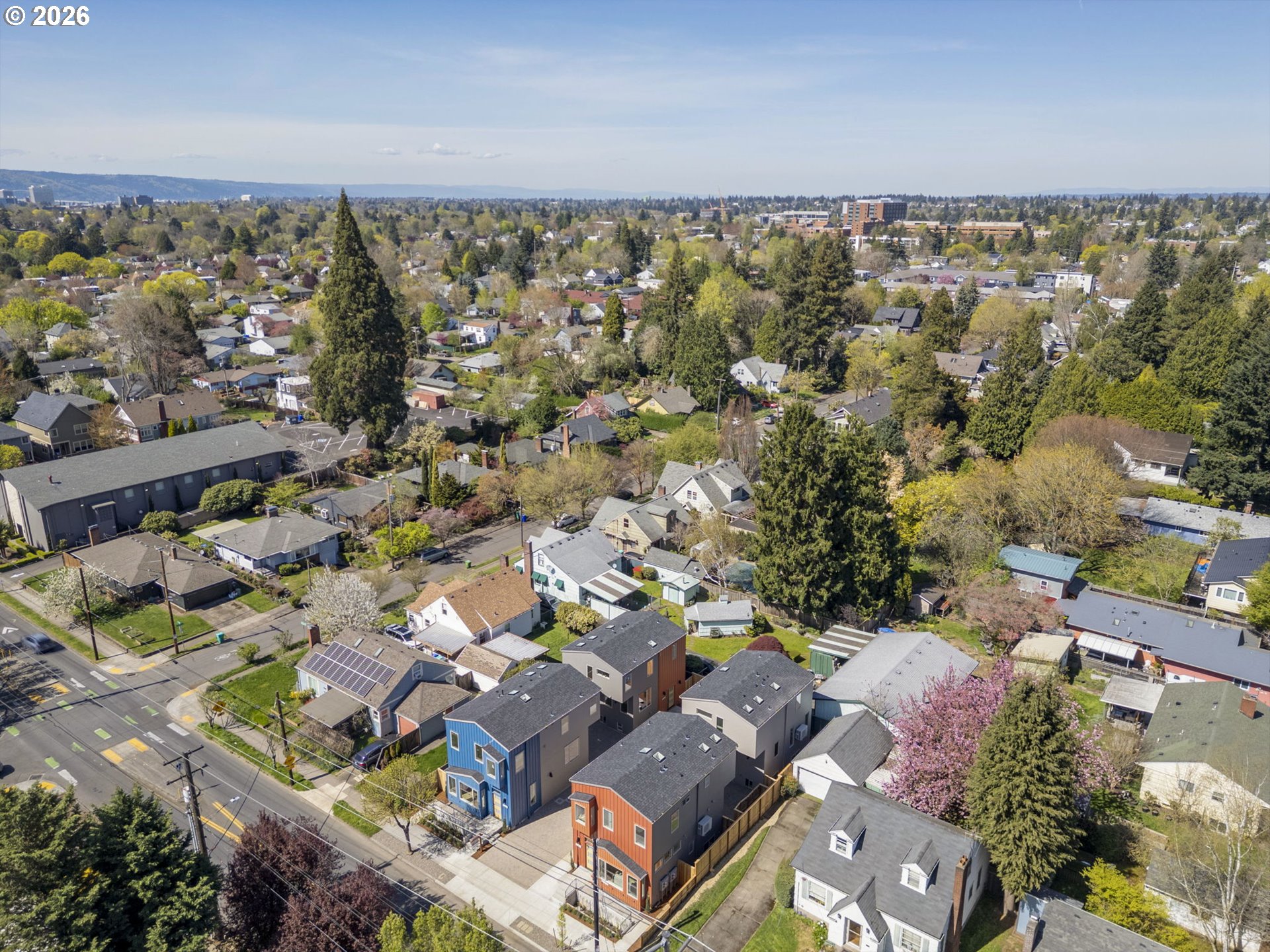 Enjoy low-maintenance, spacious urban living and striking modern design in the prime central Belmont-Burnside-Hawthorne corridor close to Mt. Tabor Park and PPMC. Surprisingly quiet with asymmetrical glass noise-reducing windows, blown-in insulation and air-tight construction with outstanding blower-door results and energy efficiency. This roomy light-filled detached single-family home offers 3 bedrooms, 3.5 baths and private off-street EV charger-ready parking, with no condo association, HOA dues, or party walls. Enter at the dramatic split-level living room with soaring 11-foot ceilings, light-filled clerestory and bay windows, and white oak floors and railings. Ascend a half-flight of steps under a two-story skylight well to the dining and kitchen area, or descend a half level to a light-filled flex room (a perfect guest bedroom or home office) with private full bathroom. The kitchen/dining level showcases a sleek modern kitchen with plentiful custom white oak cabinetry, induction range, quartz countertops and island seating. Upstairs you’ll find two more generously-sized bedrooms each with ensuite bath, including a primary bathroom with double vanities, private water closet, radiant heat floor, and walk-in closet. Live in an unbeatable location just blocks from Belmont, Burnside and Hawthorne shopping and dining, as well as Glencoe Elementary and Mt. Tabor Middle, with easy access to I-84. High efficiency heat pump water heater and mini-split HVAC, Oregon Energy Trust certification pending. Listing broker is the developer. Additional low-headroom storage space is not included in stated square footage. Property taxes not yet determined by county. [Home Energy Score = 10. HES Report at https://rpt.greenbuildingregistry.com/hes/OR10246218]