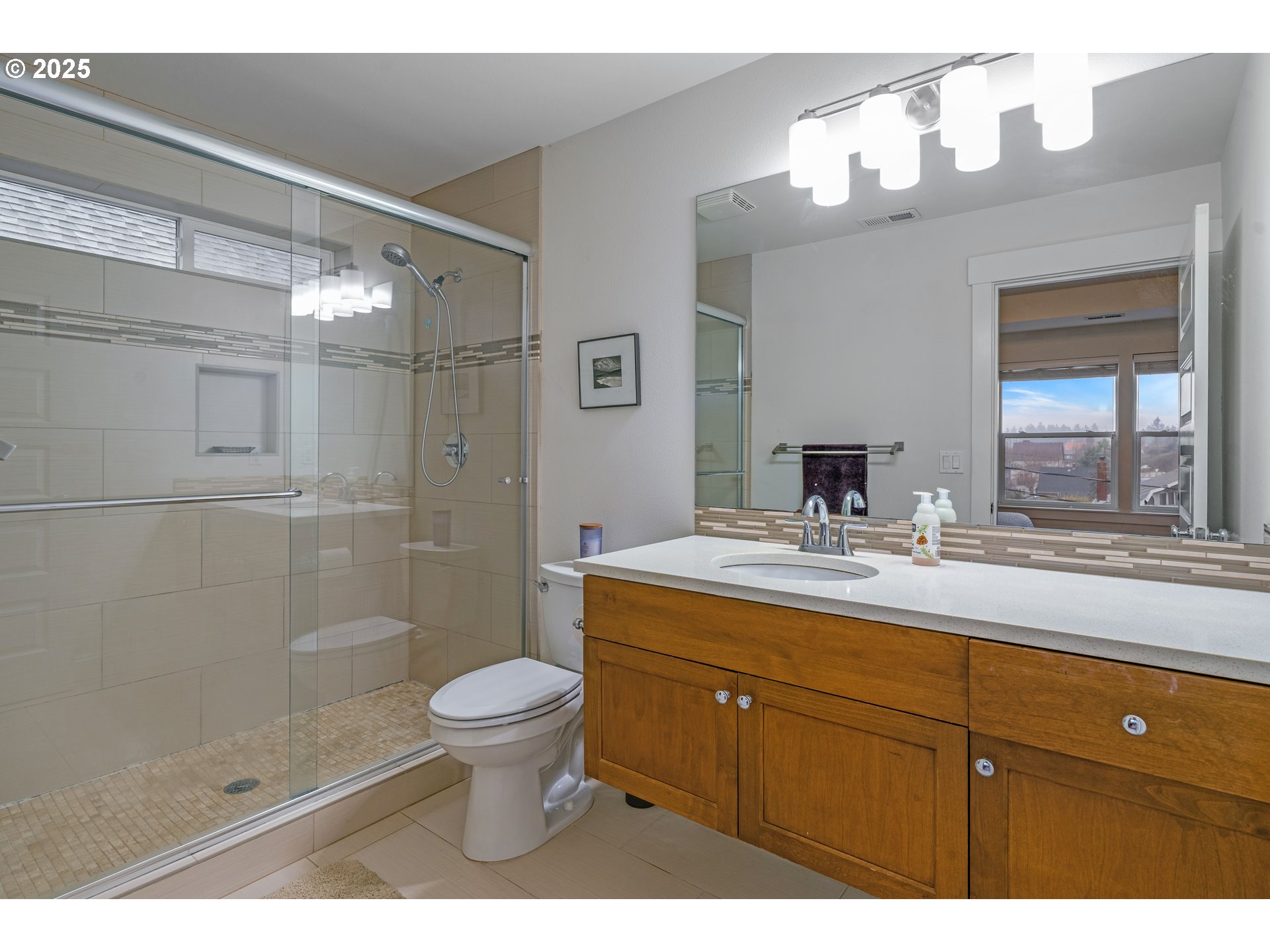 Experience urban living at its finest in this modern 3 bed, 2.5 bath home perfectly positioned between Laurelhurst and Mt. Tabor. Thoughtfully designed with high-end finishes, the open floor plan features 9-foot ceilings on the main level, hardwood floors, a stylish living room with gas fireplace and built-ins, and a formal dining area. The gorgeous chef’s kitchen offers quartz countertops, stainless steel appliances, an electric convection oven and stovetop, and an island ideal for cooking and gathering. The primary suite includes a walk-in closet and a beautifully updated primary bathroom featuring an oversized step-in shower. The solar system installed in June 2025 is fully paid off and will save you thousands on electricity for years to come. Additional highlights include plentiful closet space, tile bathroom flooring, Hunter-Douglas blinds, A/C, and an oversized one-car garage. Enjoy a fully fenced, private backyard with terraced garden beds—perfect for relaxing or gardening. With unbeatable access to parks, cafés, pubs, award-winning eateries, Max Light Rail, and I-84, this home places the best of Portland’s Northeast neighborhoods right at your fingertips. [Home Energy Score = 6. HES Report at https://rpt.greenbuildingregistry.com/hes/OR10193568]