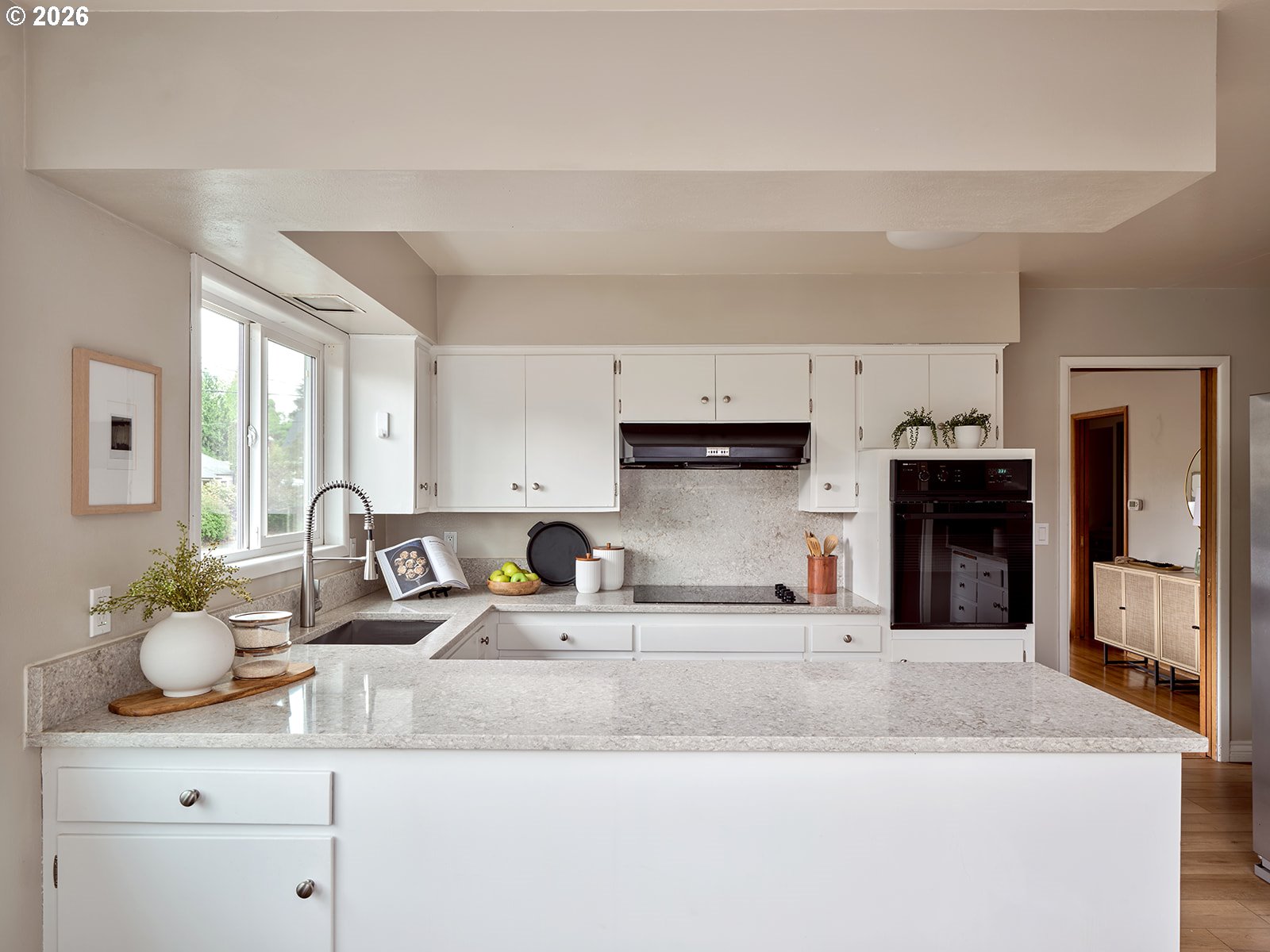 (503) 893-8874OPEN THURSDAY 4/23 from 4:30-6:30 PM. Rose City Park cool, redefined. This mid-century modern ranch brings clean lines, warm light, and effortless flow. Natural light pours across hardwood floors, opening into generous, open spaces that feel both calm and expansive. 2 fireplaces to cozy up with on cooler days. Quartz counters add a crisp edge; remodeled baths keep it fresh. 5 bedrooms, 2.1 baths to live, create, host. Step outside to a thoughtfully designed patio made for late nights and easy mornings, framed by standout landscaping. New roof, central AC, spacious 2-car garage, endless storage—everything handled. It’s minimal, it’s modern, it just works. [Home Energy Score = 5. HES Report at https://rpt.greenbuildingregistry.com/hes/OR10213385]