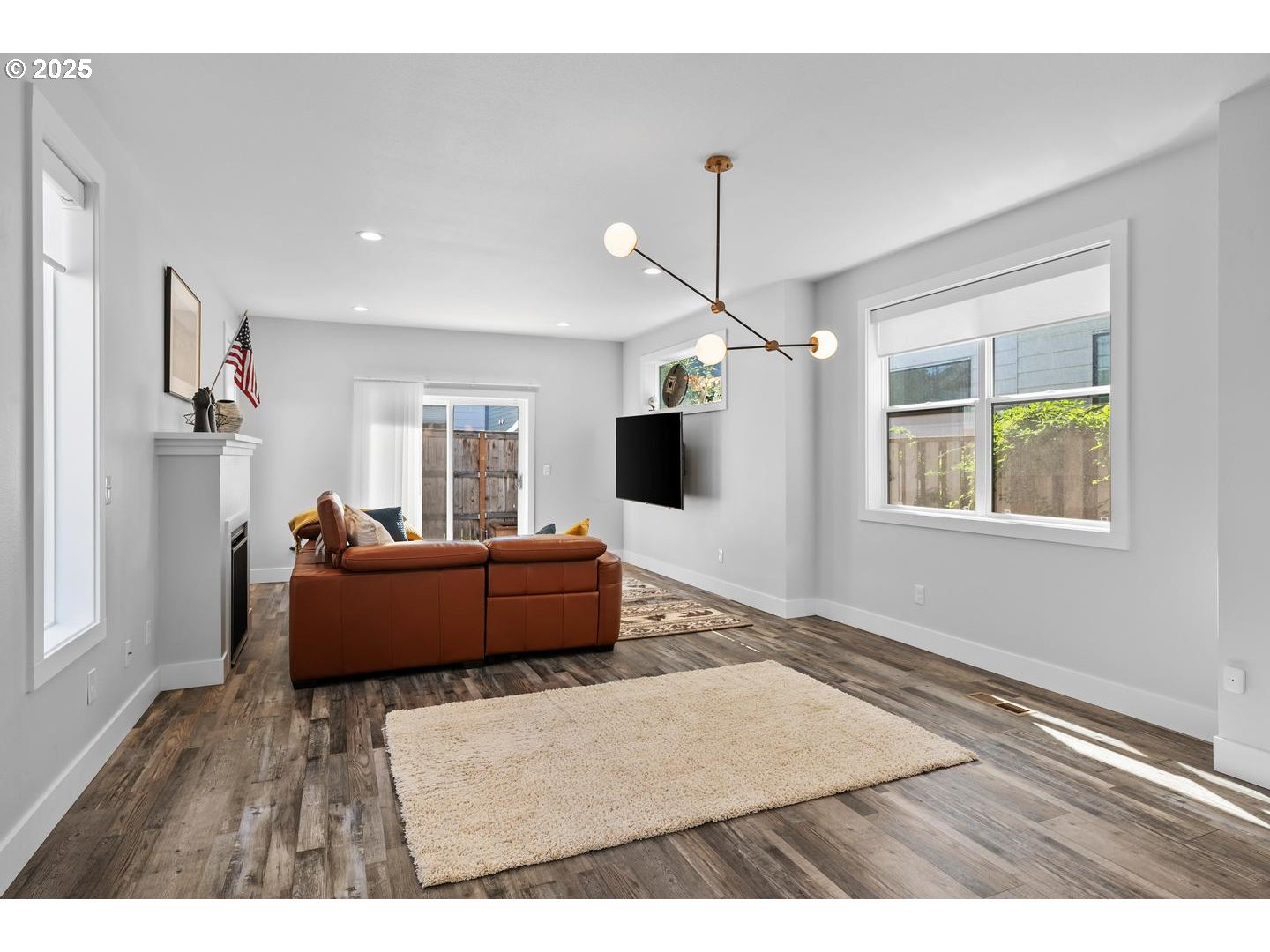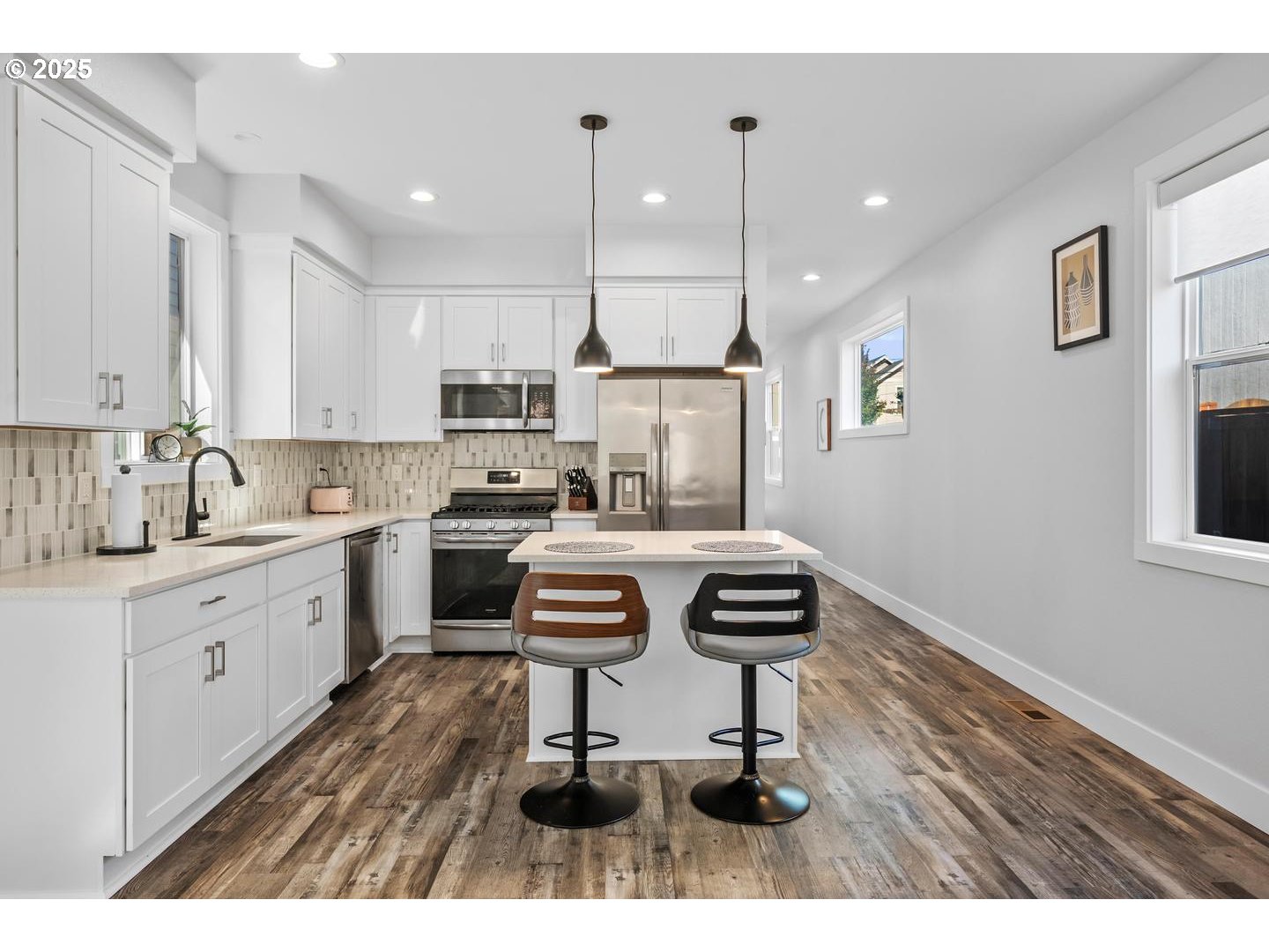 Step into elevated Portland living: thoughtfully designed, beautifully maintained, and perfectly placed in the heart of Brentwood-Darlington. Welcome home to 5424 SE Knapp Street—a light-filled retreat where modern comfort meets vibrant community.From the moment you enter, soaring ceilings and an open floor plan create a sense of space and ease. Natural light pours through oversized windows, highlighting fresh landscaping in both the front and back yards, while a cozy fireplace adds warmth and charm to the living area. The seamless flow from the kitchen to dining to living spaces makes this home as functional as it is inviting—ideal for both everyday living and entertaining.The kitchen features a generous island, quartz countertops, stainless steel appliances, and stylish fixtures, designed to bring people together in the heart of the home. Upstairs, the spacious primary suite offers a peaceful retreat with vaulted ceilings, a walk-in closet, and an en suite bathroom with dual vanities. Two additional bedrooms, a full guest bath, and convenient upstairs laundry add flexibility for family, guests, or a home office.Step outside to enjoy your private fenced backyard—perfect for summer BBQs, gardening, or simply unwinding in your own outdoor oasis. Professional landscaping ensures beauty and curb appeal year-round.Located in one of Portland’s most connected neighborhoods, this home boasts a 96 Bike Score and puts you just blocks from Woodstock shops, coffee houses, restaurants, parks, and community amenities. With quick access to downtown and nearby nature escapes like Mt. Tabor and Oaks Bottom Wildlife Refuge, you’ll enjoy the best of both urban convenience and outdoor lifestyle.Don’t miss this one—5424 SE Knapp Street offers the unbeatable blend of style, comfort, and community you’ve been searching for.