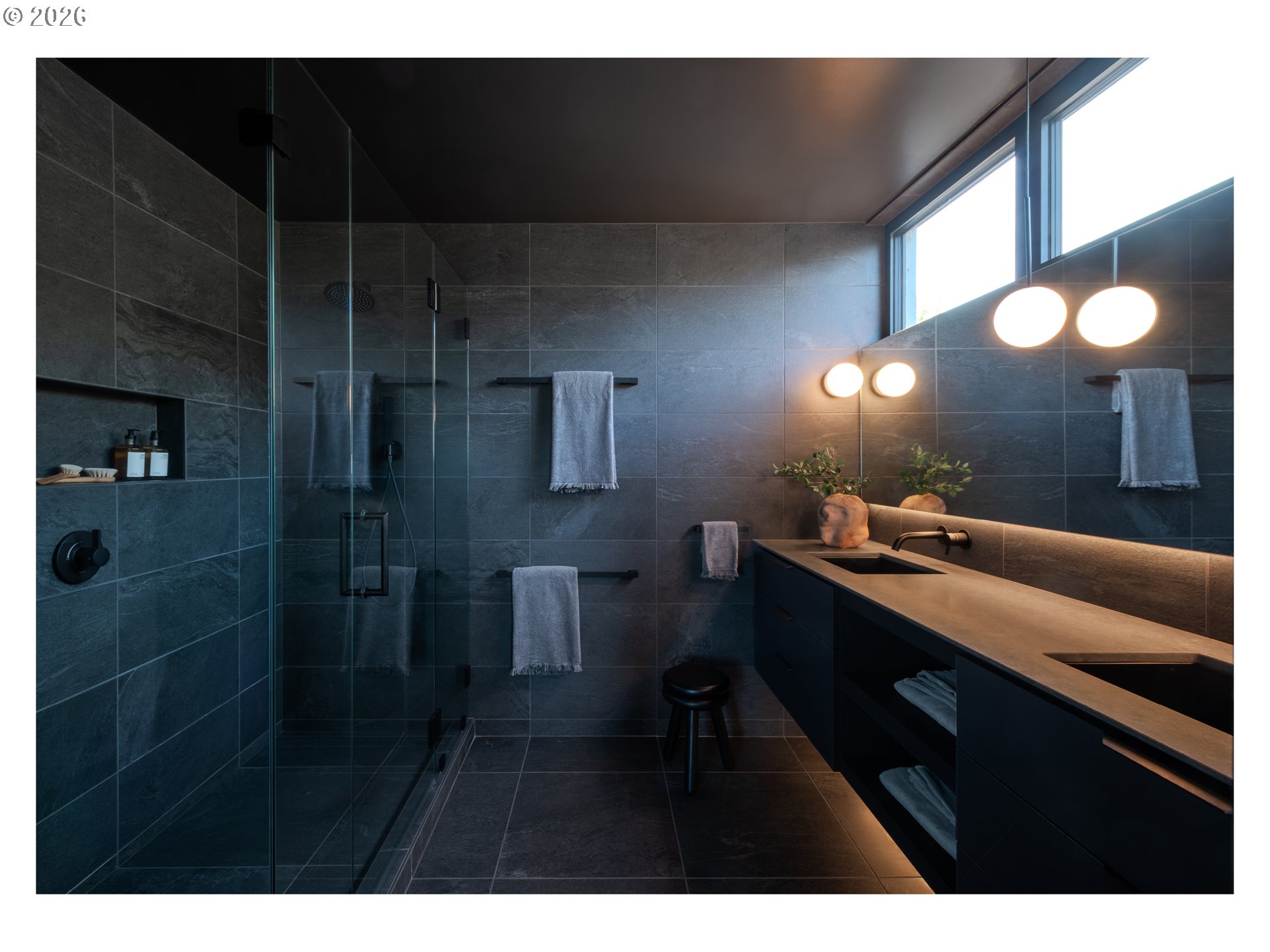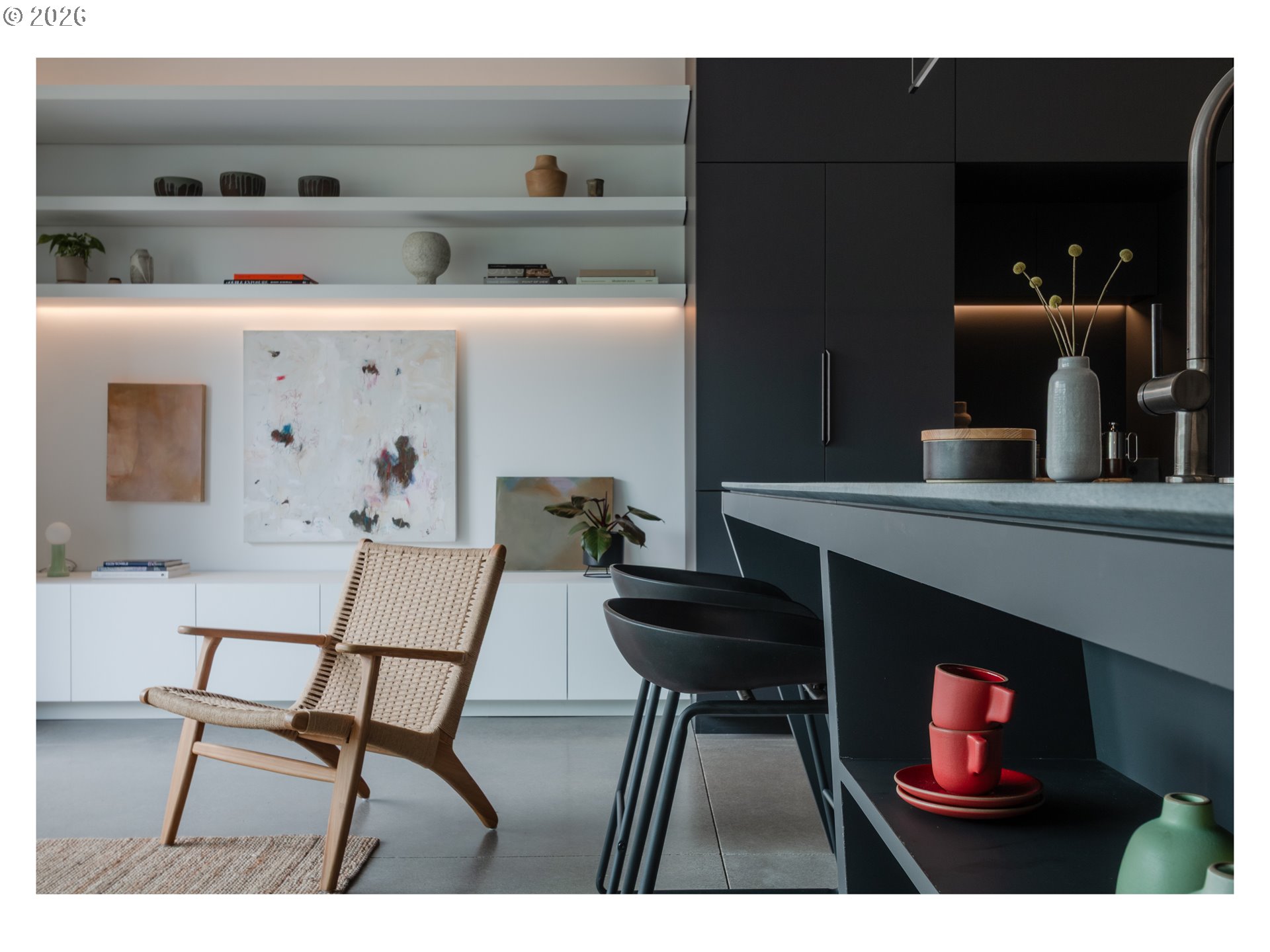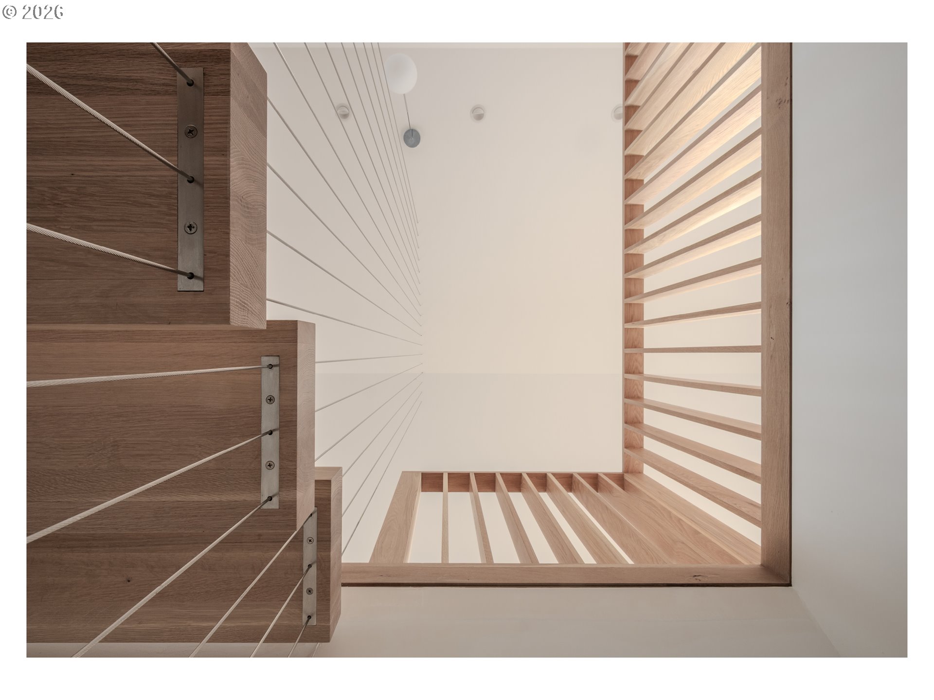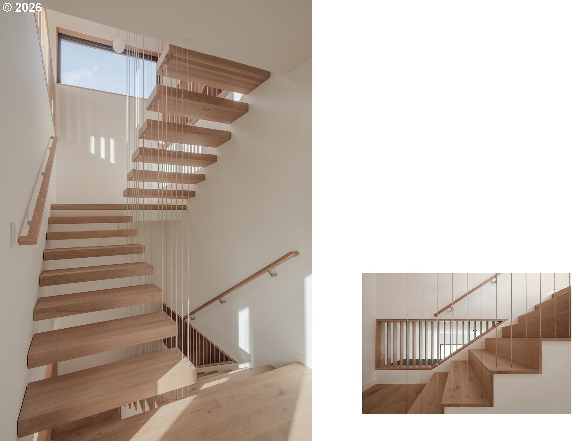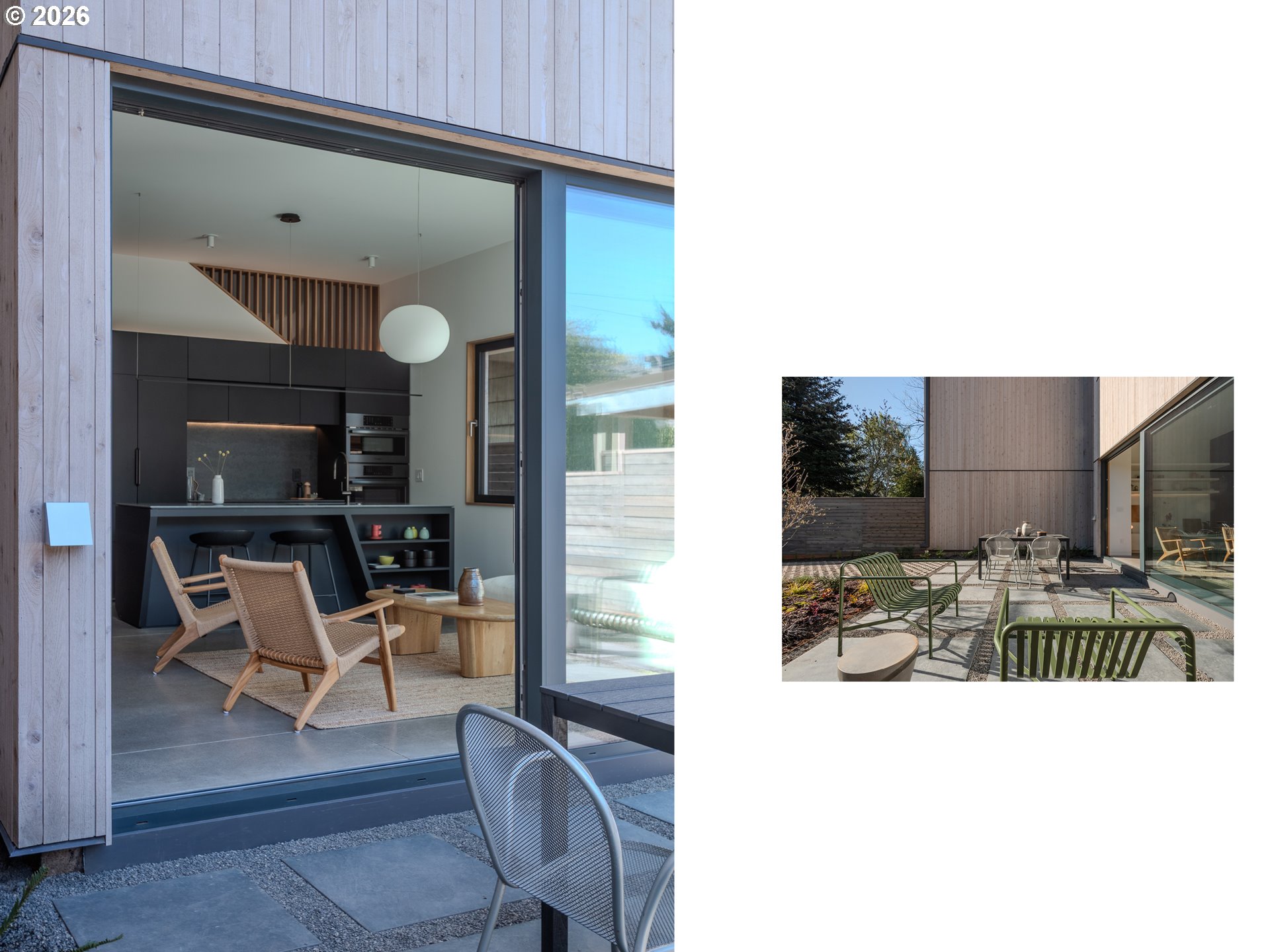 (503) 893-8874A rare opportunity to own a bespoke work of architecture nestled in the Alberta Arts district. Conceived and meticulously resolved by architect Mark Holmquist—raised in Germany and Portland, Harvard-trained, and a former associate partner at Foster + Partners (of Apple Park fame)—this modern-day Gesamtkunstwerk was recently selected for the AIA Portland Homes Tour and AIASF Design Awards. As if carved from a single block of cedar, the faceted pair of townhouses are made distinct through a series of geometric sleights of hand. Slipping one past the other, an unorthodox offset creates two reciprocal, lushly planted outdoor ‘rooms’. A thickened party wall—expressed as a notch where the buildings lightly touch—conceals plentiful built-in storage, a critical acoustic decoupling, and allows for an unusually generous south-facing window wall. Upper decks, like the hollows of a tree, offer territorial views shrouded from the sidewalk below. The cascading steps of the front porch, paired with a dramatically cantilevered soffit above, welcome visitors in—a nod to Portland’s bungalow vernacular. At the foyer, this compression gives way to the first glimpse of a gossamer stair, suspended from the roof above and threading all three levels in a continuous volume washed in light. Living, dining, and kitchen occupy the main split-level, with two bedrooms and baths on the 2nd. A vaulted, open 3rd floor offers the flexibility of ample additional living space, including a third bedroom. The palette is warm and natural, the finish details refined, and tactile. Solid white oak floors and millwork throughout balance a sleek, velvety European chef’s kitchen with polished concrete underfoot. Only the two full baths—charcoal-hued retreats—depart from the airy theme. Guided by passive house principles, the homes are exceptionally energy efficient—and thanks to integrated rooftop solar, nearly net-zero. Built for comfort, longevity, and inspiration—designed as if for the architect themselves. [Home Energy Score = 10. HES Report at https://rpt.greenbuildingregistry.com/hes/OR10246489]