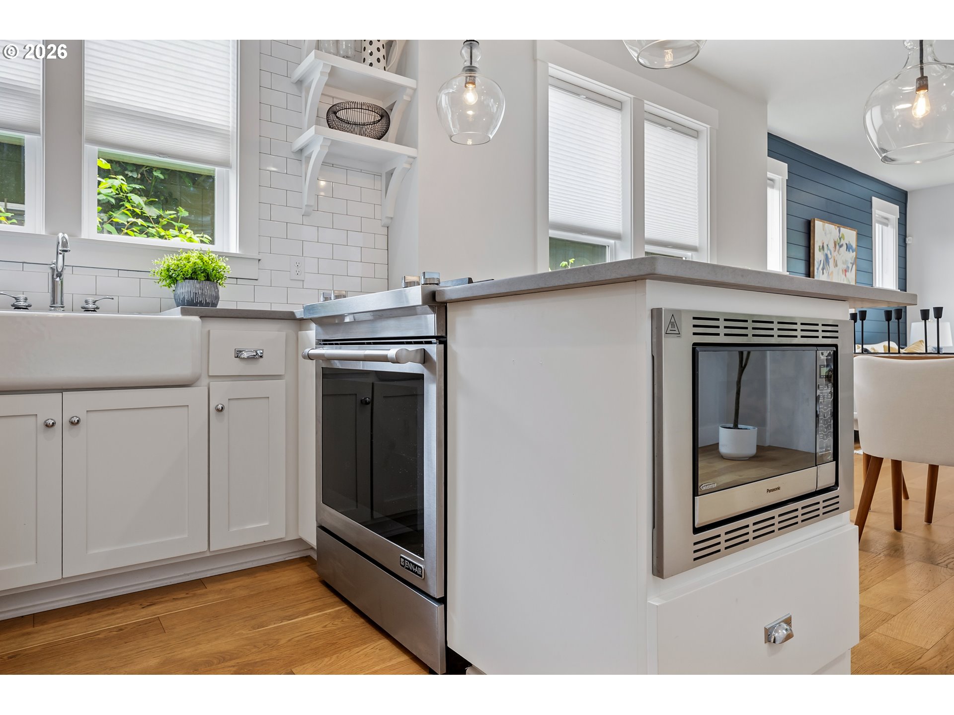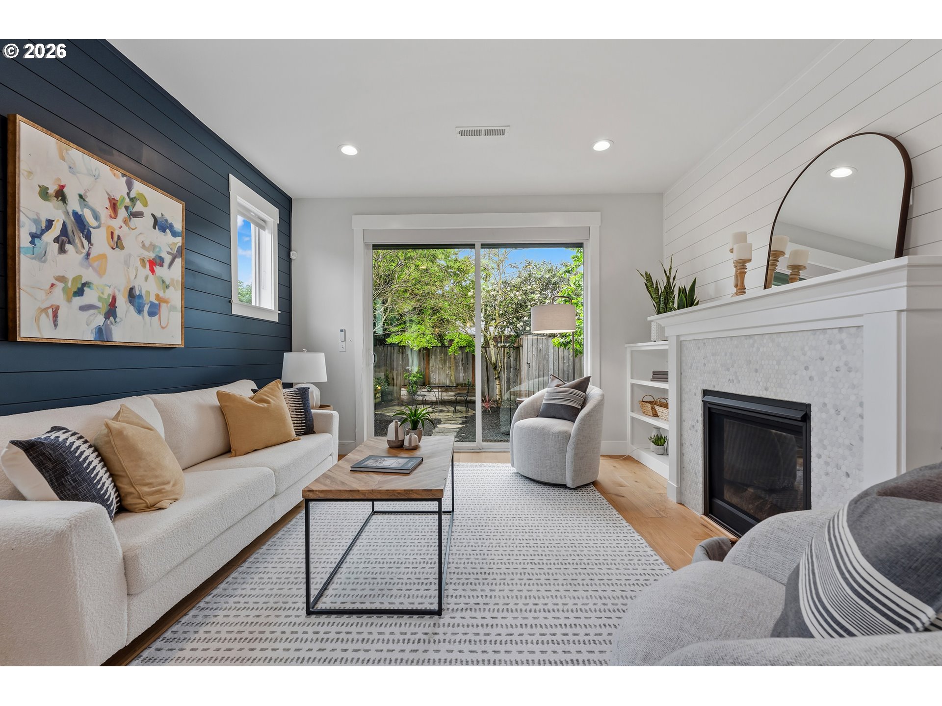 Well maintained and cared for newer construction in a prime Concordia location just blocks from New Seasons, Kennedy School, Fernhill Park and many other local cafes, restaurants and pubs. Thoughtfully designed with handsome Craftsman-style detailing on the outside and a warm, inviting feel inside featuring high ceilings and expansive windows that fill the space with natural light year-round. Quality materials and detailing throughout, including oak flooring on both levels, ship-lap accents, vaulted ceilings upstairs, built-ins, gas fireplace, nicely detailed, open staircase and high-quality fixtures, hardware and window coverings.The oversized slider to the fenced backyard creates an easy flow for both everyday living and entertaining. The stylish, modern kitchen features quartz countertops, stainless steel Jenn-Air appliances (all included), and Rejuvenation light fixtures and hardware.The beautifully landscaped, private back yard is fully fenced with a lovely flagstone patio, raised beds and a spacious concrete patio — ideal for gardening, summer evenings, and letting pets roam freely. Spacious bedrooms offer ample closets and separation, making them perfect for remote work or hosting guests. The primary suite is a true retreat, featuring a large bathroom, walk-in shower, and roomy closet.Enjoy the convenience of upstairs laundry room with added storage, plus a washer and dryer included. Built with energy efficiency and low-maintenance materials, including a 95% efficient furnace and tankless water heater.An attached garage, driveway parking, and central air conditioning add to the comfort. Walk Score of 86 and Bike Score of 98! [Home Energy Score = 8. HES Report at https://rpt.greenbuildingregistry.com/hes/OR10227894]