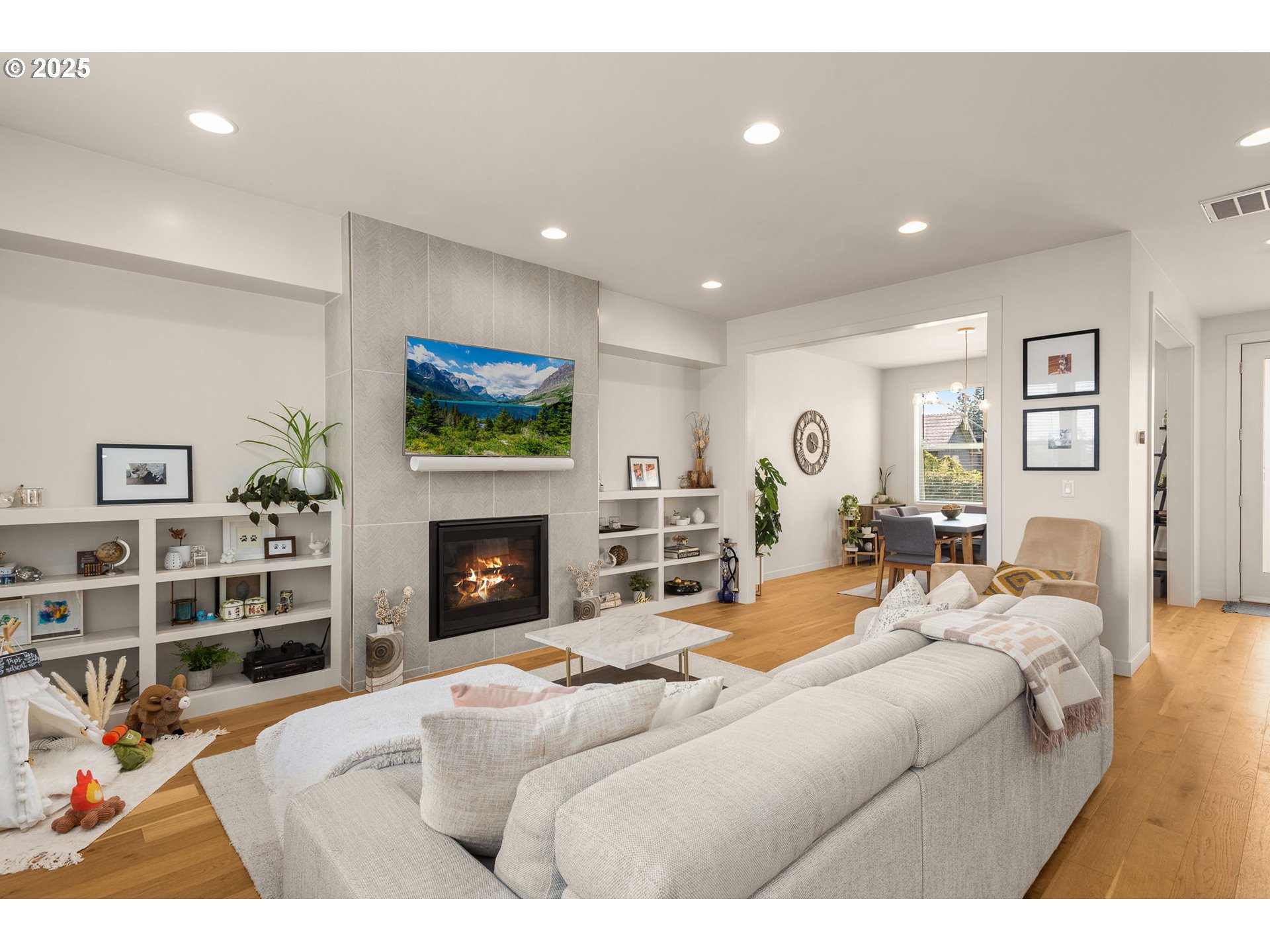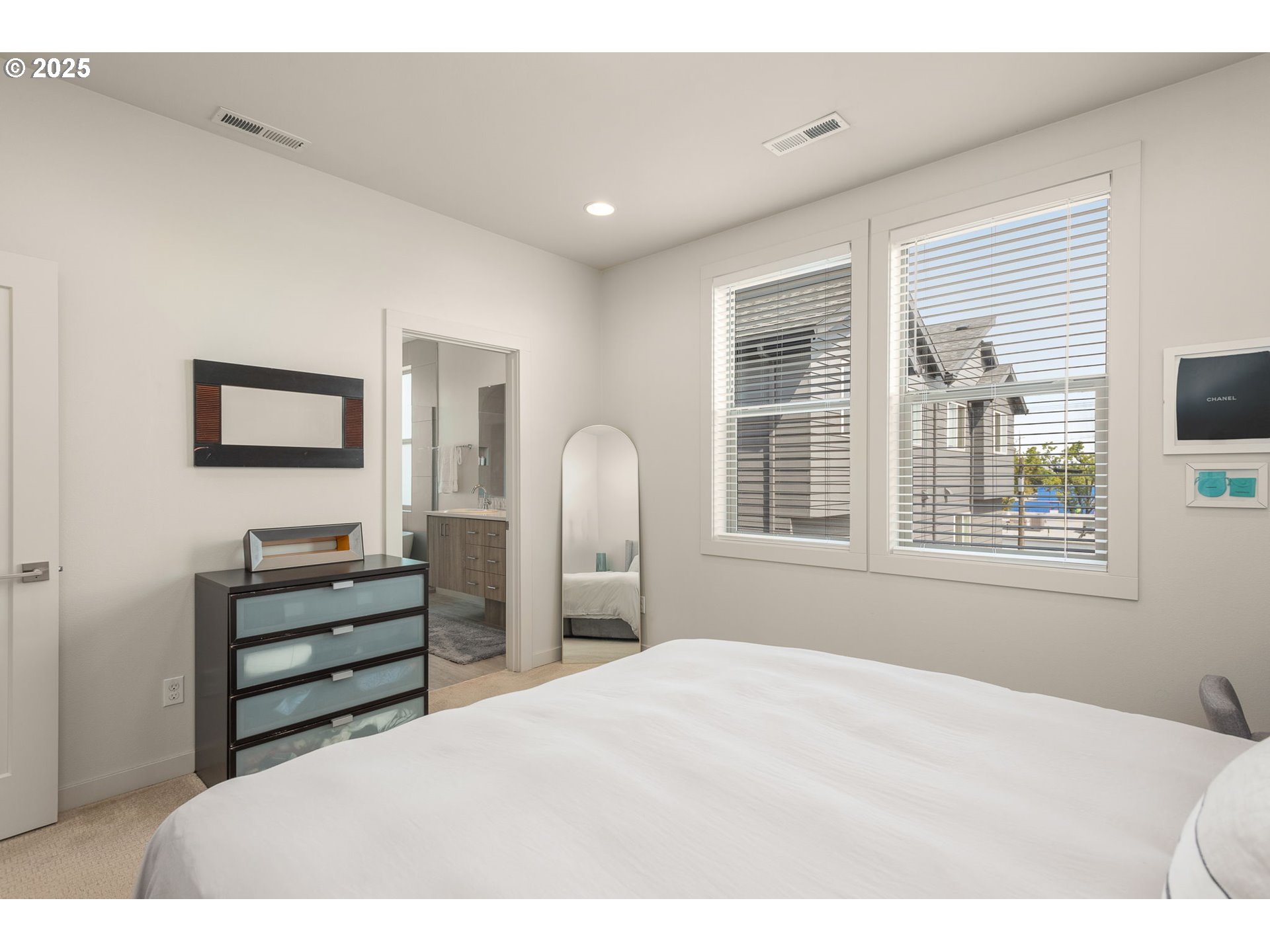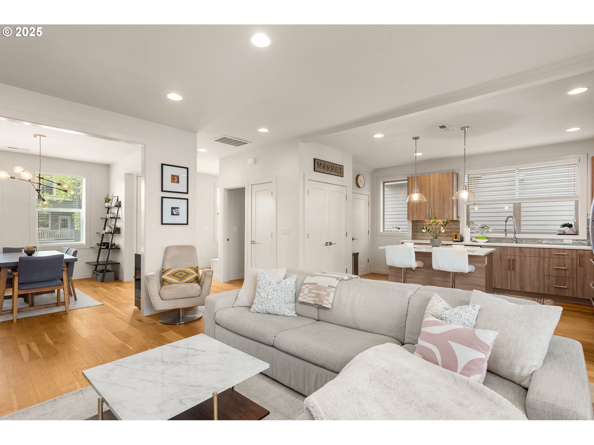 Stunning Modern Townhome in University Park! 3 bedroom, 2.5 bath, 1700+ sq ft home features a private driveway and garage, beautiful hardwood floors, quartz counters, high end kitchen appliances, a floor to ceiling tiled gas fireplace, custom blinds, high efficiency heating and cooling, a large primary suite with dual vanity, walk-in shower and soaking tub. The open floor plan, spacious layout and defined dining space makes this the ideal home for entertaining. Don’t miss the private low maintenance yard with turf perfect for entertaining and the Arlo security system. Walking distance to University of Portland and New seasons market. This one is a winner!