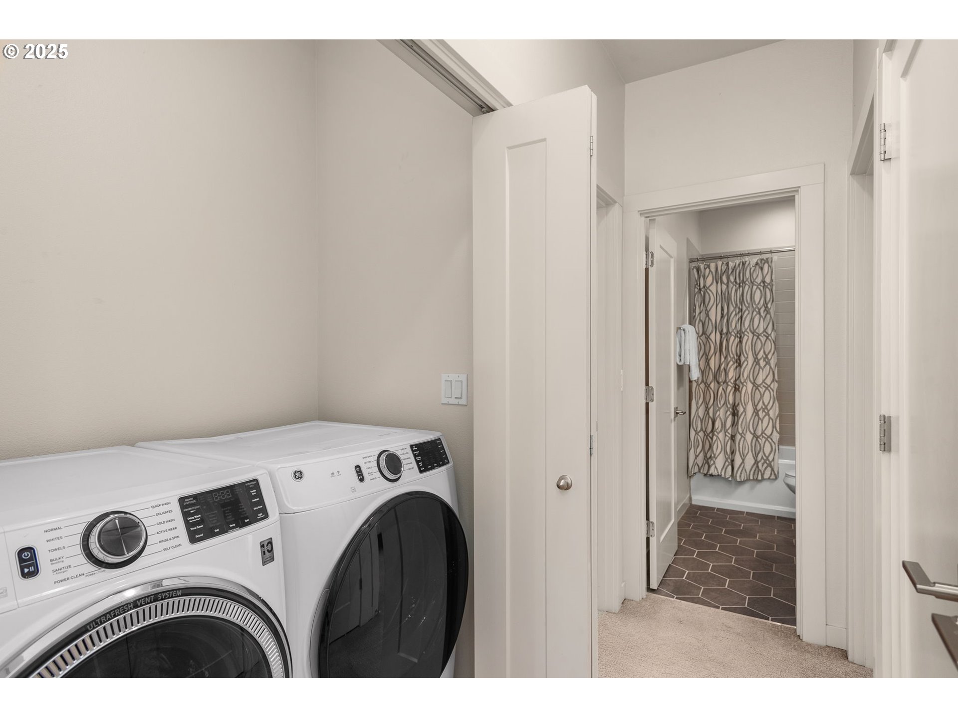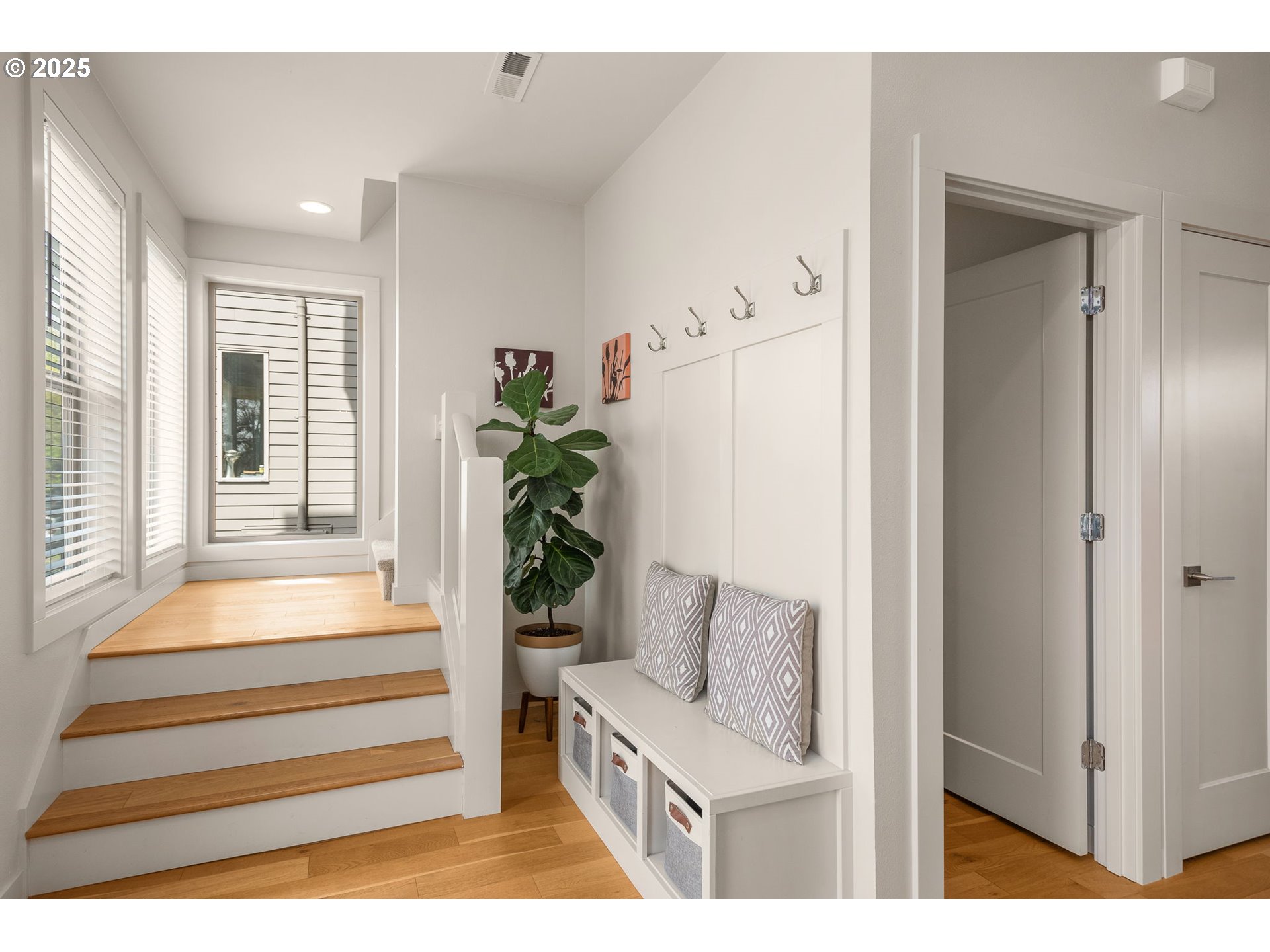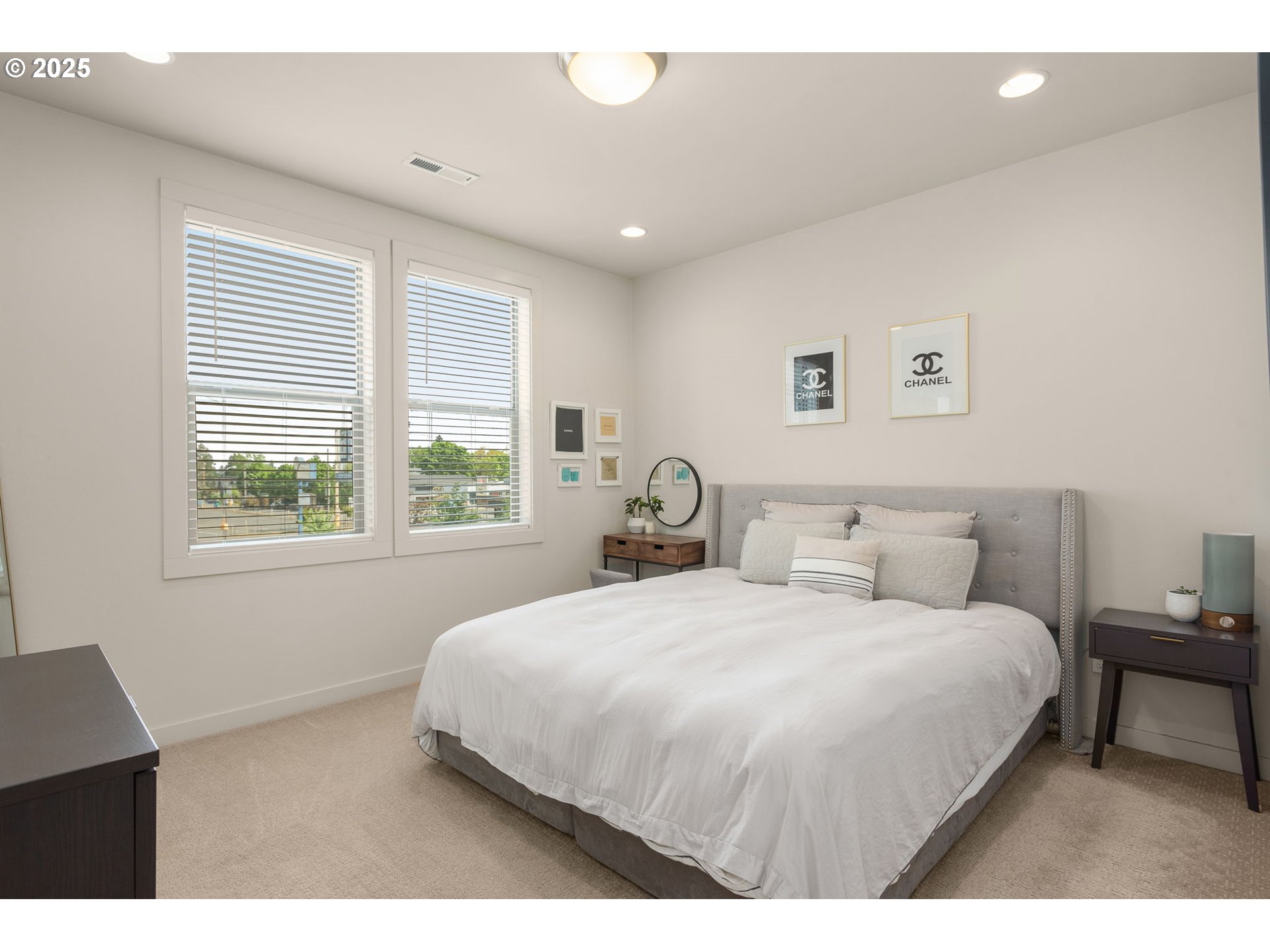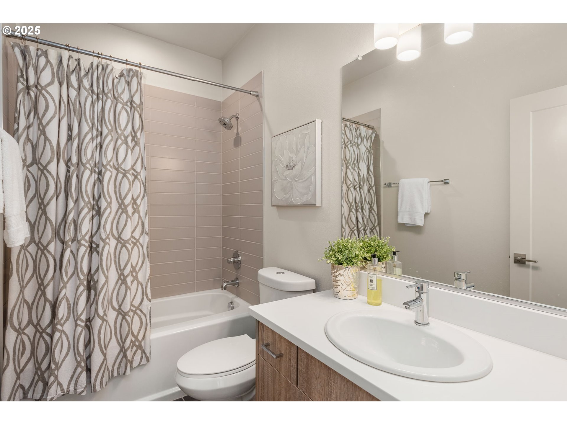 Stunning Modern Townhome in University Park! 3 bedroom, 2.5 bath, 1700+ sq ft home features a private driveway and garage, beautiful hardwood floors, quartz counters, high end kitchen appliances, a floor to ceiling tiled gas fireplace, custom blinds, high efficiency heating and cooling, a large primary suite with dual vanity, walk-in shower and soaking tub. The open floor plan, spacious layout and defined dining space makes this the ideal home for entertaining. Don’t miss the private low maintenance yard with turf perfect for entertaining and the Arlo security system. Walking distance to University of Portland and New seasons market. This one is a winner!