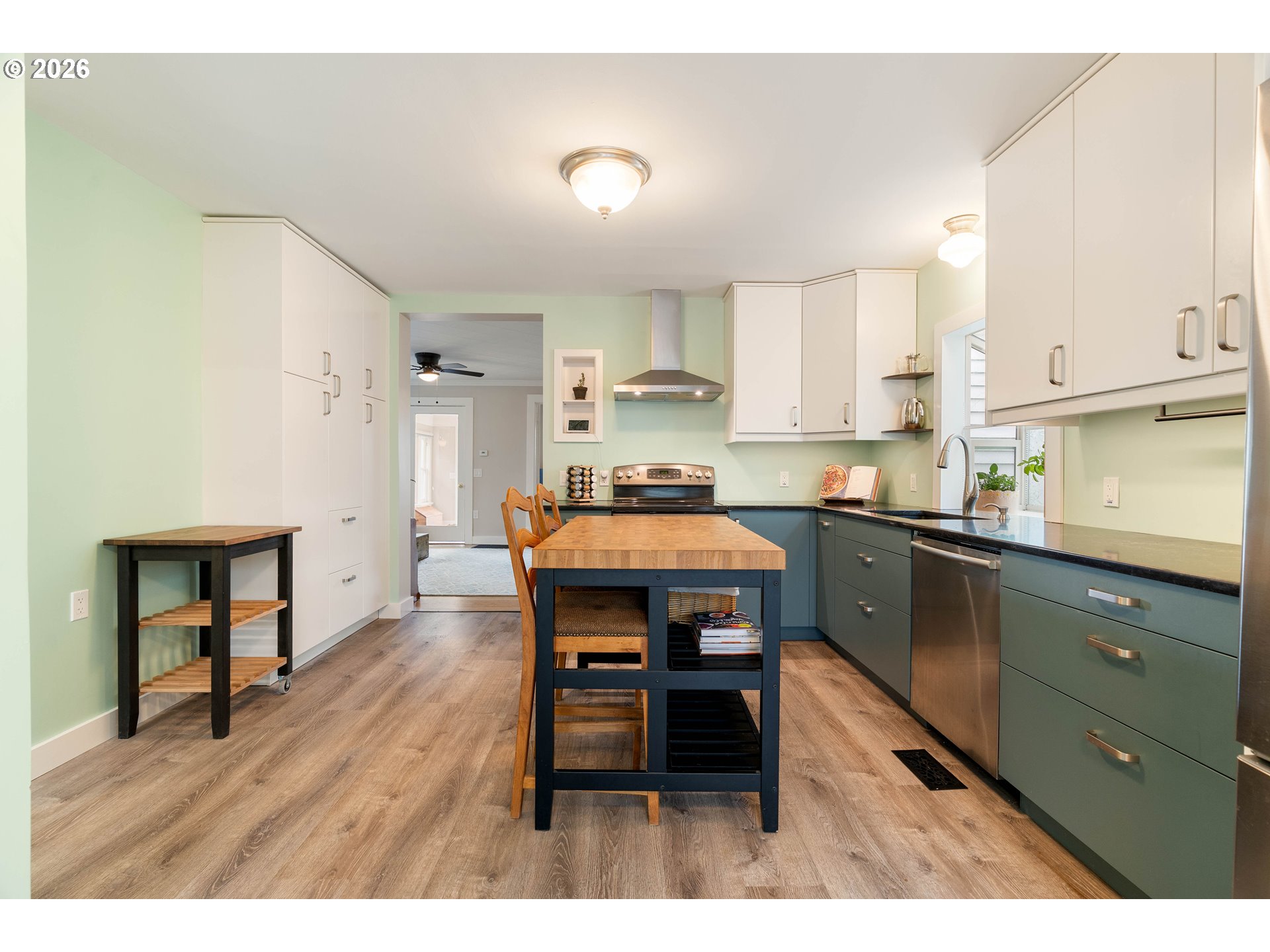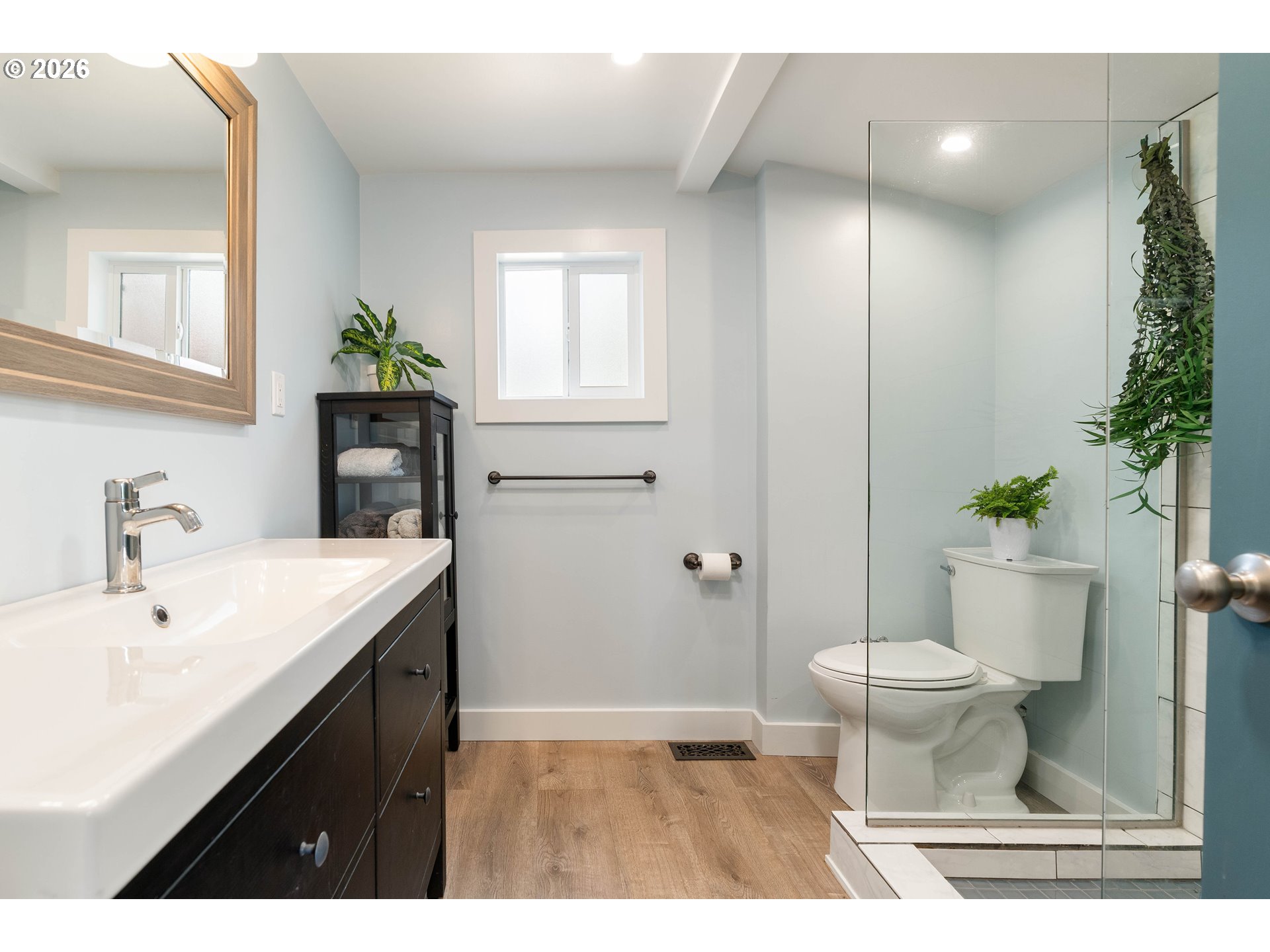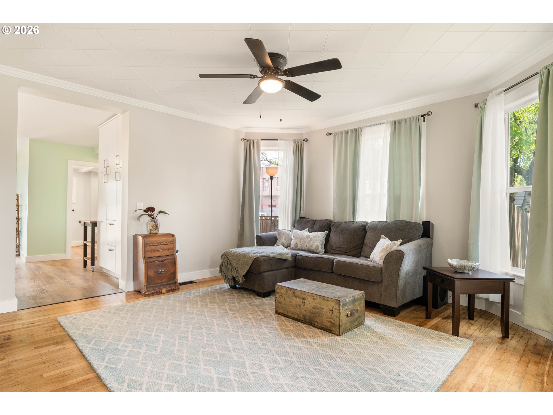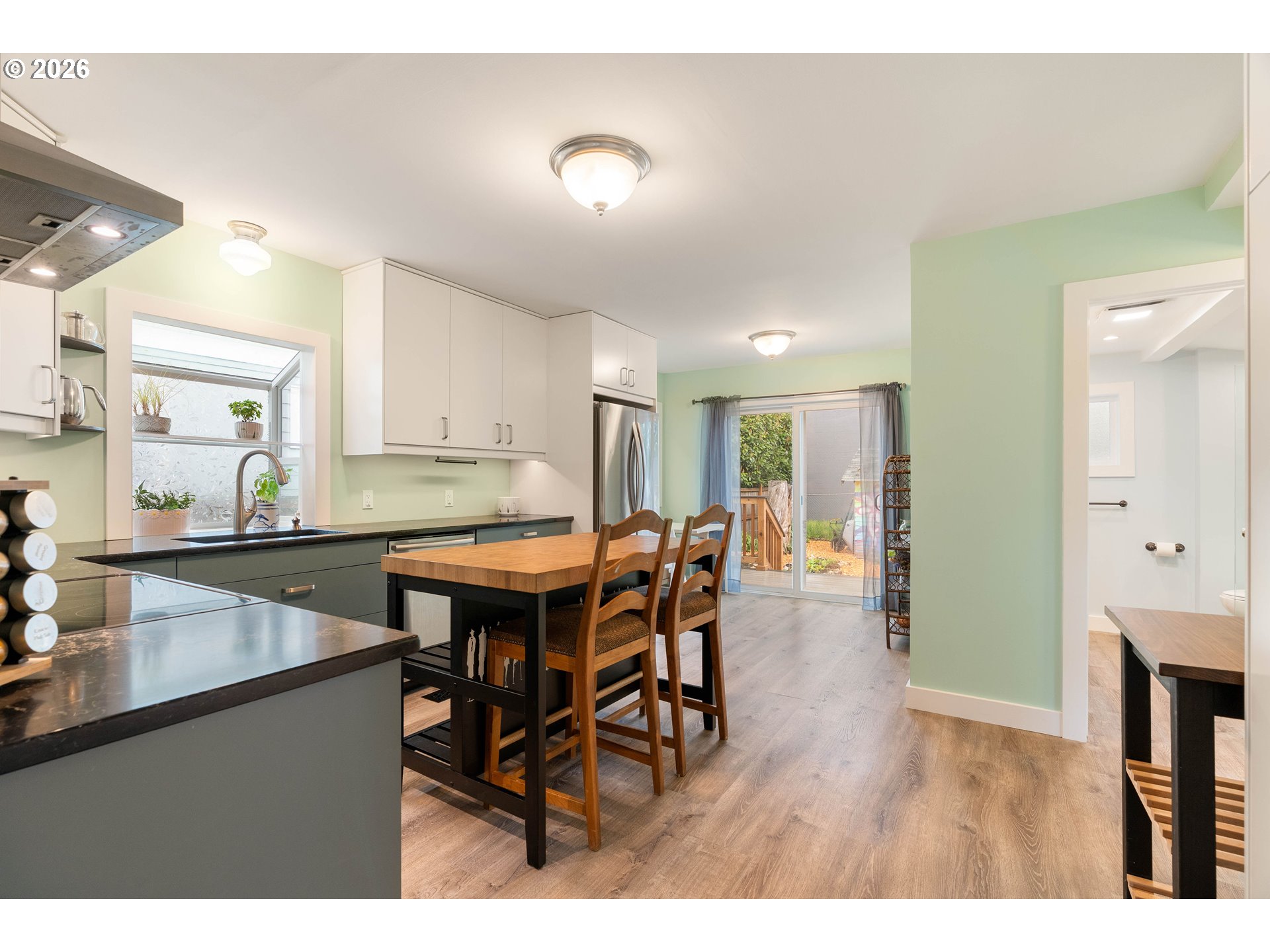 Cute, updated, and ready to welcome you home in the Creston-Kenilworth neighborhood! This home sits on a great corner lot that adds additional space for RV parking or off-street parking at the detached garage. This home lives mostly on the main level and has been nicely refreshed with new interior paint, updated kitchen and bath. This comfortable, easy-flow floorplan also has a fabulous entry vestibule that you did not even know you needed! The fully updated kitchen, with garden window and granite counters and sink, is a great spot to cook, gather and feast on the fresh veggies from your own backyard garden. The bathroom has been updated with a spa-like feel and easy access walk-in shower. The living room features a smart fireplace with customizable LED flame colors to set the vibe, and adjustable heat settings for a little extra coziness. Downstairs, you’ll find a flexible bonus area that works well for storage, a workout space, and hobby area, along with the laundry. There’s also a separate side entrance to the basement and main level which adds to the floor plan versatility. Some bonuses include a newer roof (about 10 years old), updated windows, and PEX and copper plumbing. The detached one-car garage is spacious and could easily double as a workshop. Outside, the level, fenced, and gated yard is perfect for relaxing, entertaining, gardening, or just enjoying a little extra space to spread out. [Home Energy Score = 5. HES Report at https://rpt.greenbuildingregistry.com/hes/OR10243747]