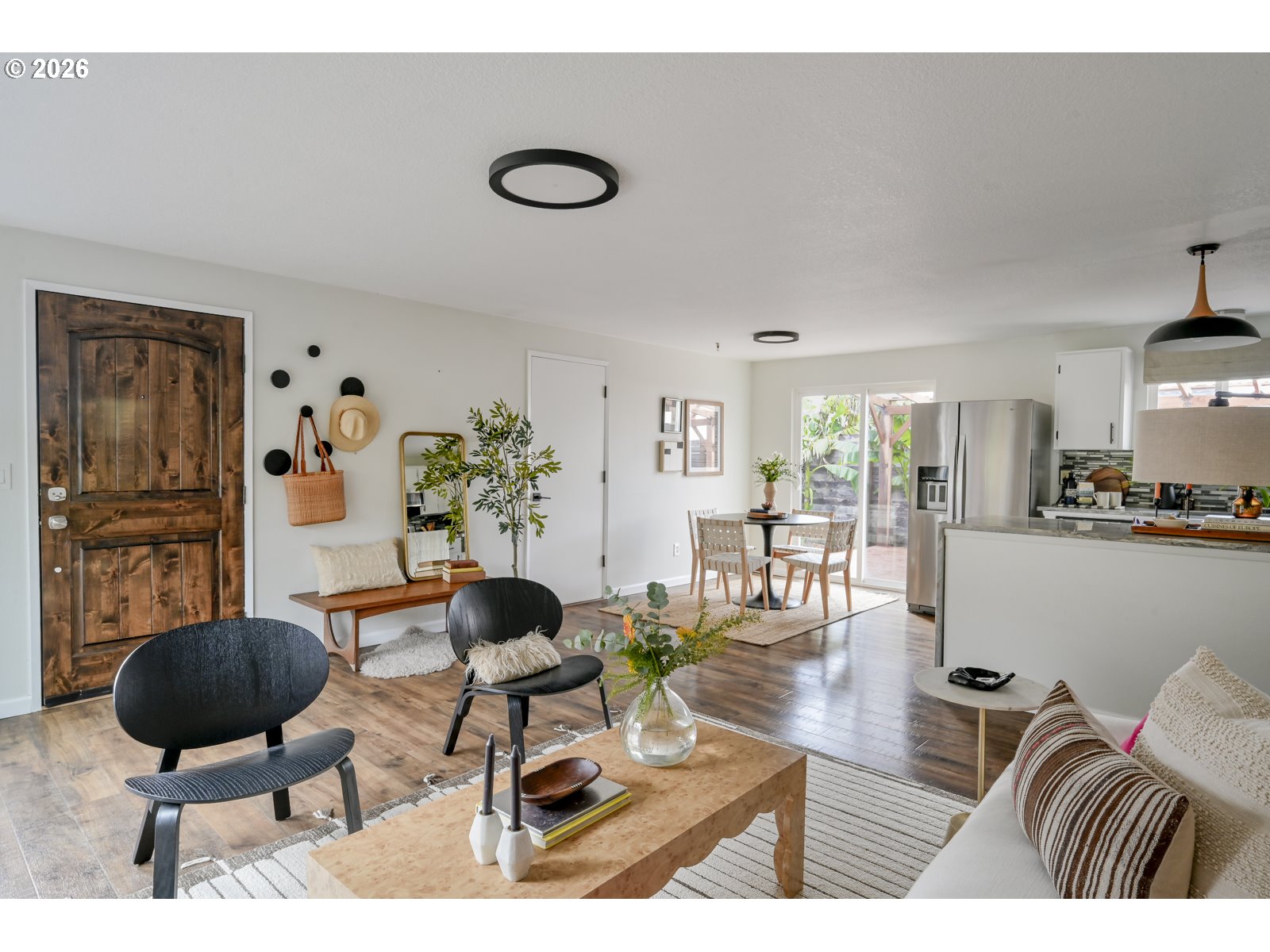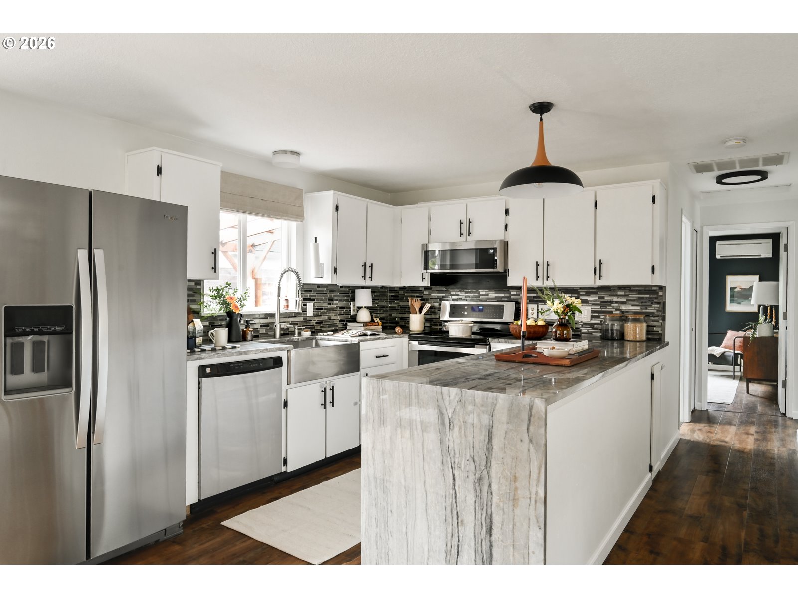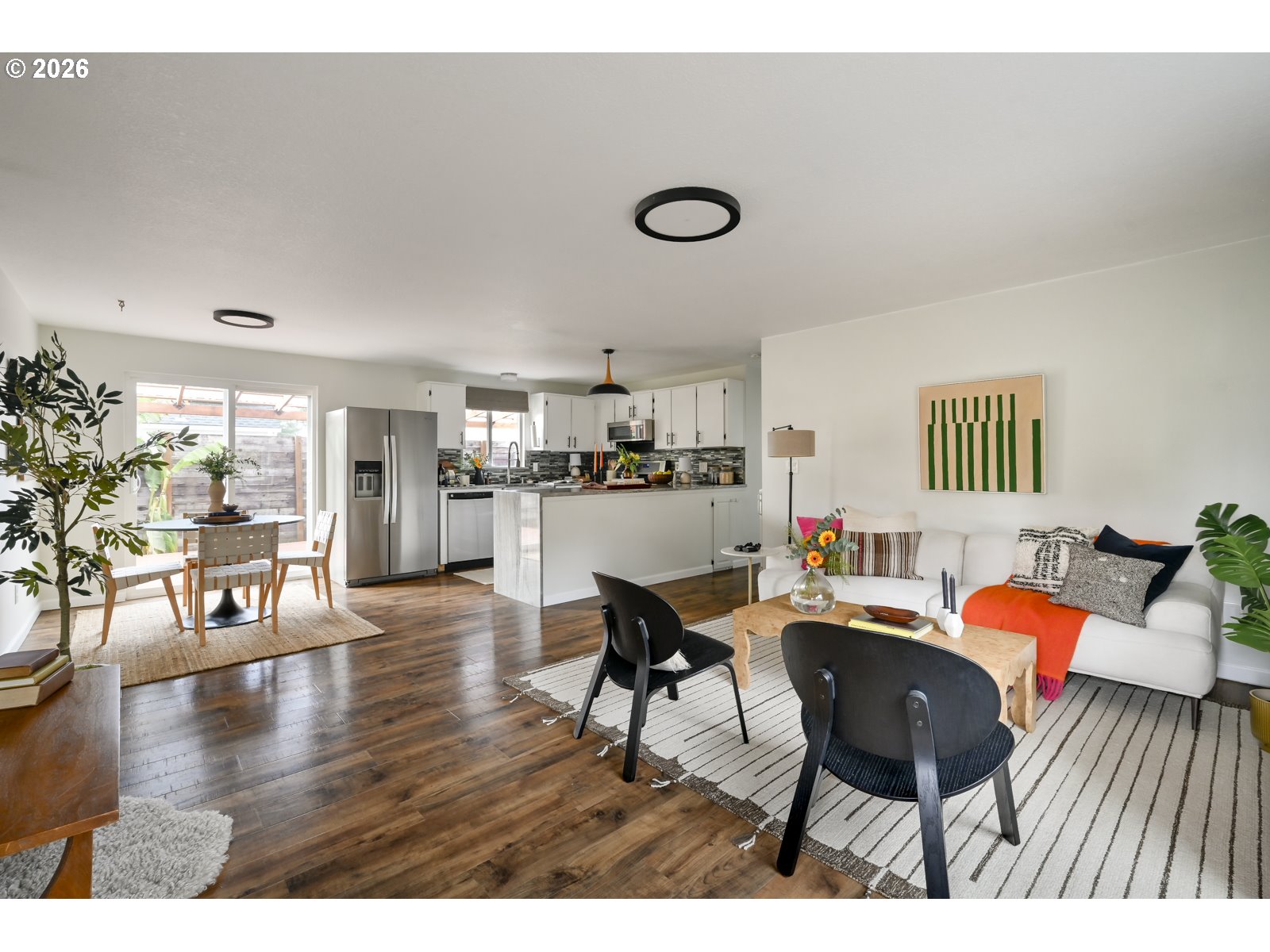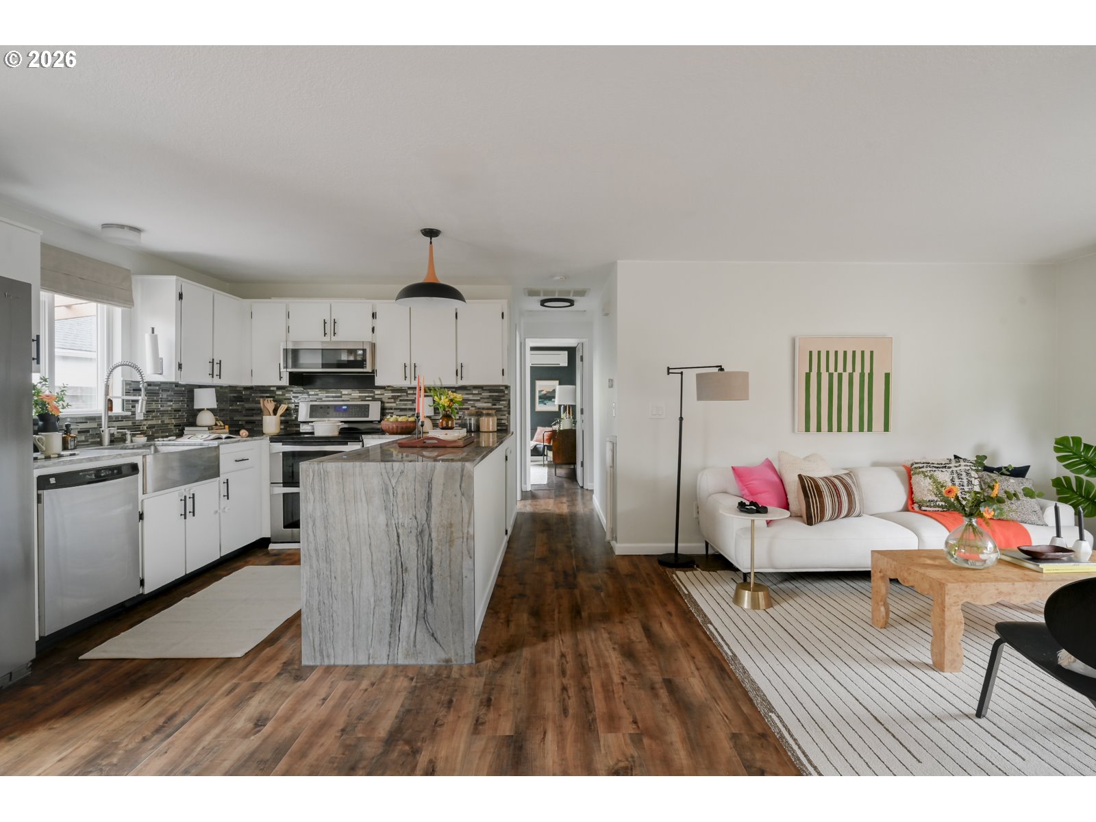 Light, bright, and airtight! Wolf Ranch offers comfortable single-level living in a quiet, close-in location. Built in 1990, the home has the feel of a classic mid-century ranch paired with more modern systems and thoughtful updates throughout. Inside, you’ll find three bedrooms within an efficient 960 square feet, making this home wonderfully low-maintenance and easy to live in — ideal for a first-time buyer or anyone looking to downsize without compromise. The spacious kitchen is a standout, featuring an oversized workspace that’s perfect for hosting a cooking show or gathering with friends. Step outside to a covered deck inside a fully fenced yard that’s great for dogs and offers plenty of space for gardening and entertaining. The attached garage allows you to walk directly into the house with no rainy-day dashes required, and is impressively large, with an epoxy floor that’s easy to keep clean and perfect for hobbies, a workshop, or even a home gym. Additional highlights include new mini-splits for efficient, year-round comfort, a skylight that fills the bathroom with natural light, and a peaceful setting with minimal traffic. This is a smart and inviting home that’s comfortable to maintain and a pleasure to live in. [Home Energy Score = 7. HES Report at https://rpt.greenbuildingregistry.com/hes/OR10193087]