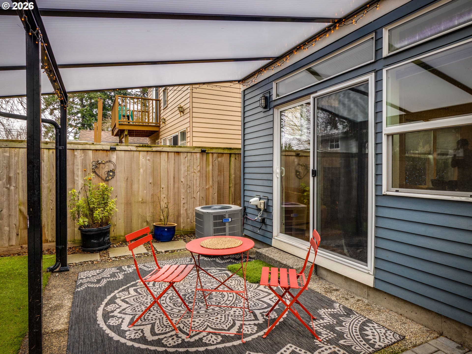 Conveniently located on a quiet street with no through traffic, this thoughtfully updated home offers the perfect balance of comfort and efficiency. With an 82 Walk Score and 98 Bike Score, you’re just blocks from neighborhood restaurants, shops, groceries, food carts, parks, and transit. This home is is equipped with newer appliances, central air conditioning, solar panels, an Electric Vehicle charger, and a generator hookup. The large primary suite features an attached bathroom with dual sinks, a tiled shower, and a walk-in closet. Enjoy privacy in your fully fenced back yard with an Acrylite patio awning, side yard storage, and drip irrigation for potted plants or raised beds, plus a detached office/studio with additional storage. Built to Earth Advantage Silver standards, this energy efficient home is the embodiment of easy city living! [Home Energy Score = 10. HES Report at https://rpt.greenbuildingregistry.com/hes/OR10055851]