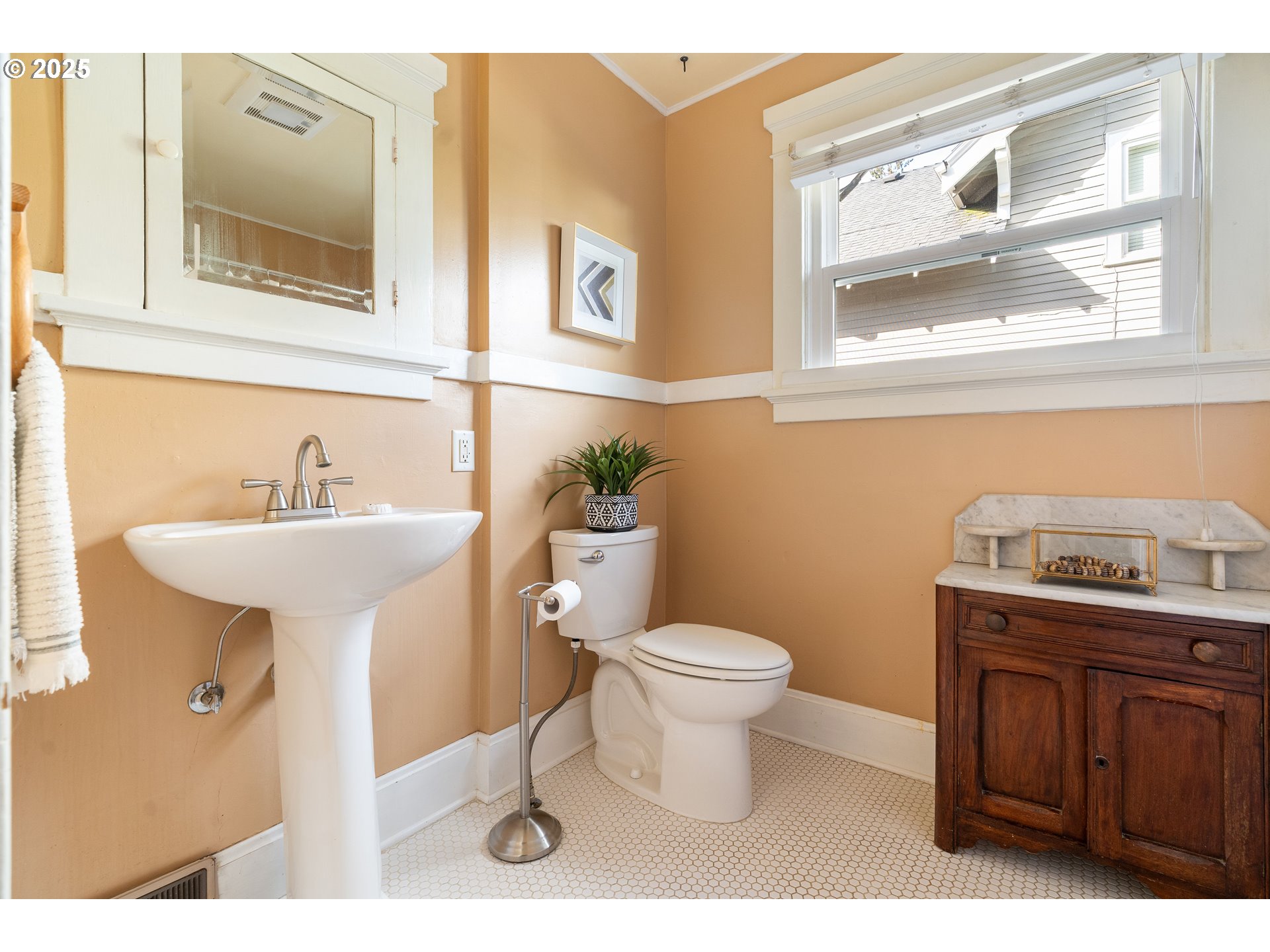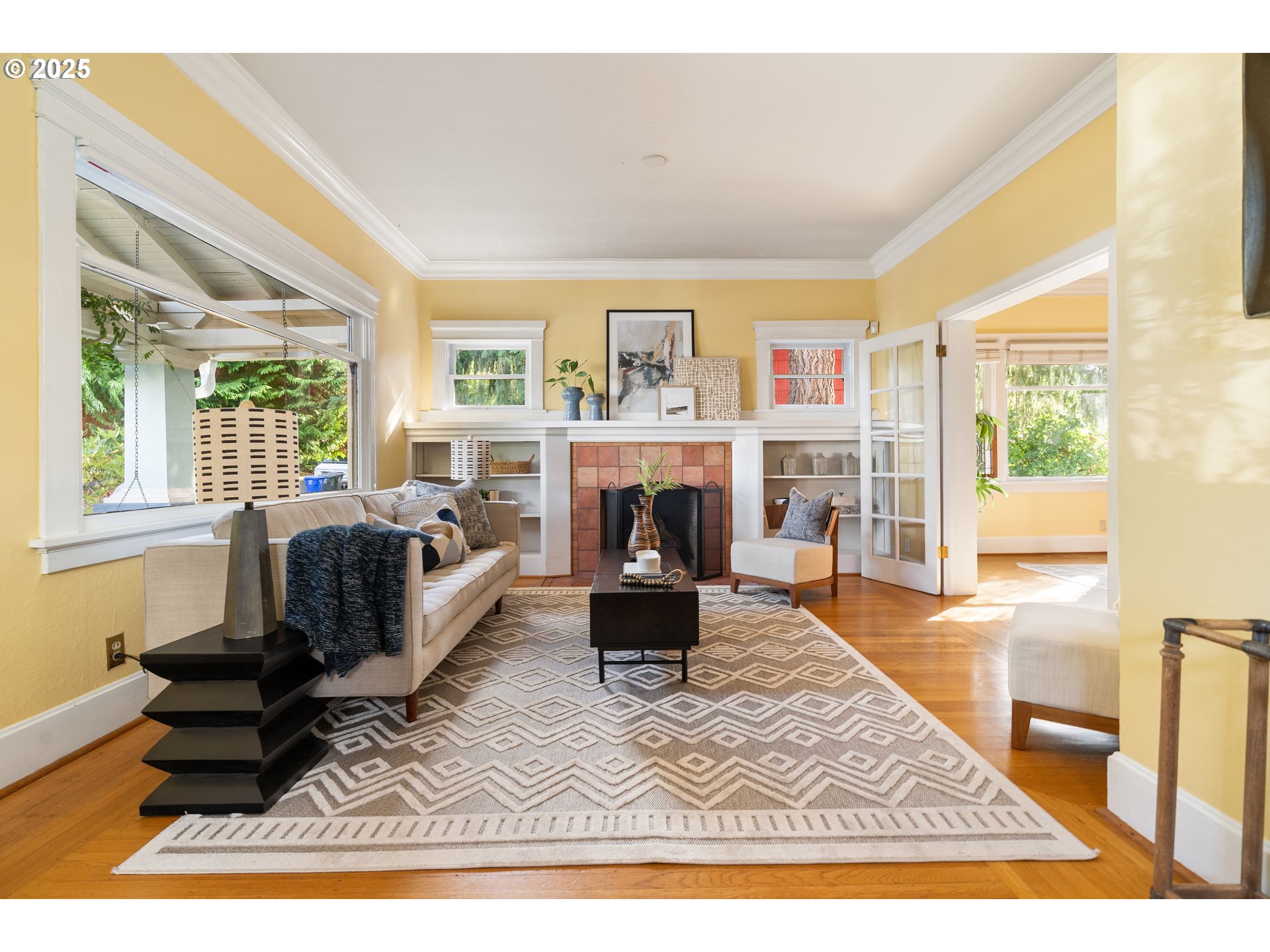 (503) 893-8874Set on a tree-lined street, this Concordia Craftsman strikes a balance between timeless charm & thoughtful updates. The welcoming front porch makes a striking first impression, showcasing exposed beams & handcrafted brackets that celebrate the artistry of early 20th-century architecture. Warmth & character define the living room, where built-in bookshelves flank a cozy fireplace. Original wood floors with a refined "picture frame" border design add historic detail, while French doors seamlessly connect the living & dining areas, creating an ideal flow for gatherings. The dining room's built-in hutch reflects the home's period charm, while the adjacent kitchen blends vintage appeal with functionality. Terra-cotta tile countertops & backsplash lend a timeless & warm feel, and a space for a breakfast table opens directly to a covered back deck. A retro-inspired office on the main level, wrapped in wood paneling, offers versatility for work, guests, or creative pursuits. Upstairs, the primary bedroom features double walk-in closets & a ceiling fan, joined by two additional bedrooms. The updated bathroom, completed in 2020, brings fresh style. The lower level expands the home's functionality, featuring a family room that is ideal for a recreation room or a playroom, along with a half bathroom. The unfinished utility area offers a workbench, a sink, and an exterior entry, making it an ideal space for projects or hobbies. Outdoors, a spacious back porch & multiple patios surrounded by lush landscaping create an inviting setting for relaxation. A detached one-car garage, accessible through the alley & the front driveway, provides added convenience. Blocks from Fernhill Park, Alberta Park, Concordia Commons street plaza, and cafés, this home is surrounded by some of the city's most beloved restaurants, including Expatriate & Gabbiano's, making this one of the city's most vibrant enclaves. [Home Energy Score = 3. HES Report at https://rpt.greenbuildingregistry.com/hes/OR10242162]