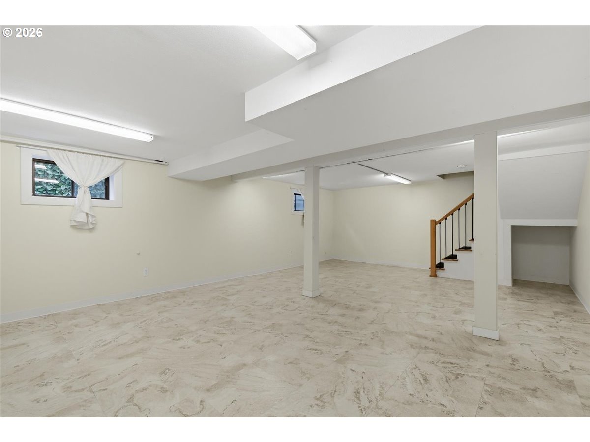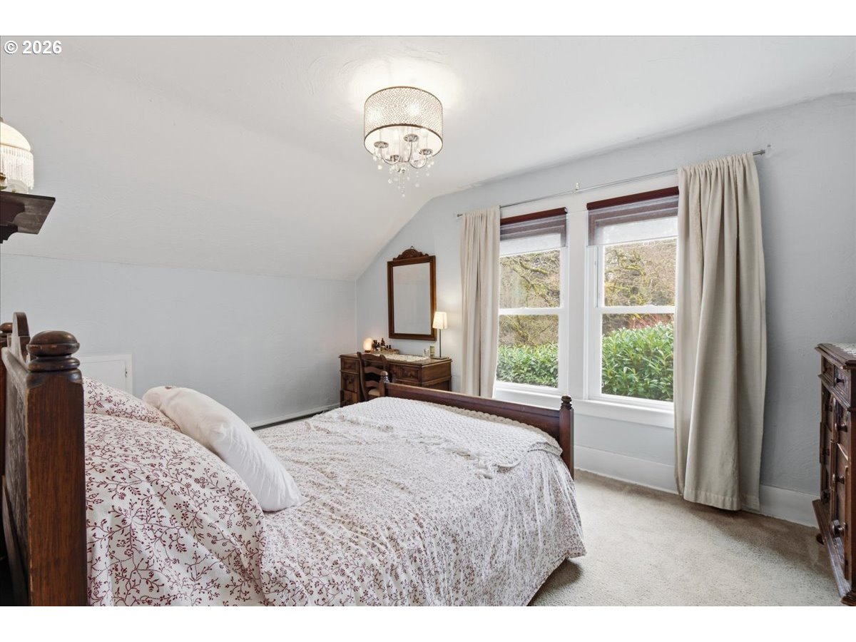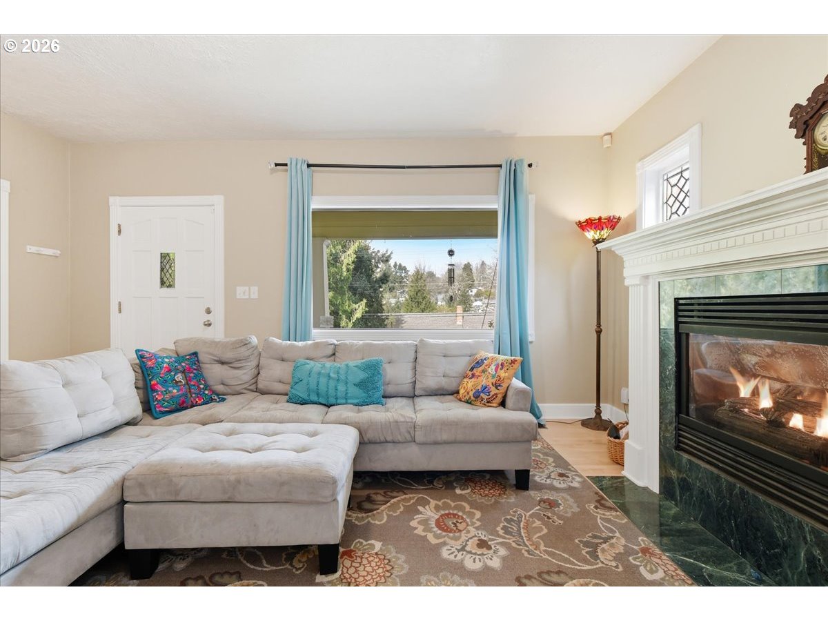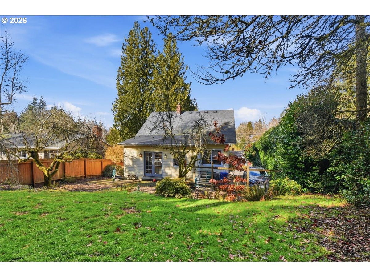 Sought-after Maplewood neighborhood! Perched high above the street, this charming and peaceful Portland bungalow welcomes you with a spacious covered front porch—perfect for slow mornings and evening conversations. Inside, high ceilings and beautiful natural light create an airy, uplifting feel from the moment you step through the door. The easy, flowing layout allows rooms to connect effortlessly, offering space to gather, unwind, and entertain. The gas fireplace adds warmth and ambiance to both formal and casual living.Thoughtful updates, including newer windows, updated bathrooms, and stainless steel appliances, enhance comfort and efficiency, making this home truly move-in ready.The backyard is a private retreat—fully fenced with lush green grass, raised garden beds, and a bounty of fruit, including apple and pear trees, plus strawberries, raspberries, and blackberries. Whether you’re hosting summer dinners or tending your garden, this space offers both beauty and function.Ideally located near Gabriel Park and just moments to the shops and restaurants of Multnomah Village, Maplewood is known for its community feel and access to some of Portland’s most desirable schools. This is the kind of home that feels good the moment you arrive. [Home Energy Score = 1. HES Report at https://rpt.greenbuildingregistry.com/hes/OR10204797]
