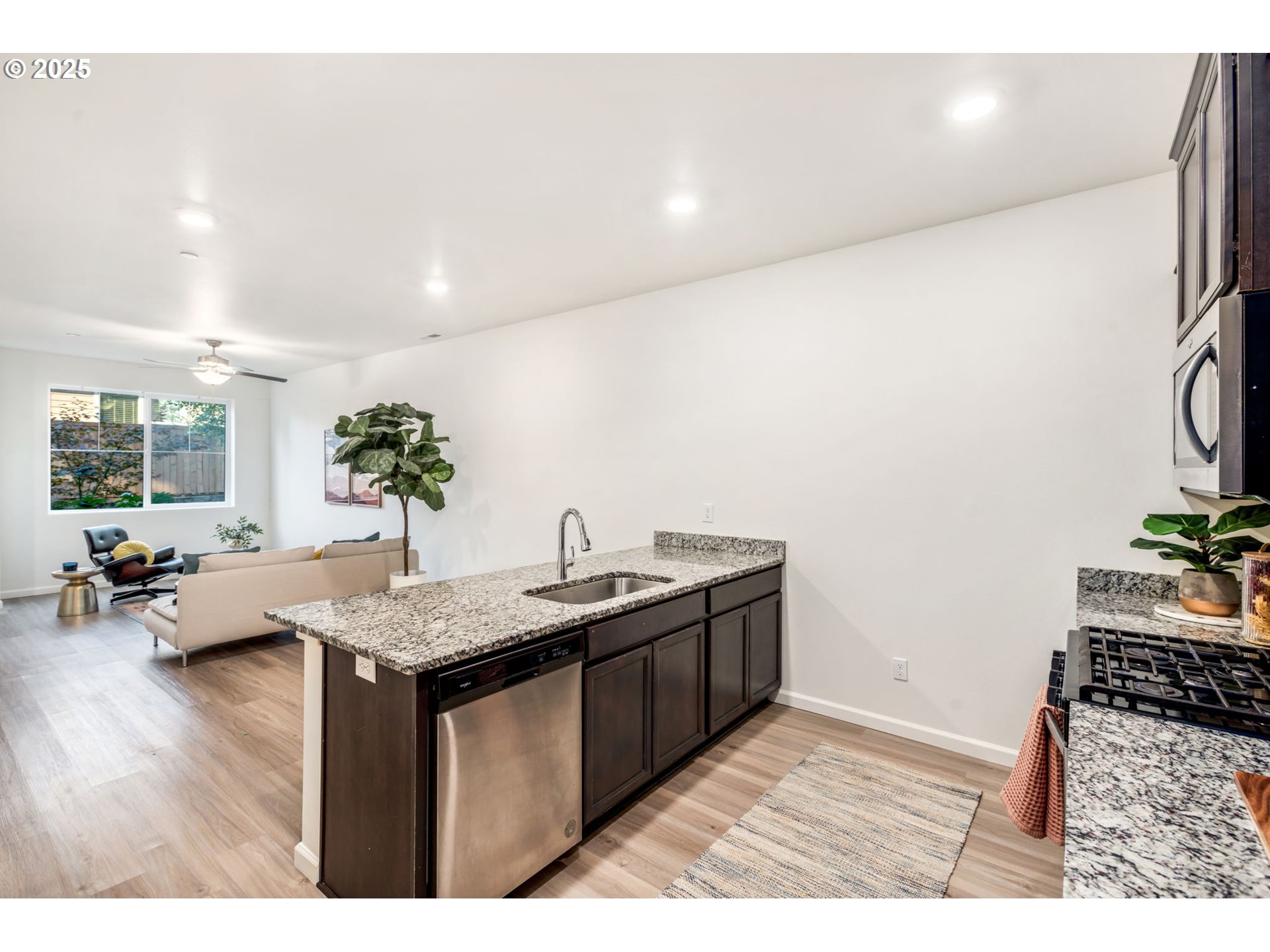 Freshly updated and ready for its new owner! This 2021 home just got a full interior refresh — new paint on every wall, ceiling, trim, and doors, plus brand-new carpet throughout the upstairs and bedrooms. No projects here, just move right in!The main floor features high ceilings and durable luxury vinyl plank flooring, giving the open living space a modern, bright feel. The kitchen includes granite countertops, stainless steel appliances, a breakfast bar, and a walk-in pantry—perfect for everyday living and entertaining.Upstairs, enjoy spacious bedrooms plus a flex loft space—great for a home office, media nook, or play area. The large one-car garage and driveway add extra parking and storage options. Grass front yard with room to add planters and pots. Accessible to public transportation and main floor has only one step through front and garage door. With rentals allowed, this home also offers long-term flexibility.This is one of the best values in the area—modern build, fresh updates, and nothing to do but move in!